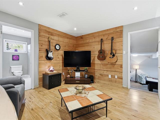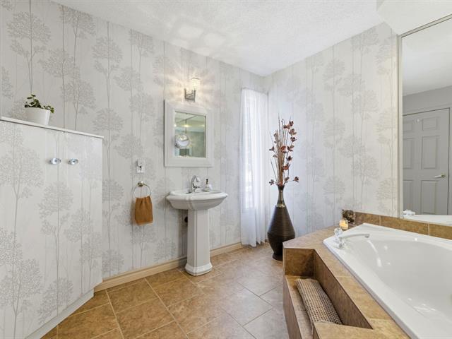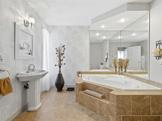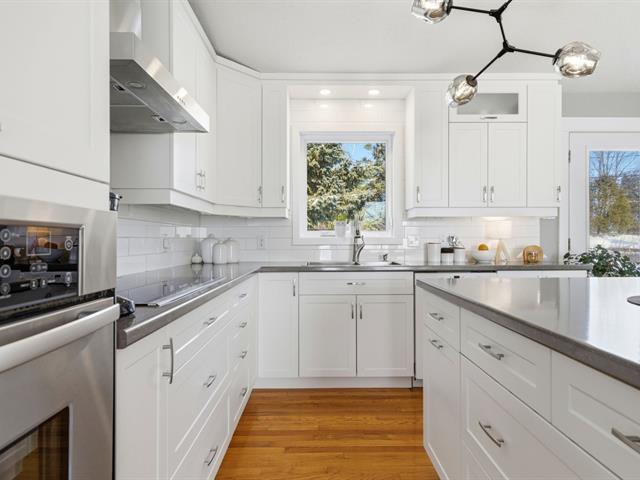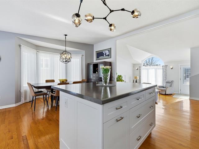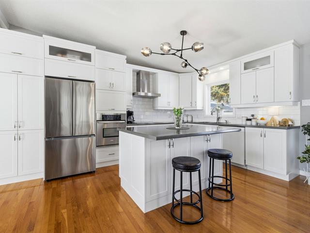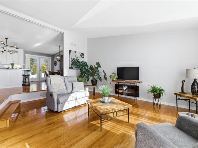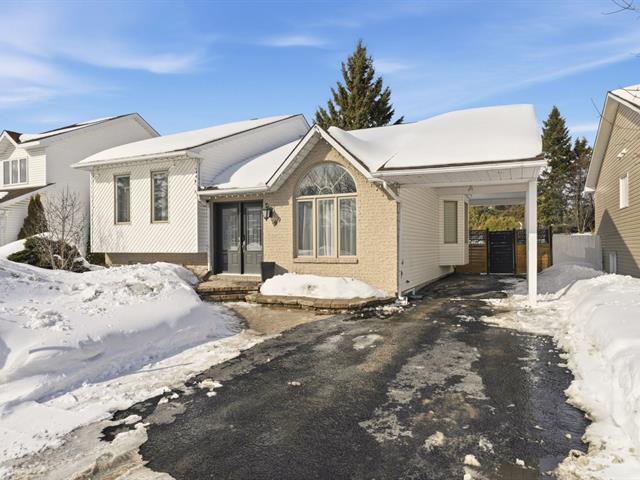 Beautiful bungalow in the sought-after Orée-des-Bois area. Meticulously maintained with 3 bedrooms and 2 full bathrooms, including a basement bathroom with Italian walk-in shower. Living room with cathedral ceiling, abundant windows and hardwood flooring throughout the main floor. Renovated kitchen with central island and separate laundry room. Furnace replaced in 2025, central air conditioning. Large fenced yard with no rear neighbours, spacious deck and attached carport. (41185413)