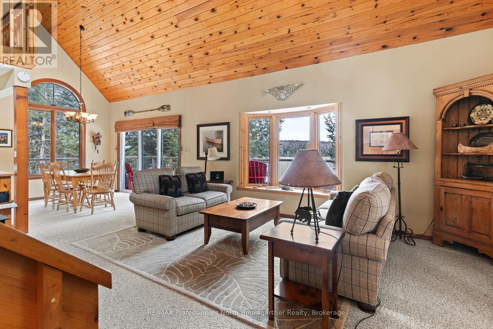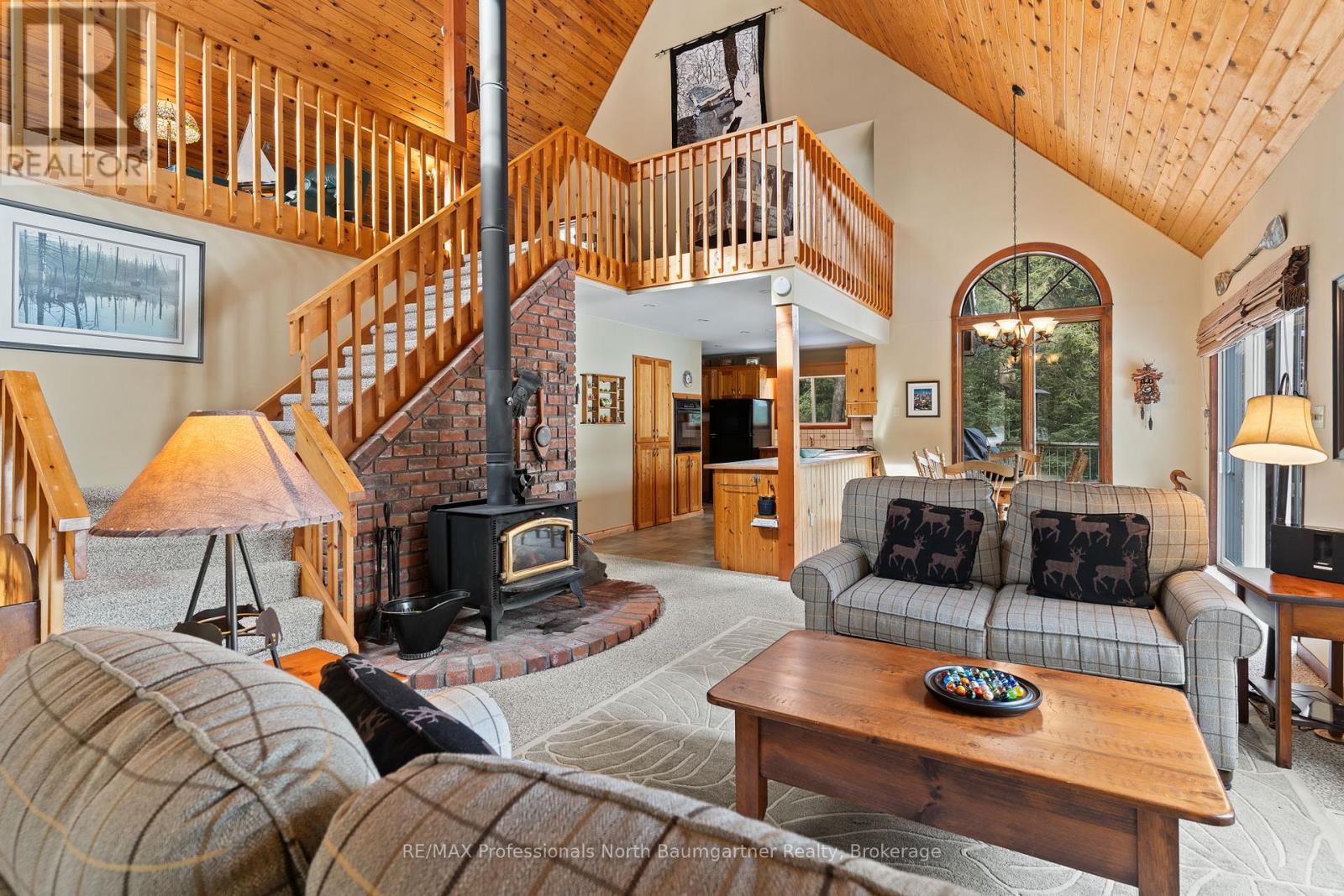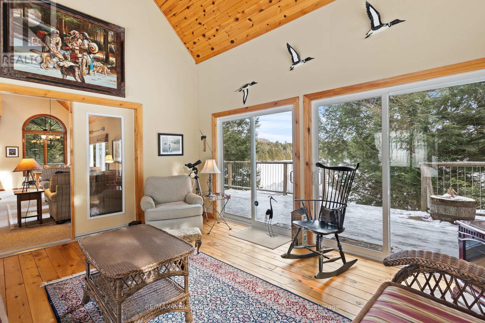 Discover this stunning 2+1-bedroom, 2-bathroom home with a loft overlooking the lake, set on a generous private lot with friendly, quiet neighbors. Inside, the open-concept layout is highlighted by cathedral pine ceilings, a beautiful bay window, and a bright heated sunroom filled with natural light-perfect for year-round enjoyment. Designed for both comfort and entertaining, the home features a cozy wood stove, an electric stove, and a Honeywell Resideo system to remotely control the heat for maximum convenience. The main bath offers luxurious heated floors, and a full basement provides excellent storage and additional living space. Outdoors, experience peaceful lakefront living with magnificent views and deep water off the dock, along with a floating raft-ideal for swimming, kayaking, and other quiet water activities. The sandy and natural shoreline add charm, while the firepit at the water's edge creates the perfect setting for evening gatherings. Shed at the water stores watercraft and toys, and a wood shed keeps firewood neatly organized and dry. A relaxing soft tub off the large deck, a private dock, and a small garage for ATV storage complete the waterfront experience. Scenic walking trails begin right at your doorstep, with easy four-season access, near Sir Sam's ski hill for winter fun, and excellent biking during the summer months. Whether you're seeking a serene escape, an active outdoor lifestyle, or quality time with family and friends, this exceptional property blends privacy, recreation, and the quiet beauty of nature into the perfect year-round retreat. (42211844)