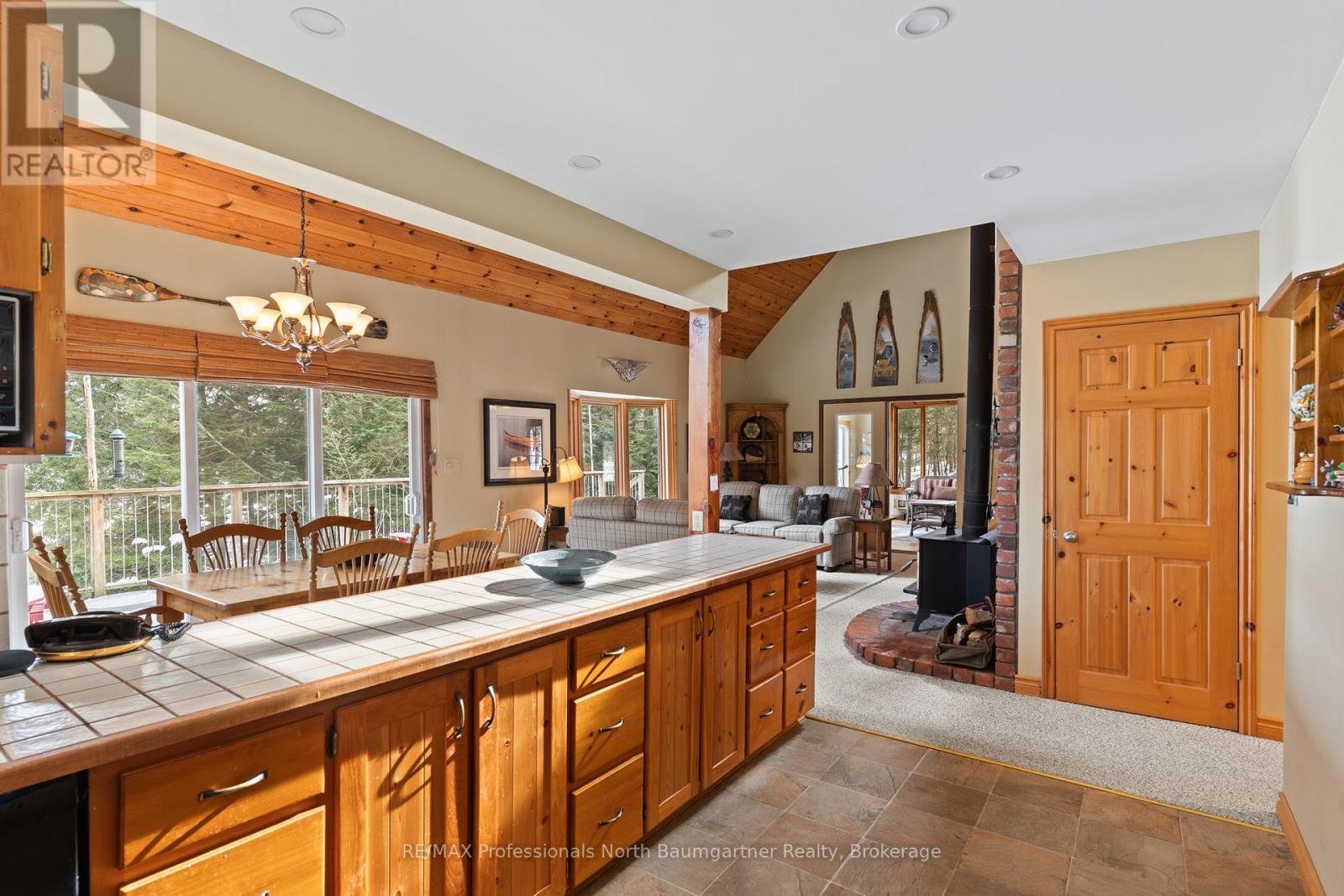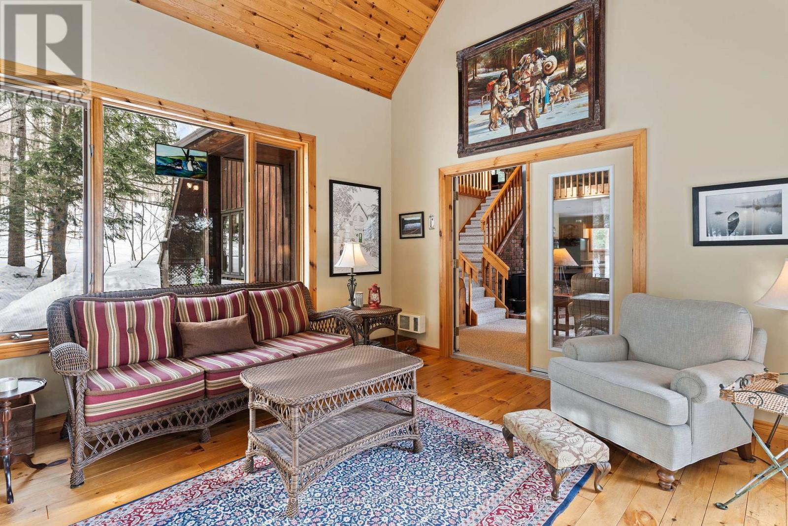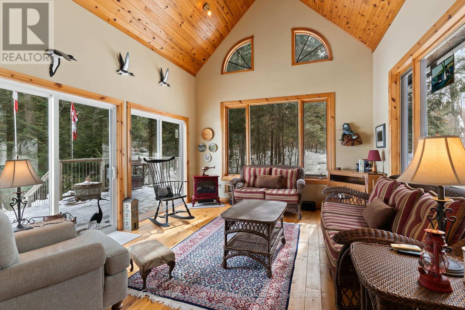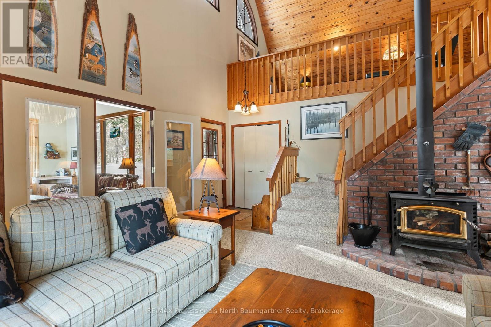 Discover this stunning 2+1-bedroom, 2-bathroom home with a loft overlooking the lake, set on a generous private lot with friendly, quiet neighbors. Inside, the open-concept layout is highlighted by cathedral pine ceilings, a beautiful bay window, and a bright heated sunroom filled with natural light-perfect for year-round enjoyment. Designed for both comfort and entertaining, the home features a cozy wood stove, an electric stove, and a Honeywell Resideo system to remotely control the heat for maximum convenience. The main bath offers luxurious heated floors, and a full basement provides excellent storage and additional living space. Outdoors, experience peaceful lakefront living with magnificent views and deep water off the dock, along with a floating raft-ideal for swimming, kayaking, and other quiet water activities. The sandy and natural shoreline add charm, while the firepit at the water's edge creates the perfect setting for evening gatherings. Shed at the water stores watercraft and toys, and a wood shed keeps firewood neatly organized and dry. A relaxing soft tub off the large deck, a private dock, and a small garage for ATV storage complete the waterfront experience. Scenic walking trails begin right at your doorstep, with easy four-season access, near Sir Sam's ski hill for winter fun, and excellent biking during the summer months. Whether you're seeking a serene escape, an active outdoor lifestyle, or quality time with family and friends, this exceptional property blends privacy, recreation, and the quiet beauty of nature into the perfect year-round retreat. (42211844)