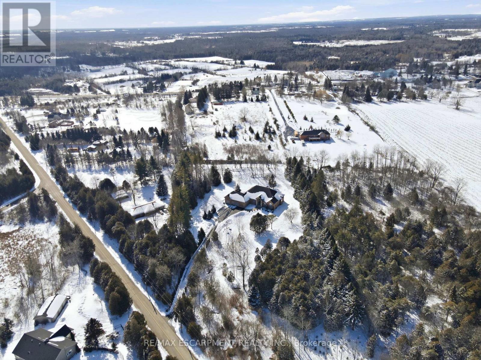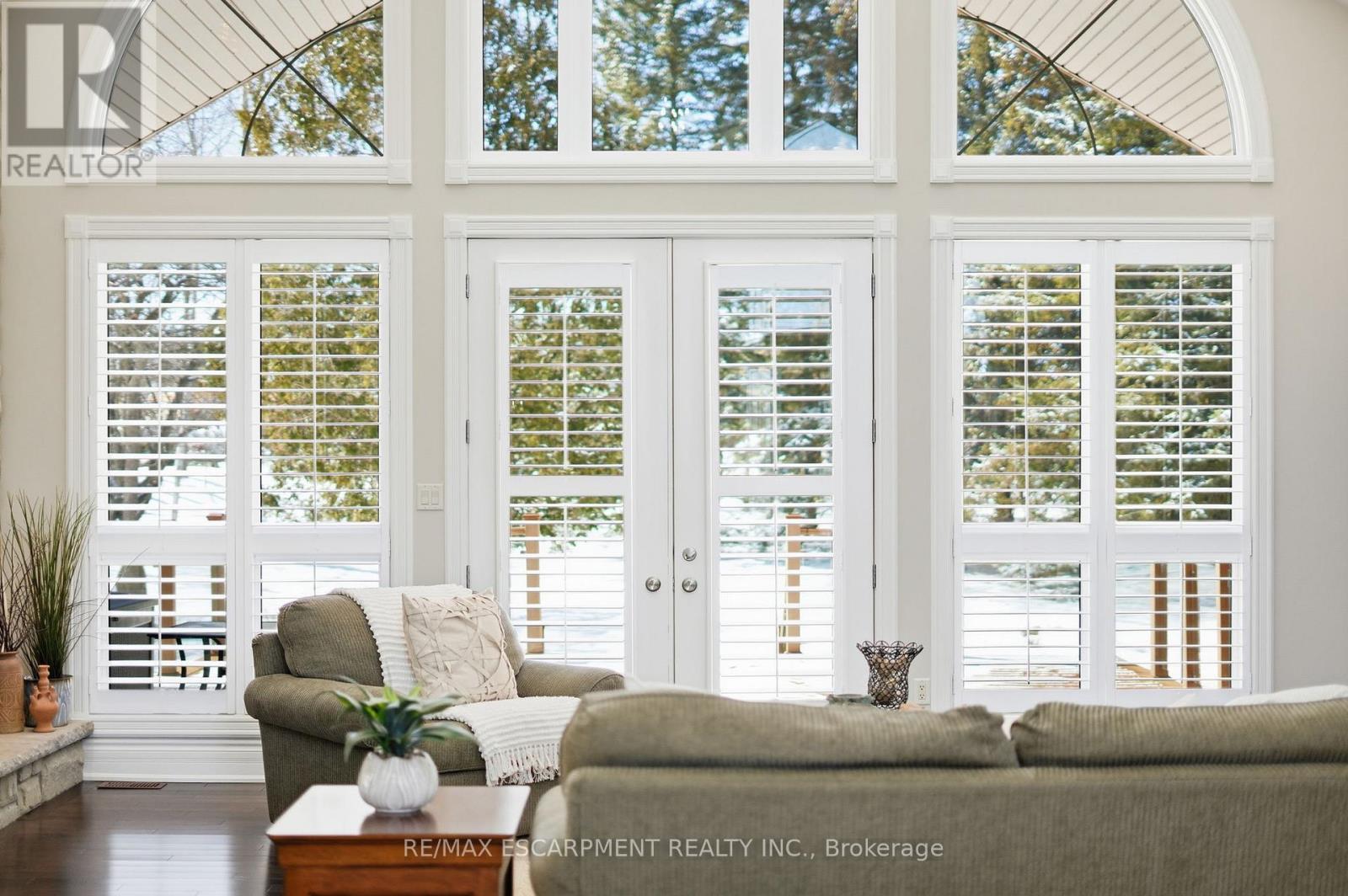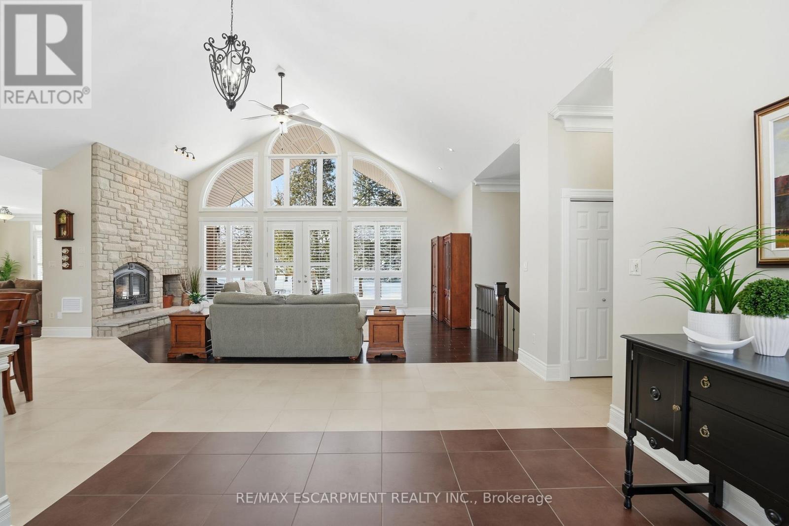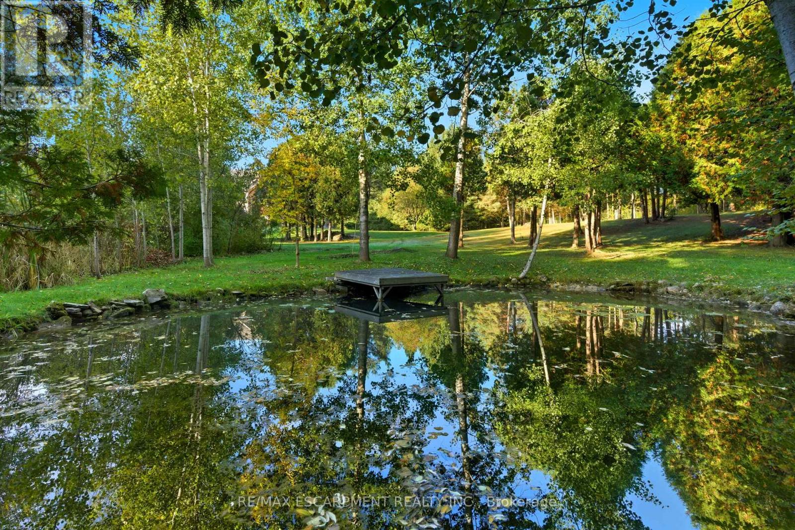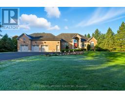 Welcome home to this exquisite custom bungalow, ideally positioned on the serene Flamborough-Puslinch border. This residence offers more than 6,000 square feet of refined living space, highlighted by a spacious triple-car garage and set on over 4 acres of tranquil, private grounds featuring a charming pond. Secluded from the road for complete privacy, the property welcomes you through a gated entry and a picturesque, tree-lined driveway leading to the home. Upon entering, a grand great room captivates with dramatic 17-foot ceilings and a striking floor-to-ceiling Napoleon wood-burning fireplace that frames stunning panoramic views of the lush landscape beyond. The main level features three expansive bedrooms and three full bathrooms, complemented by luxurious 10-foot ceilings throughout for an airy, open atmosphere. At the heart of the home lies a spectacular kitchen, boasting premium cabinetry, a generous centre island, and elite appliances-including a professional-grade, commercial-sized Wolf gas range. The fully finished lower level is bathed in abundant natural light from generous egress windows, creating a bright and inviting space. It includes a spacious bedroom, a luxurious full bathroom with an oversized spa-like walk-in shower, a comfortable family room, a second full kitchen, and plentiful storage-ideal as a private teenager retreat, in-law suite, or multi-generational living area. Enjoy ultra-fast, reliable fibre optic WiFi throughout the home, supporting seamless streaming, remote work, and smart-home integration. With convenient proximity to major highways-including Highway 401 and Highway 403-this exceptional location blends rural tranquility with effortless commuting to Hamilton, Guelph, Toronto, and beyond. Combining privacy, generous proportions, superior craftsmanship, and prime highway access, this extraordinary property is a true rarity-don't miss the opportunity to make it yours! RSA. Luxury Certified. (42211865)