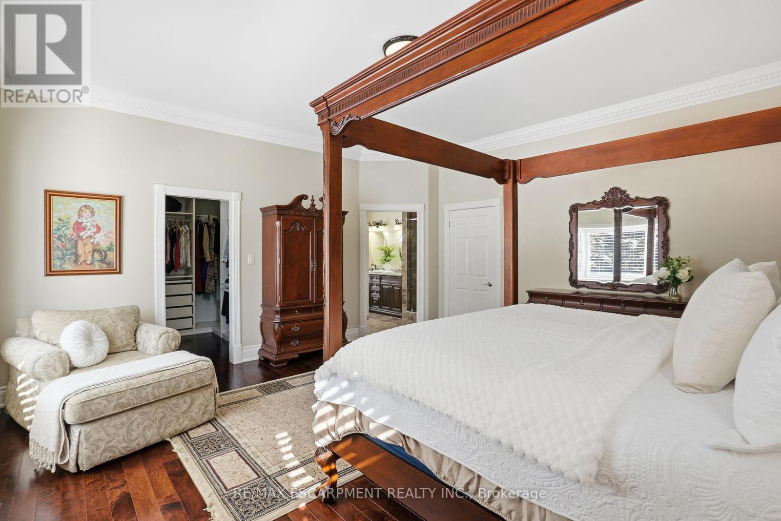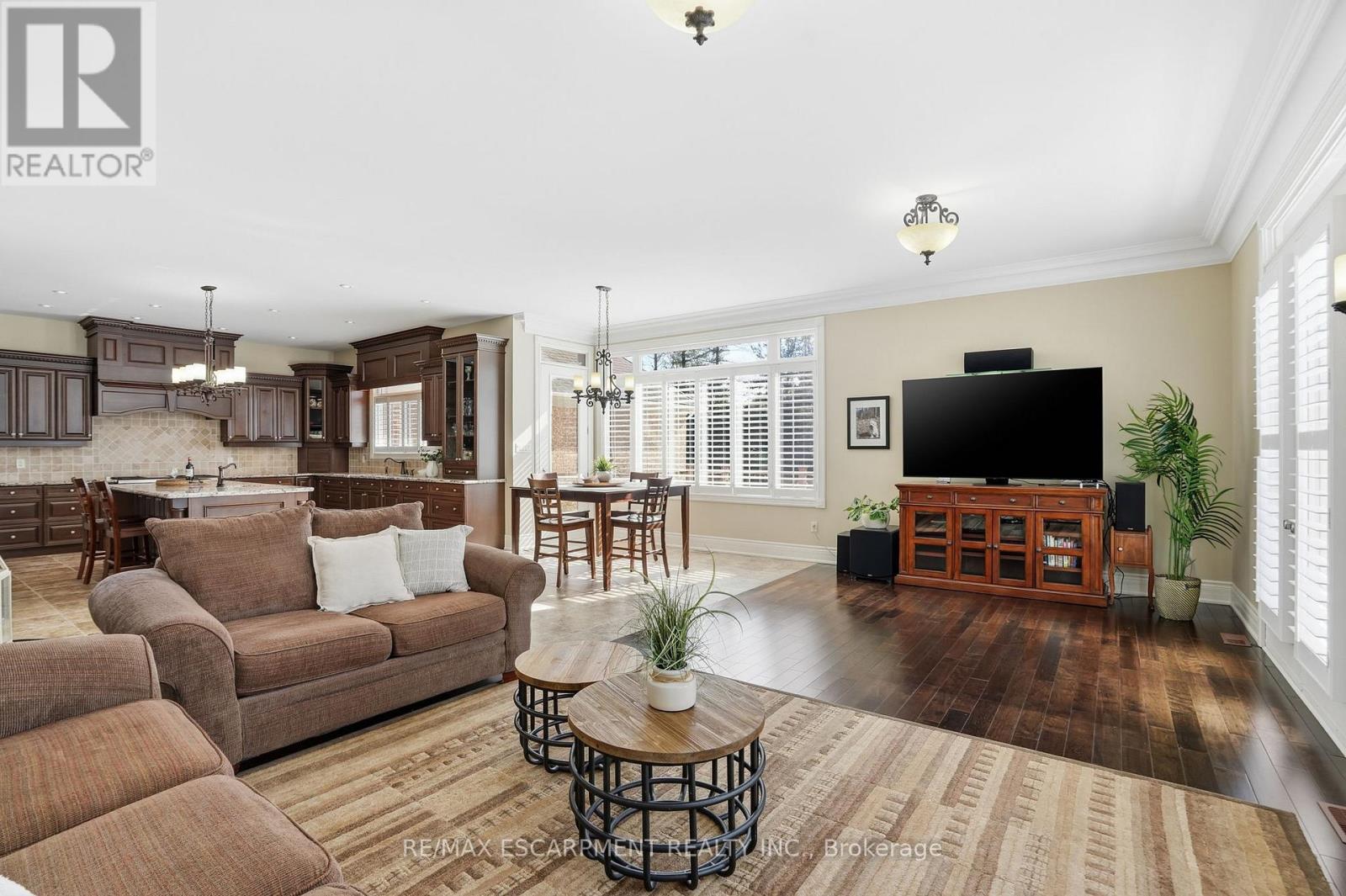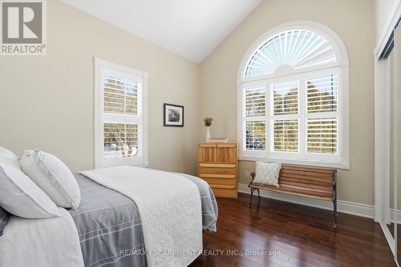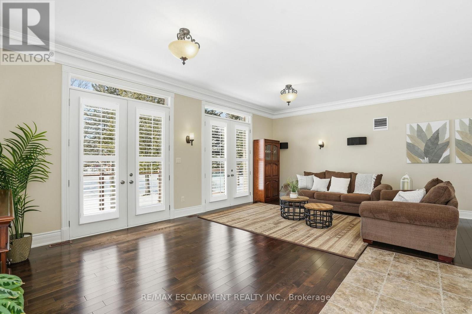 Welcome home to this exquisite custom bungalow, ideally positioned on the serene Flamborough-Puslinch border. This residence offers more than 6,000 square feet of refined living space, highlighted by a spacious triple-car garage and set on over 4 acres of tranquil, private grounds featuring a charming pond. Secluded from the road for complete privacy, the property welcomes you through a gated entry and a picturesque, tree-lined driveway leading to the home. Upon entering, a grand great room captivates with dramatic 17-foot ceilings and a striking floor-to-ceiling Napoleon wood-burning fireplace that frames stunning panoramic views of the lush landscape beyond. The main level features three expansive bedrooms and three full bathrooms, complemented by luxurious 10-foot ceilings throughout for an airy, open atmosphere. At the heart of the home lies a spectacular kitchen, boasting premium cabinetry, a generous centre island, and elite appliances-including a professional-grade, commercial-sized Wolf gas range. The fully finished lower level is bathed in abundant natural light from generous egress windows, creating a bright and inviting space. It includes a spacious bedroom, a luxurious full bathroom with an oversized spa-like walk-in shower, a comfortable family room, a second full kitchen, and plentiful storage-ideal as a private teenager retreat, in-law suite, or multi-generational living area. Enjoy ultra-fast, reliable fibre optic WiFi throughout the home, supporting seamless streaming, remote work, and smart-home integration. With convenient proximity to major highways-including Highway 401 and Highway 403-this exceptional location blends rural tranquility with effortless commuting to Hamilton, Guelph, Toronto, and beyond. Combining privacy, generous proportions, superior craftsmanship, and prime highway access, this extraordinary property is a true rarity-don't miss the opportunity to make it yours! RSA. Luxury Certified. (42211865)