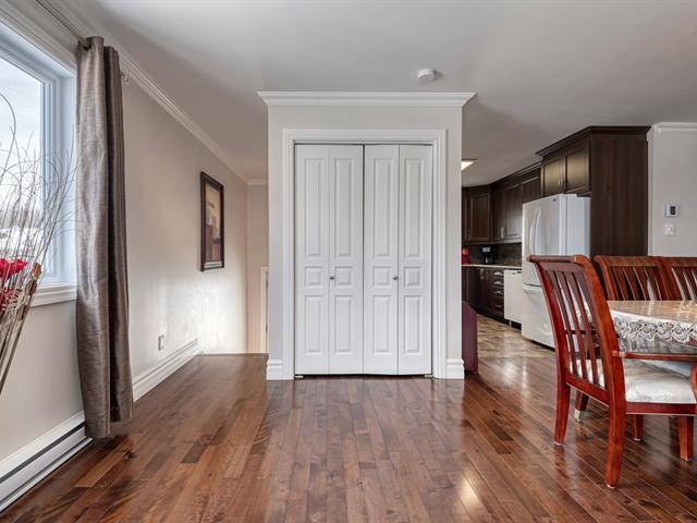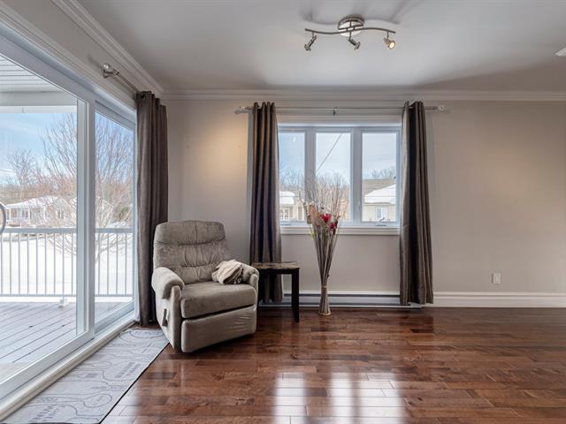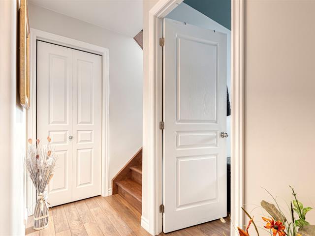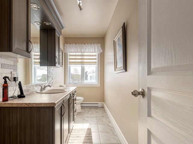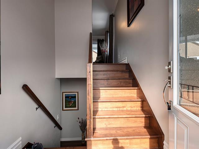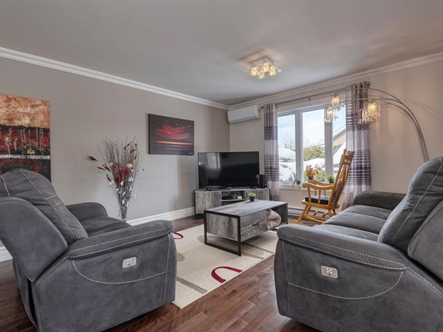 Beautiful luxury semi-detached home with a detached garage, offering ample storage space and a thoughtfully designed kitchen featuring U-shaped cabinetry and two spacious work counters. The property includes a new heat pump with warranty, ensuring year-round comfort and energy efficiency. Ideally located in a sought-after area close to numerous services, bike paths, parks, public transit, and with quick access to the highway. Outdoors, enjoy an asphalt driveway, storage shed, cedar hedge, mature trees, and a covered 8 x 10 ft patio. Exceptionally well maintained, bright, and inviting. A visit will surely charm you. (44761790)