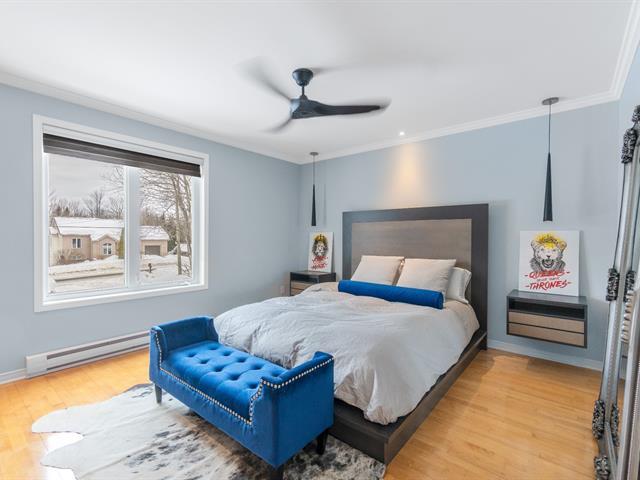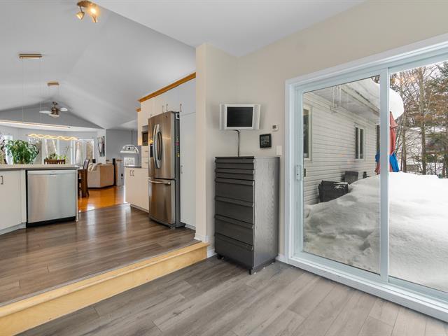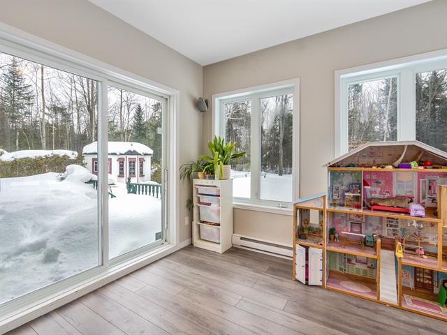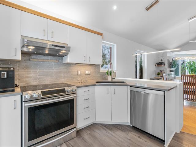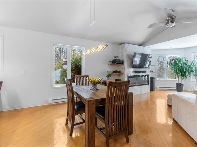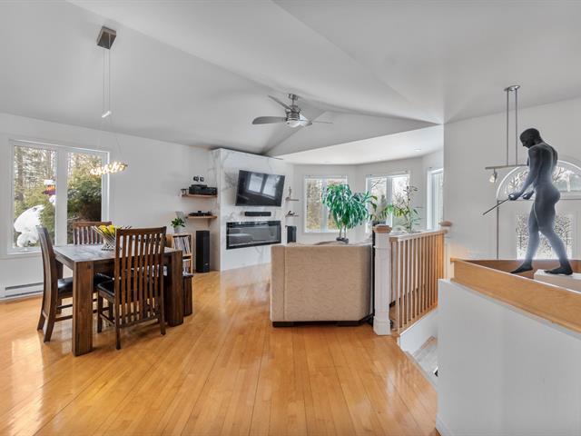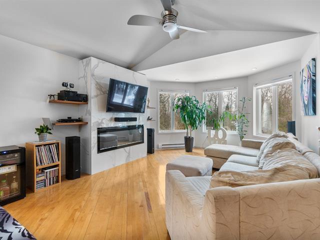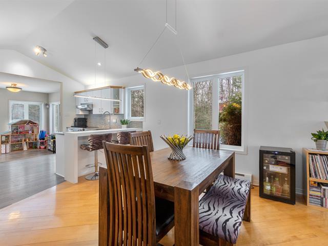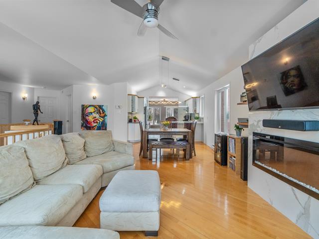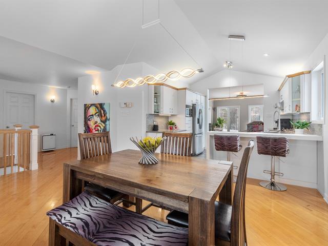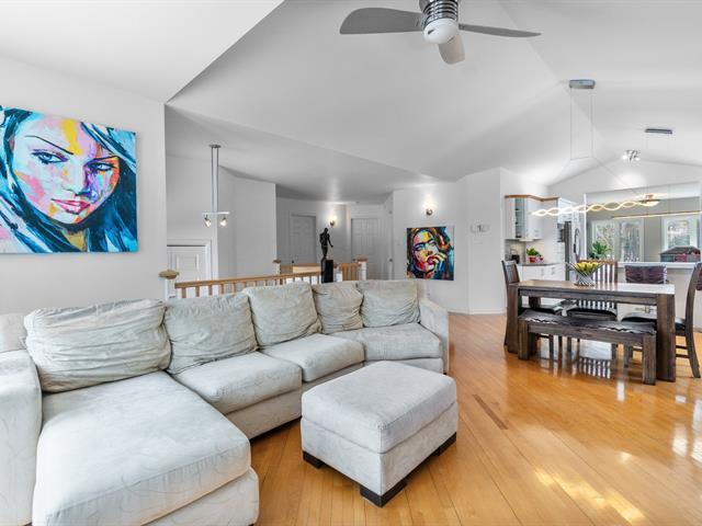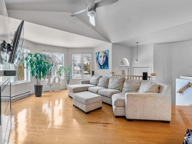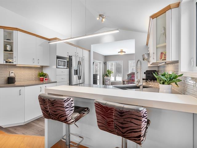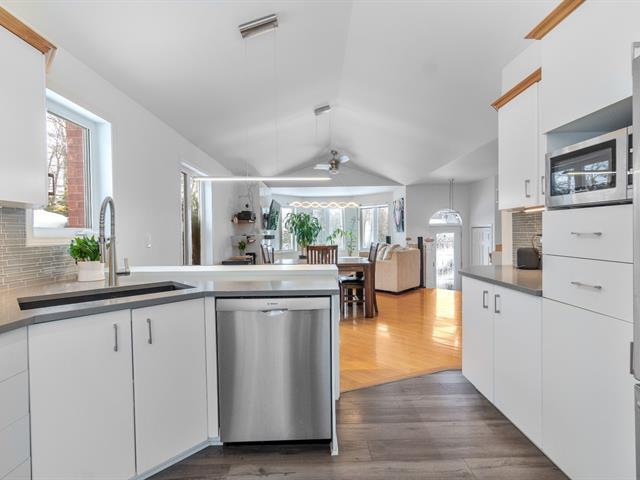 Sheltered from view and noise, this charming family residence offers a calm and private setting, ideal for creating cherished memories. Situated on a 349.50 m² lot bordered by mature hedges and wooded areas, and set back from the road, it ensures peace and privacy. The property features 5 bedrooms and 2 full bathrooms. The bright open-concept living area is highlighted by a cathedral ceiling, expansive windows, and a wood-burning fireplace. Several renovations have been completed in recent years. Private backyard with heated in-ground pool. (55185129)