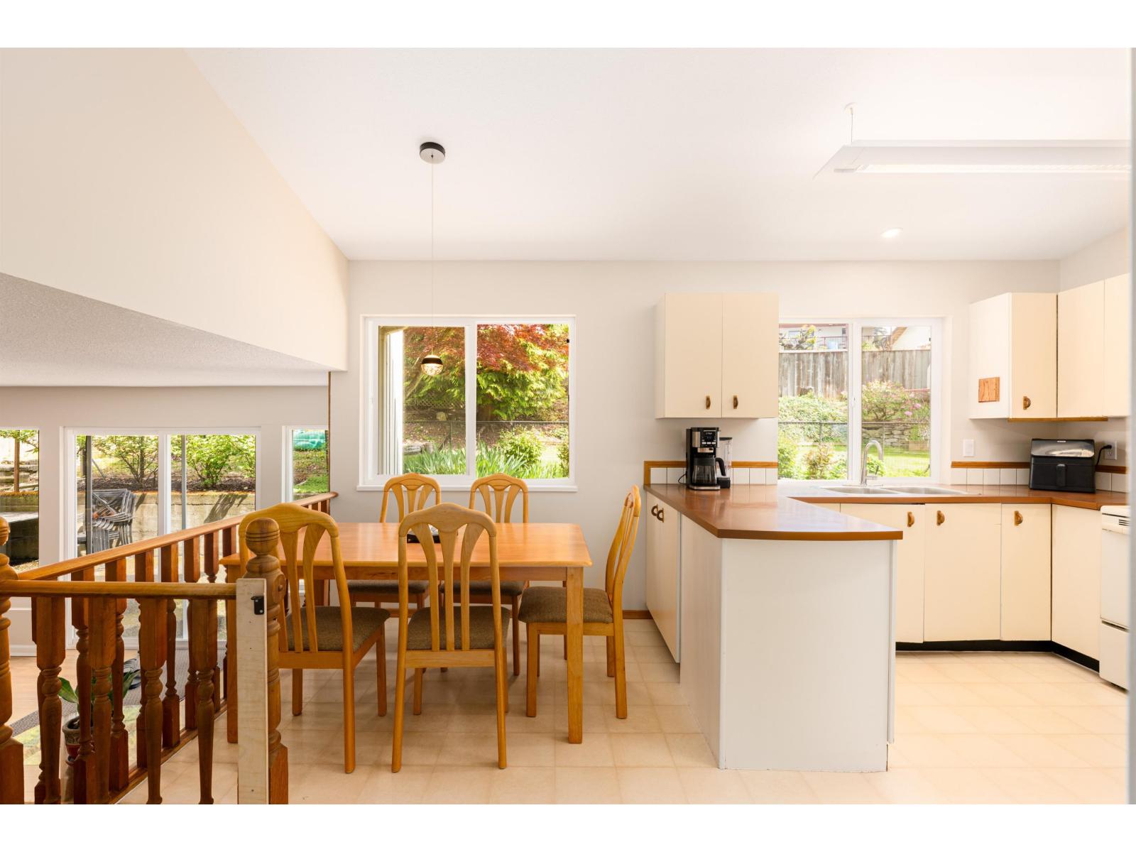 Beautifully maintained 4-bedroom, 3-bath split-level family home on a generous 8,686 sq ft lot, offering sweeping views of the Delta South Surrey Regional Green Way. Nestled in a quiet, family-friendly neighborhood, this home boasts a bright, functional layout with over-height vaulted ceilings in the formal living and dining areas, a spacious kitchen, and a warm, inviting sunken family room. Upstairs, you'll find generously sized bedrooms-including a serene primary suite with direct access to an expansive private sun deck. It's the perfect place to enjoy your morning coffee or take in breathtaking sunsets with unobstructed views stretching to the horizon. The large backyard, framed by mature landscaping, enhances the home's sense of space and privacy. **Open House this weekend 1-3pm** (32488853)