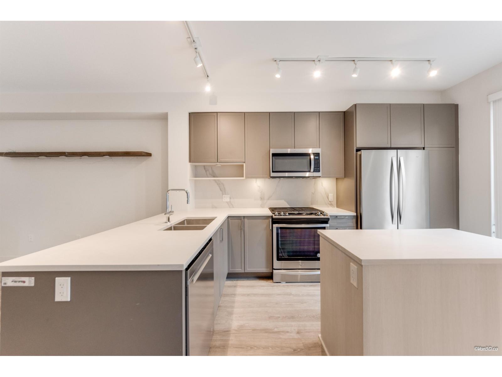 Welcome Home to Canopy by QUALICO! This beautiful 2 bed w/den, 2.5 bath home features east/west exposure w/huge windows throughout allowing plenty of natural light in. Large L-shaped kitchen incl breakfast bar, island & pantry; white shaker cabinets w/white quartz counters, SS whirlpool appliance pkg incl GAS RANGE! Filtered water & ice maker in fridge. Large sliding glass door leads to the balcony incl GAS HOOK UP for the BBQ plus a clear sight-path to mature trees. Spacious master bedroom incl double closets & lux ensuite w/floating vanity & huge glass enclosed shower. Superb location nestled into 260 hectares of protected forest at Tynehead Park w/walking & biking trails. Moments from hwy 1 and other major transit routes. No rental restrictions, single garage w/carport. OH: Feb 28 2-4pm (32488959)