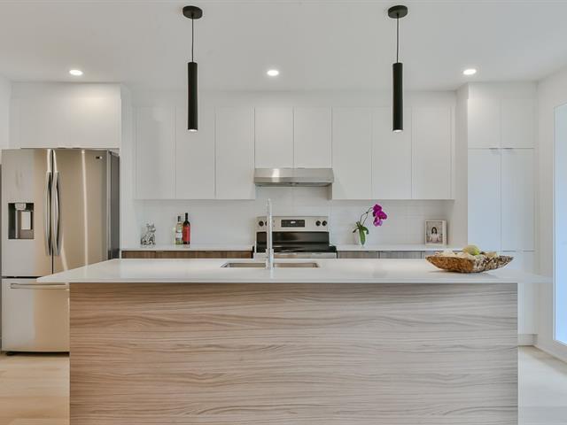 Beautiful Aura project condo built in 2023 with high-end finishes, flooded with natural light thanks to its large windows. Spacious modern kitchen featuring quartz countertops, ceramic backsplash, and quality cabinetry, open to a friendly open-concept living area. The unit offers two bedrooms and a full bathroom with a separate shower. Enjoy a bright, airy, and generous living space. Inclusions: 2 parking spaces, WIFI, heating/electricity and 5 appliances. Prime location close to all amenities, schools, daycares, and the REM Deux-Montagnes. Available for quick occupancy! **Only cats are permitted** (50451142)