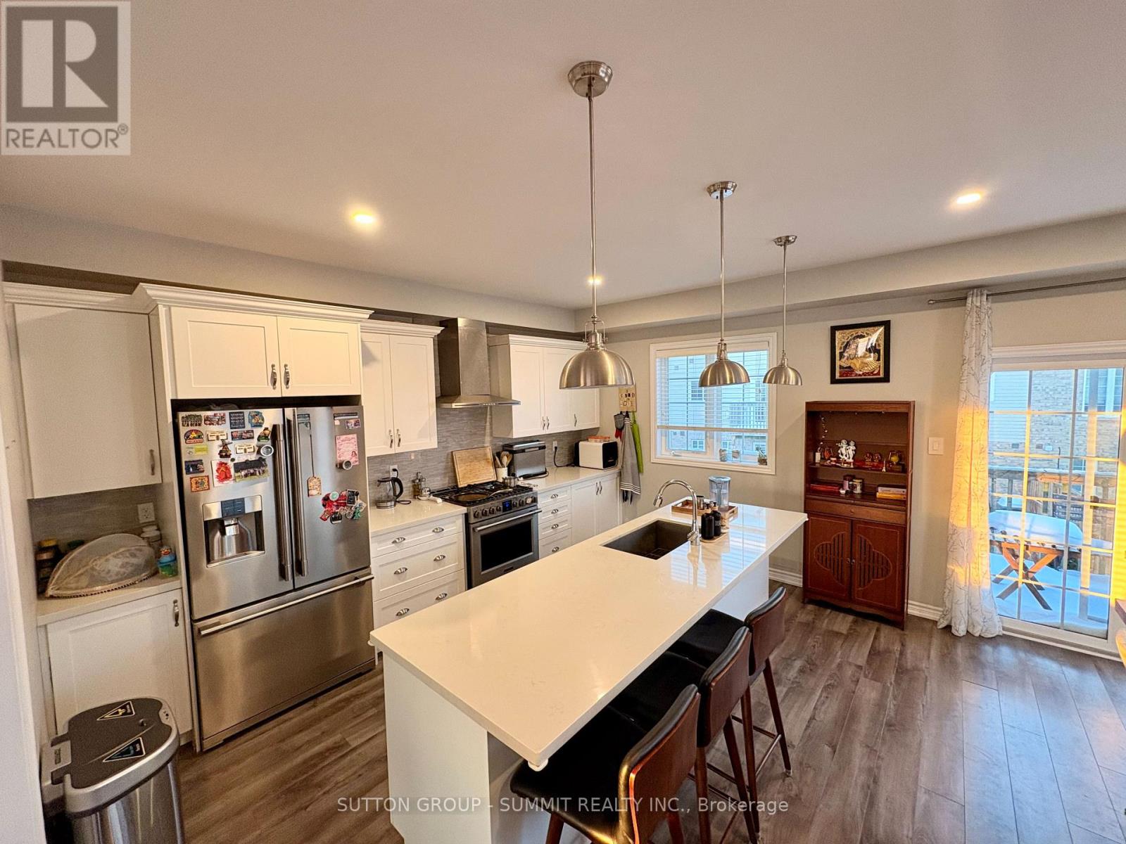 Sun-filled end-unit townhome on an oversized premium corner lot and large back offering 2551 sq. ft. of thoughtfully designed living space and exceptional indoor-outdoor living. Featuring a private balcony off the kitchen overlooking the landscaped backyard, along with an expansive stamped concrete patio and gazebo - perfect for entertaining or unwinding after a busy day.Step inside to discover a home filled with natural light throughout all three finished levels. The inviting wrap-around porch creates a warm first impression, while the entry level offers a versatile bedroom, a home office, a full bath, convenient garage access, and direct walkout to the landscaped backyard - ideal for flexible family living or professional use.The main living level features soaring 9-foot ceilings that enhance the sense of space and light. A modern white kitchen anchors the home with quartz countertops, abundant cabinetry, and a 9-foot island with breakfast seating. A large walk-in pantry next to the kitchen provides exceptional storage, and the adjoining balcony offers a private spot to enjoy morning coffee or evening relaxation overlooking the backyard. Open-concept dining and family areas with wide plank flooring and a striking accent wall create a bright, sophisticated space for entertaining or everyday living.The oversized backyard with finished stamped concrete patio and gazebo offers a seamless extension of the home - perfect for hosting gatherings, family activities, or quiet reflection.Upstairs, three generously sized bedrooms include a serene primary suite complete with a walk-in closet and upgraded ensuite bath designed for relaxation and convenience.With designer-inspired finishes, abundant natural light, flexible living spaces, and premium indoor-outdoor amenities, this home is ideal for professionals, families, or anyone seeking comfort, style, and modern convenience in a welcoming, family-friendly community. Tenant to pay all utilties and hot water heater - $54/month (42213118)