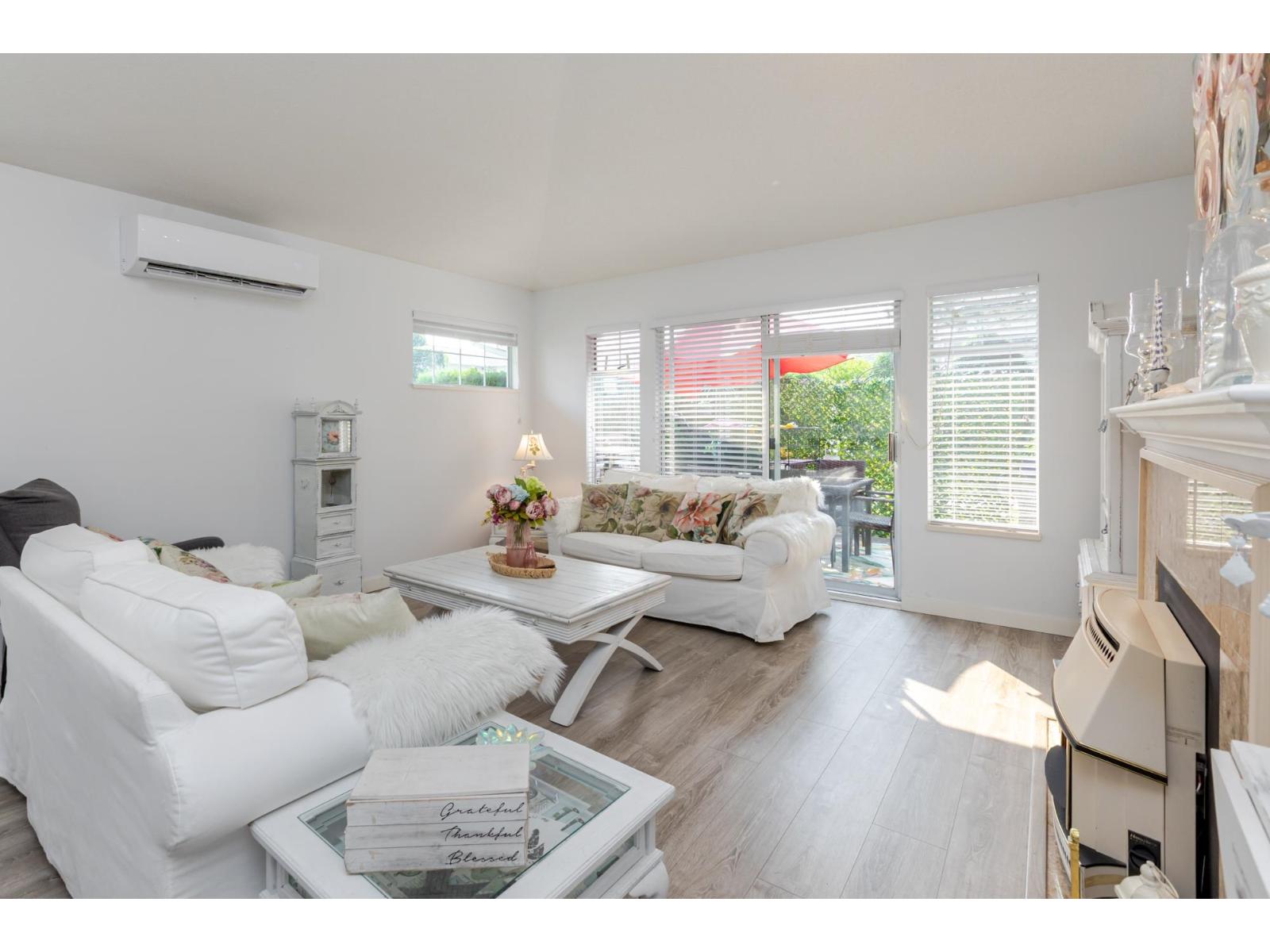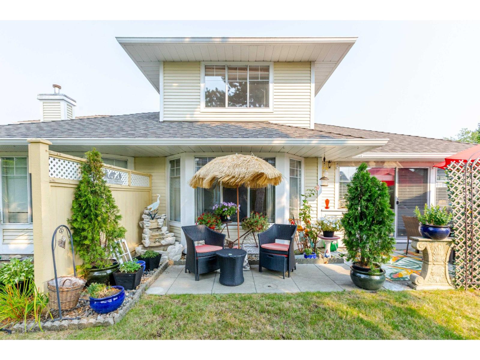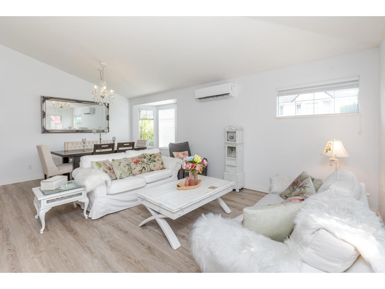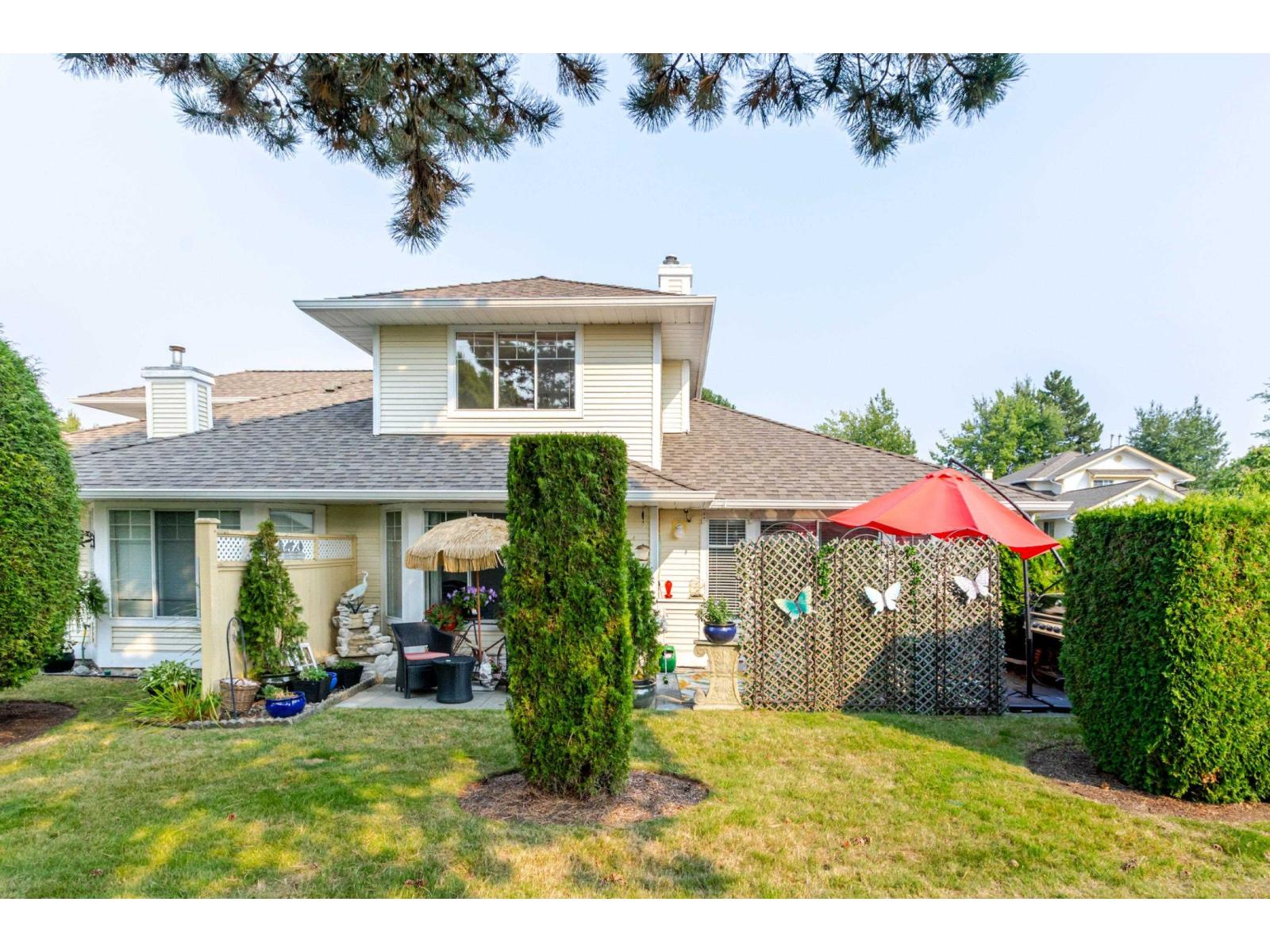 Attention downsizers! This beautifully updated END UNIT townhome offers 3 bedrooms, 2.5 bathrooms, & over 1,600sf. of bright, open living space - making it feel more like a detached home. Tastefully updated w/light laminate flooring, s/s appliances, quartz counters in the kitchen, mini split A/C, & newer washer/dryer. Other features include soaring vaulted ceilings & a cozy gas fireplace. Primary bedroom conveniently located on the main floor w/spacious ensuite + a updated powder room & a double side-by-side garage add everyday comfort. Large windows throughout flood the home w/natural light. Step outside to a generous southwest-facing patio that backs onto a serene greenbelt. Enjoy the complexes fantastic amenities including a clubhouse, putting green, hot tub, and outdoor pool. (32489215)