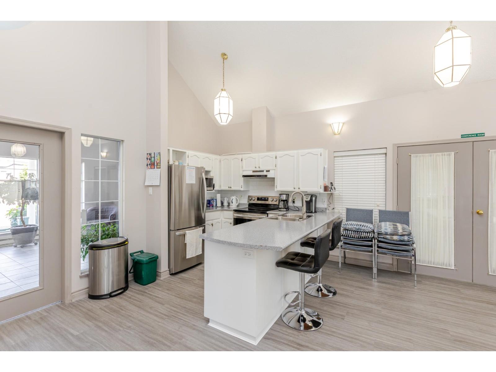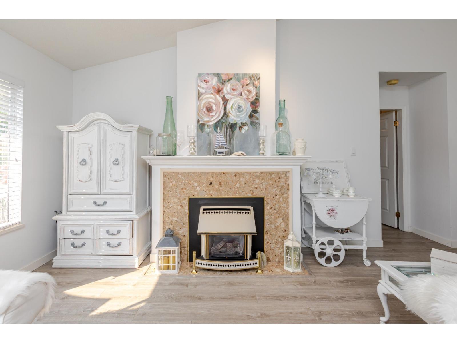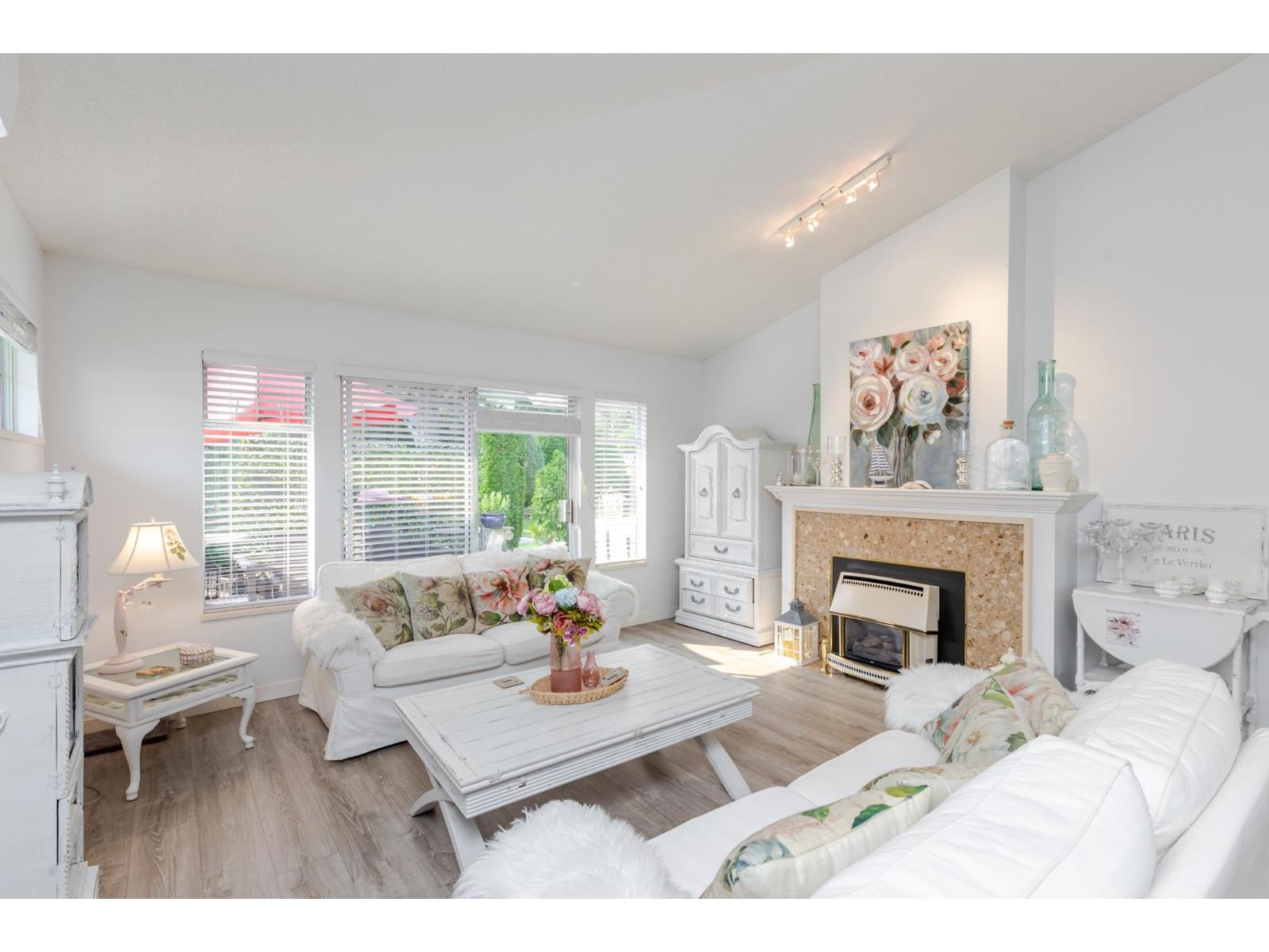 Attention downsizers! This beautifully updated END UNIT townhome offers 3 bedrooms, 2.5 bathrooms, & over 1,600sf. of bright, open living space - making it feel more like a detached home. Tastefully updated w/light laminate flooring, s/s appliances, quartz counters in the kitchen, mini split A/C, & newer washer/dryer. Other features include soaring vaulted ceilings & a cozy gas fireplace. Primary bedroom conveniently located on the main floor w/spacious ensuite + a updated powder room & a double side-by-side garage add everyday comfort. Large windows throughout flood the home w/natural light. Step outside to a generous southwest-facing patio that backs onto a serene greenbelt. Enjoy the complexes fantastic amenities including a clubhouse, putting green, hot tub, and outdoor pool. (32489215)