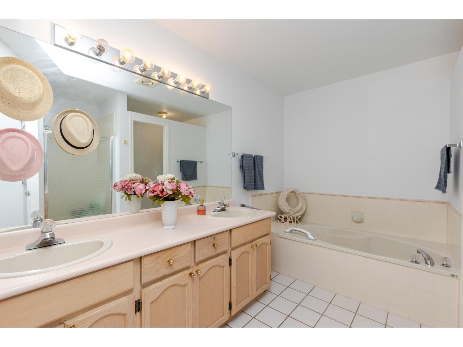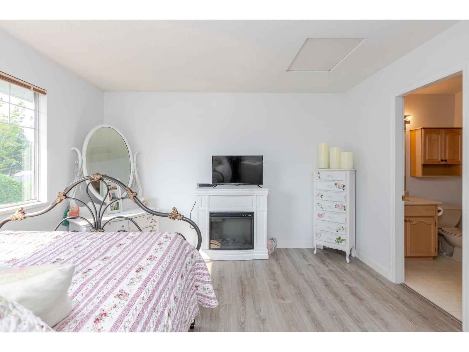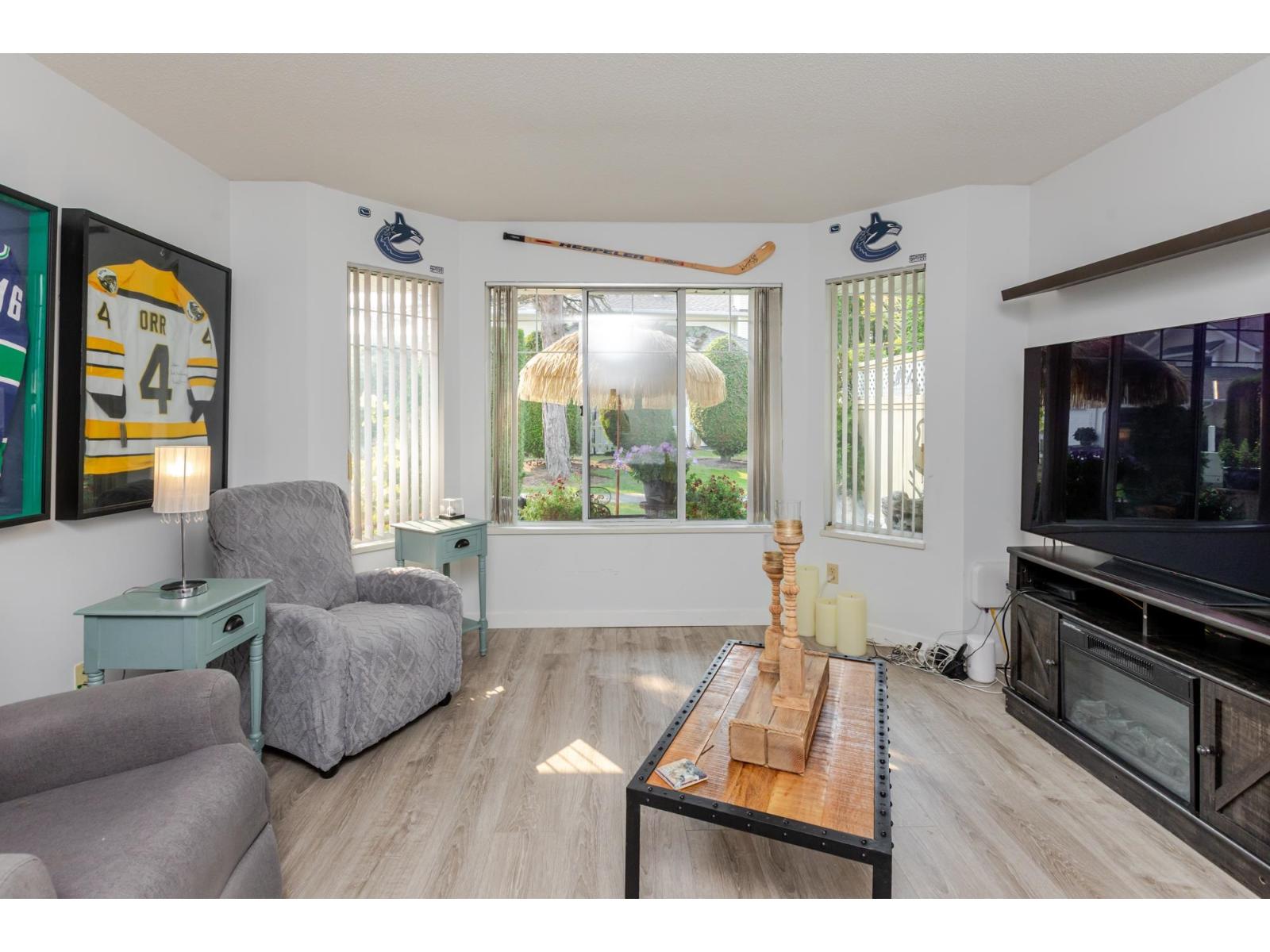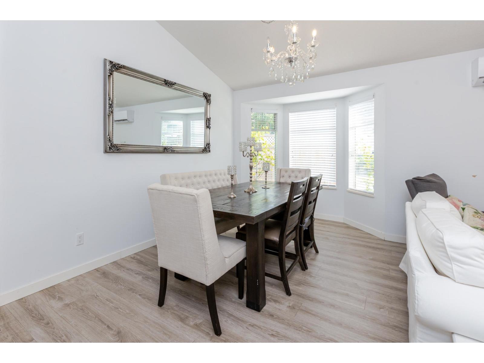 Attention downsizers! This beautifully updated END UNIT townhome offers 3 bedrooms, 2.5 bathrooms, & over 1,600sf. of bright, open living space - making it feel more like a detached home. Tastefully updated w/light laminate flooring, s/s appliances, quartz counters in the kitchen, mini split A/C, & newer washer/dryer. Other features include soaring vaulted ceilings & a cozy gas fireplace. Primary bedroom conveniently located on the main floor w/spacious ensuite + a updated powder room & a double side-by-side garage add everyday comfort. Large windows throughout flood the home w/natural light. Step outside to a generous southwest-facing patio that backs onto a serene greenbelt. Enjoy the complexes fantastic amenities including a clubhouse, putting green, hot tub, and outdoor pool. (32489215)
