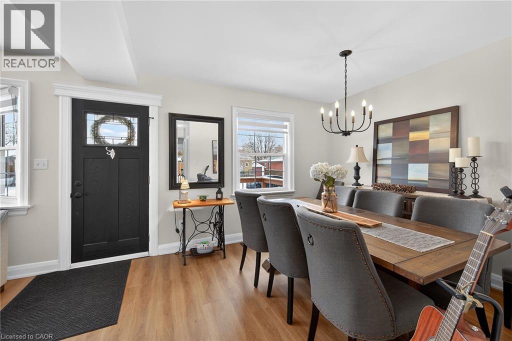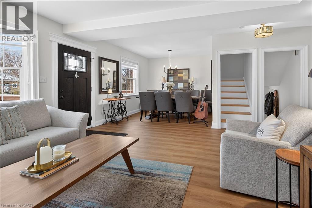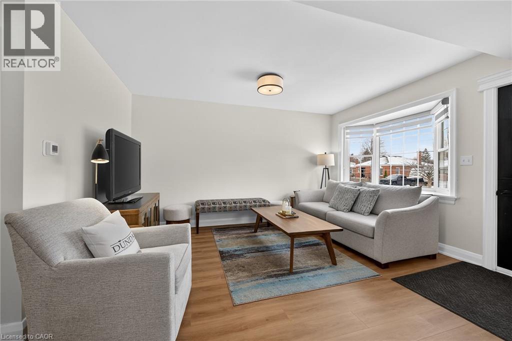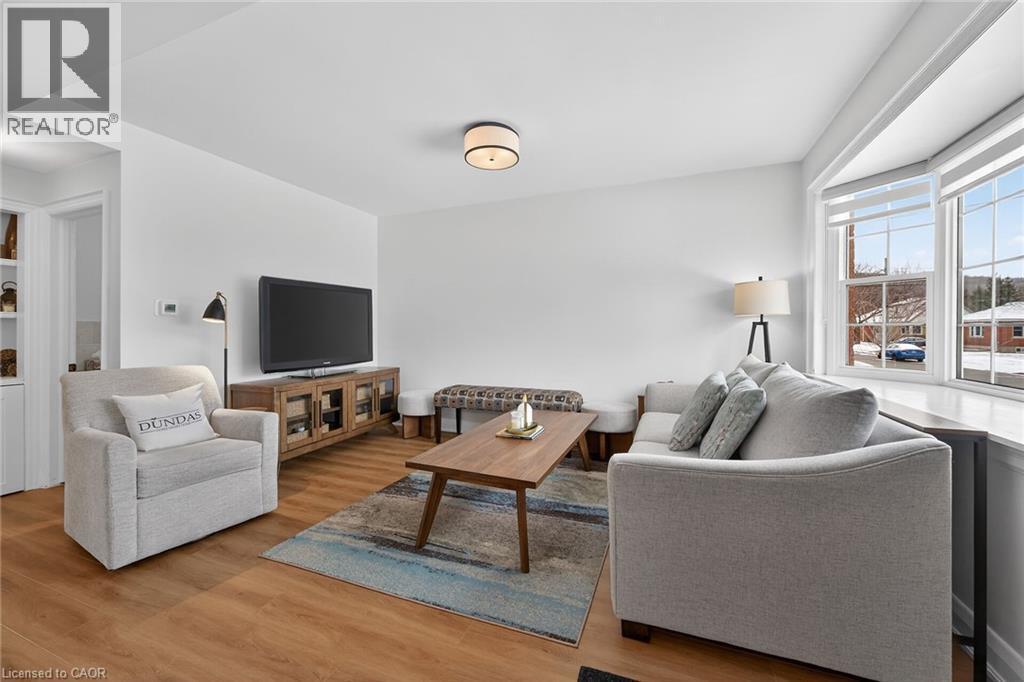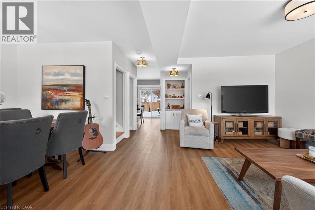 Welcome to this charming 1.5-storey home in the heart of Dundas, just a short walk to the shops, cafés, and vibrant atmosphere of Olde Town. This beautifully maintained 2-bedroom, 2.5-bath home blends classic character with thoughtful updates and functional living space. Step inside to a bright, open-concept main floor featuring laminate flooring, and an inviting layout perfect for everyday living and entertaining. The bright white kitchen is both stylish and practical, complete with stainless steel appliances and a patio door walkout to the deck—ideal for seamless indoor-outdoor living. Upstairs, you’ll find comfortable bedrooms with hardwood flooring and an update bathrooms that offer a fresh, modern feel. The finished basement adds exceptional versatility with a cozy carpeted rec room featuring a gas fireplace, a 2pc bathroom and a convenient Murphy bed—perfect for guests or a flexible living space. A large laundry room with cabinetry and ample storage throughout the basement add to the home’s practicality. Outside, the fully fenced, generously sized yard is perfect for families, pets, or entertaining. Enjoy summer evenings on the deck, and take advantage of the two garden sheds for additional storage. With updated windows, stylish finishes, and an unbeatable walkable location, this Dundas gem offers comfort, convenience, and community all in one. Don’t miss your opportunity to call it home! ** Floorplans in Supplements ** (70203397)