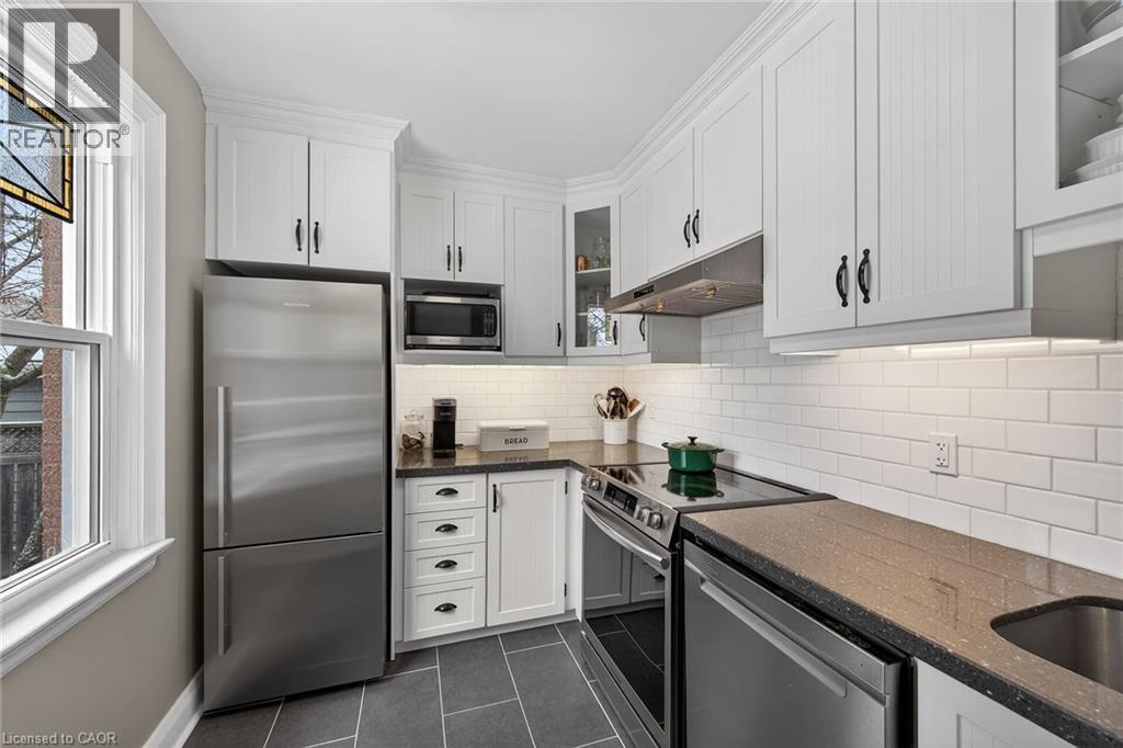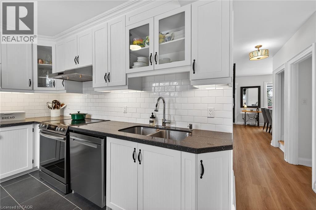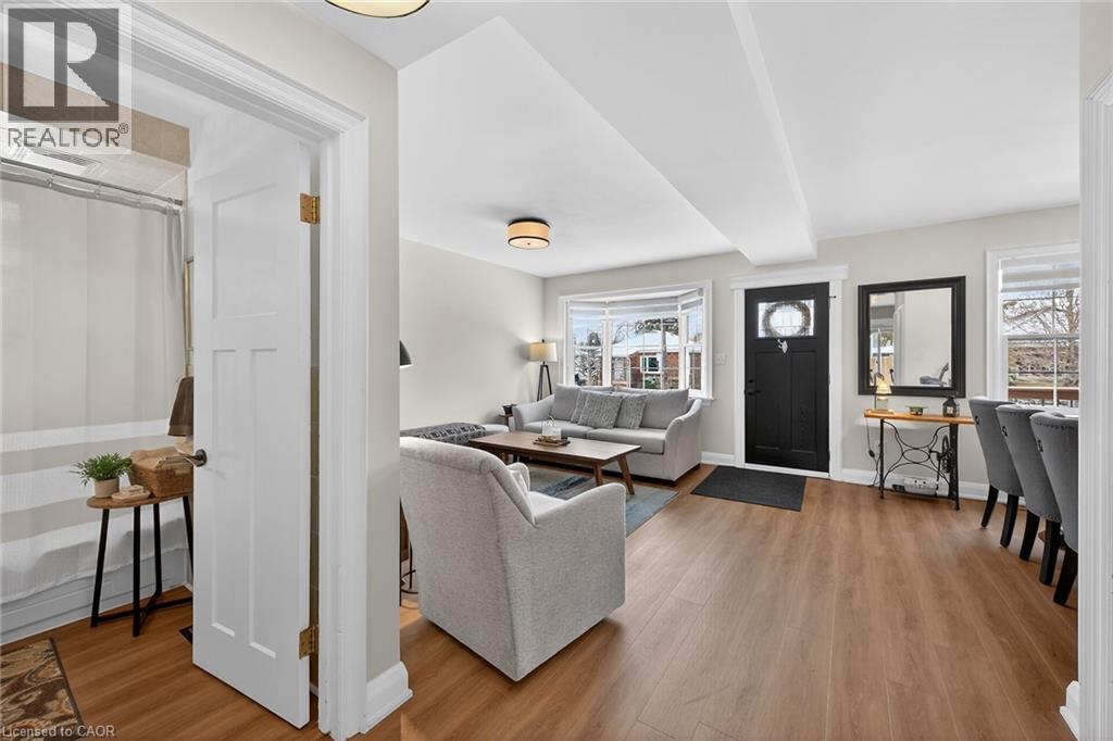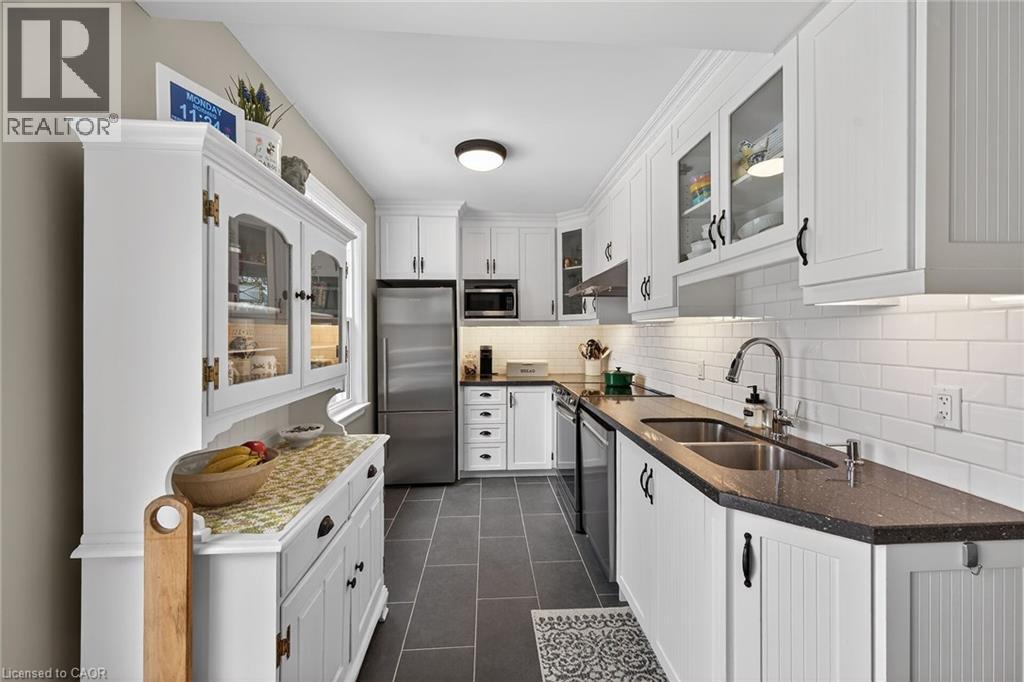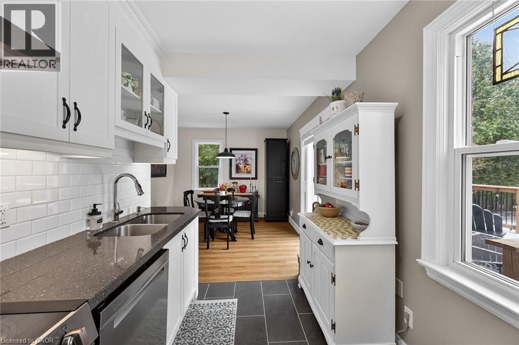 Welcome to this charming 1.5-storey home in the heart of Dundas, just a short walk to the shops, cafés, and vibrant atmosphere of Olde Town. This beautifully maintained 2-bedroom, 2.5-bath home blends classic character with thoughtful updates and functional living space. Step inside to a bright, open-concept main floor featuring laminate flooring, and an inviting layout perfect for everyday living and entertaining. The bright white kitchen is both stylish and practical, complete with stainless steel appliances and a patio door walkout to the deck—ideal for seamless indoor-outdoor living. Upstairs, you’ll find comfortable bedrooms with hardwood flooring and an update bathrooms that offer a fresh, modern feel. The finished basement adds exceptional versatility with a cozy carpeted rec room featuring a gas fireplace, a 2pc bathroom and a convenient Murphy bed—perfect for guests or a flexible living space. A large laundry room with cabinetry and ample storage throughout the basement add to the home’s practicality. Outside, the fully fenced, generously sized yard is perfect for families, pets, or entertaining. Enjoy summer evenings on the deck, and take advantage of the two garden sheds for additional storage. With updated windows, stylish finishes, and an unbeatable walkable location, this Dundas gem offers comfort, convenience, and community all in one. Don’t miss your opportunity to call it home! ** Floorplans in Supplements ** (70203397)