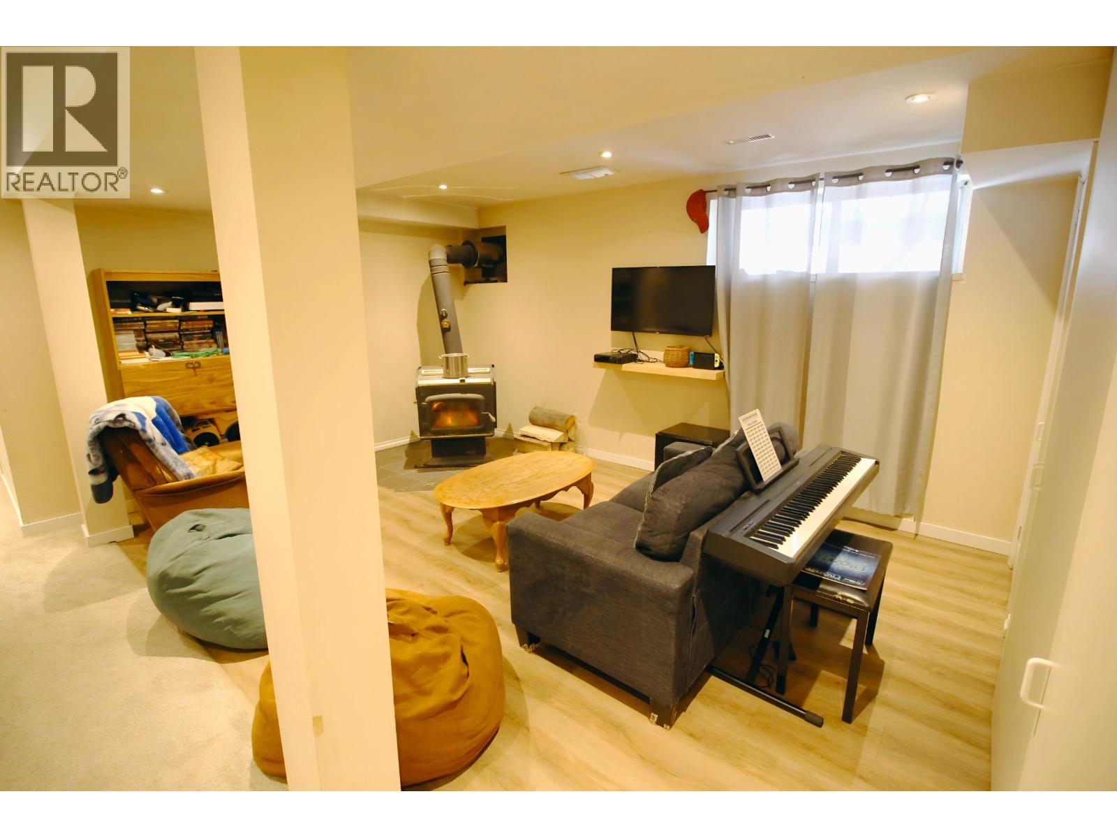 Great Starter! 4 bedroom / 2 bath family home with nice open layout throughout the main living kitchen/dining/living room area. Garden doors from the dining area to an updated treated sundeck overlook the fenced backyard with raised garden beds & storage shed. Convenient wrap-around covered veranda from the back sundeck towards the front of the house. Additional storage shed beside house. 3 bdrms & updated 4 pc bath on main. The finished basement features a very spacious recroom & cozy family room with wood stove. The basement also offers a 4th bdrm, office, 3 pc bathroom, & laundry/utility room. High-eff gas furnace, hot water tank: 2024, value-adding updates over the years throughout. Appliances included. (32489070)