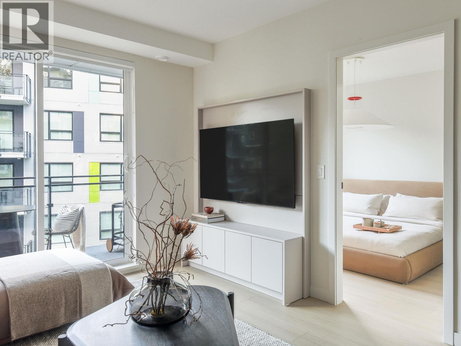 DEVELOPER FINAL HOME at hue by Marcon. Completed 2 bed, 2 bath + den residence in the new East Building on Port Moody's west edge. Overlooking the courtyard, this spacious layout features custom TV millwork, added pantry and storage space, and an enclosed den ideal for a home office. The kitchen offers European flat-panel cabinetry with integrated appliances: 30" Liebherr fridge, 30" AEG 5-burner gas cooktop, and 24" Fulgor dishwasher. Both bedrooms fit king beds, a rare offering. Primary includes walk-in closet and ensuite. NuHeat heated bathroom floors. For a limited time, receive a second parking stall valued at $30,000. (32489304)