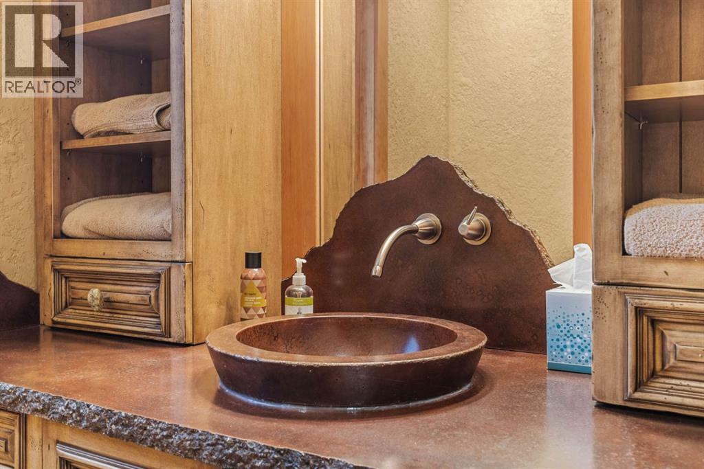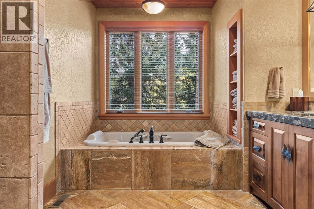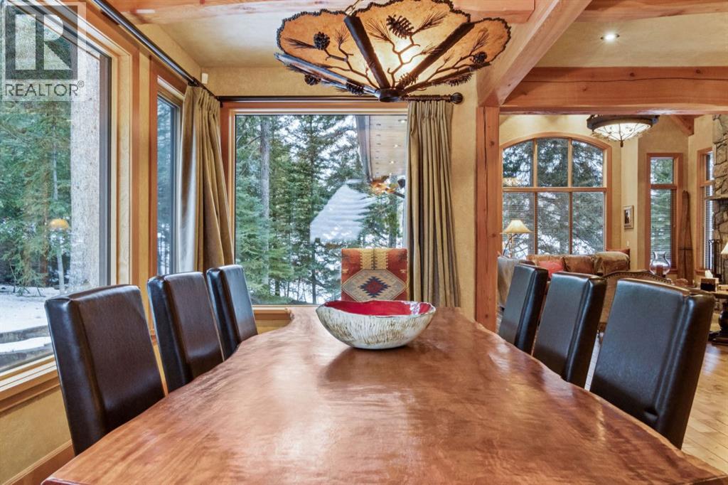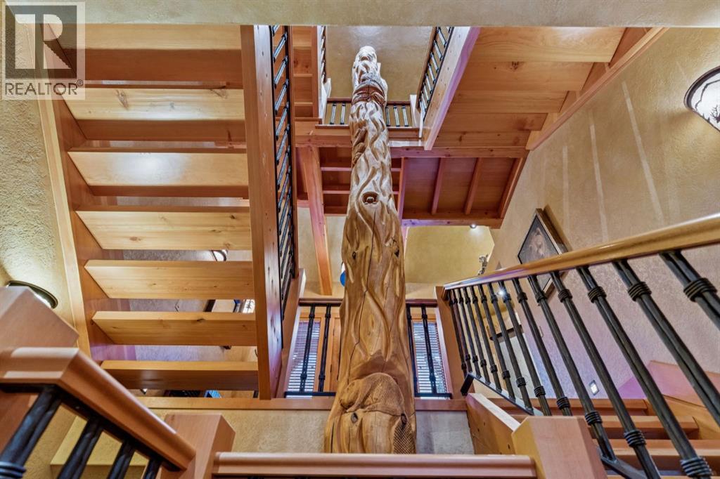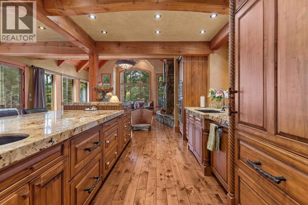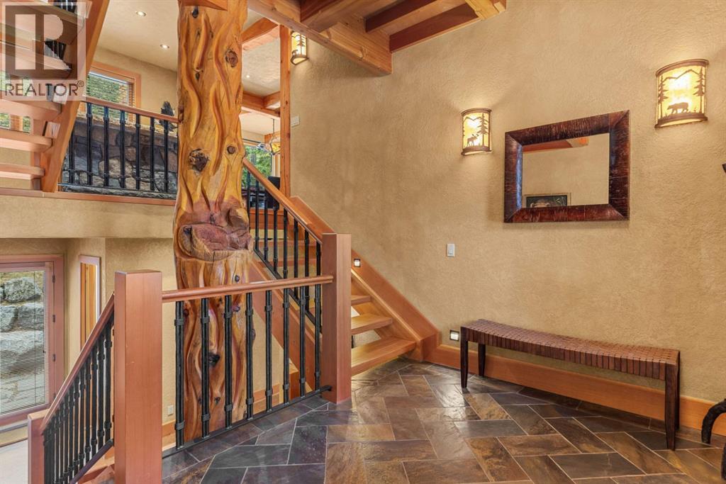 Located in Cairns on the Bow, just minutes from the gates of Banff National Park, this custom 4,000+ sq ft timber-frame residence offers a rare blend of privacy, warmth, and mountain character. Set on a beautifully treed 17,642 sq ft lot within Canmore’s only gated community, the home combines natural seclusion with exceptional craftsmanship.Inside, soaring fir-paneled ceilings and the timeless elegance of Italian plaster set a warm and sophisticated tone throughout. The open-concept layout seamlessly connects the principal living spaces, ideal for both intimate family moments and grand entertaining. The great room is anchored by a striking Rundle stone wood-burning fireplace, creating a natural gathering space that radiates warmth and character. The kitchen pairs custom cabinetry with Sub-Zero and Viking appliances, thoughtfully designed for everyday living and effortless entertaining. The primary suite offers a peaceful retreat with treetop views and a spa-inspired ensuite finished in Marinace granite and travertine, complete with a jetted tub.Additional highlights include two spacious guest bedrooms, a home theatre, a versatile recreation room, a dedicated home office, and a custom bar — offering flexibility for family and guests alike. Outdoors, professionally landscaped grounds feature natural stonework, a built-in BBQ, and a cozy fire pit, creating the perfect setting for year-round mountain living.A rare opportunity to own a timeless timber-frame home in Cairns on the Bow, where privacy, nature, and thoughtful design come together in perfect harmony. https://163cairns.info/ (31682797)