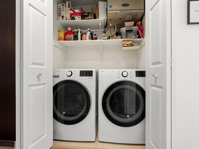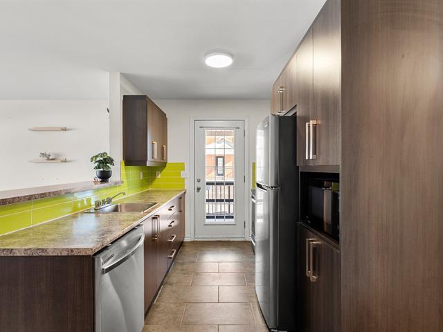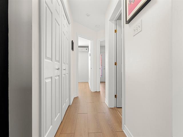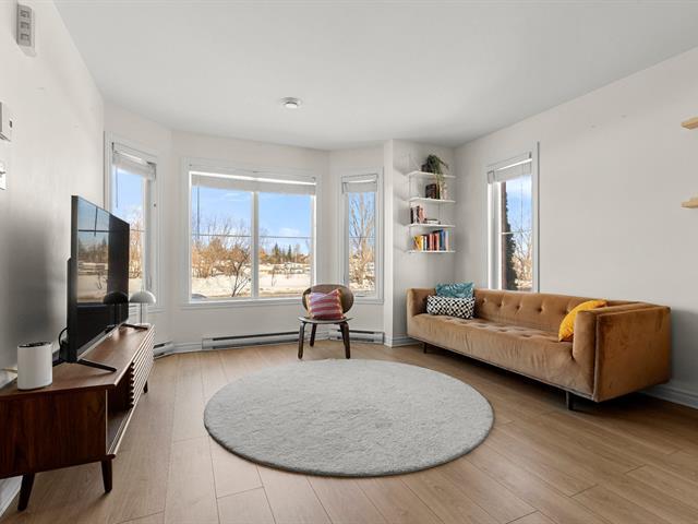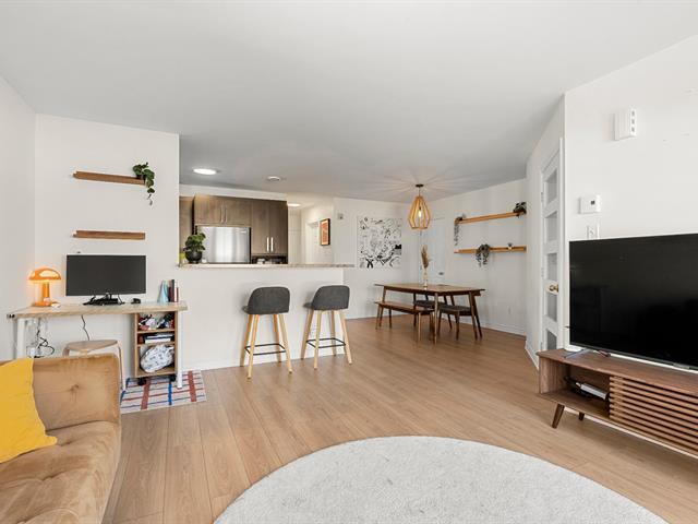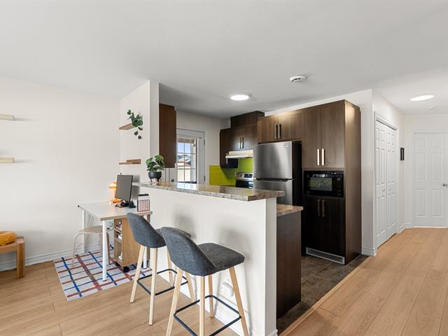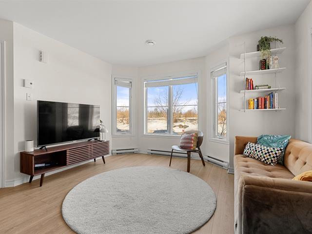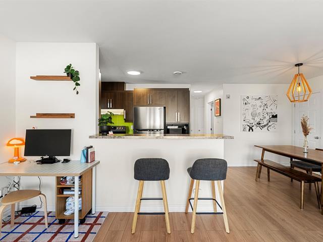 A truly distinctive unit in Brossard. This beautiful modern 2-bedroom condo stands out with its two private balconies, including a large exclusive side balcony -- a rare feature within the building. Fully redone flooring, primary bedroom with walk-in closet, outdoor parking and storage included. Ideally located near Quartier Dix/30, major highways A-10/A-30 and public transit with bus access directly to the REM Du Quartier station. A turnkey opportunity not to be missed. (50571855)