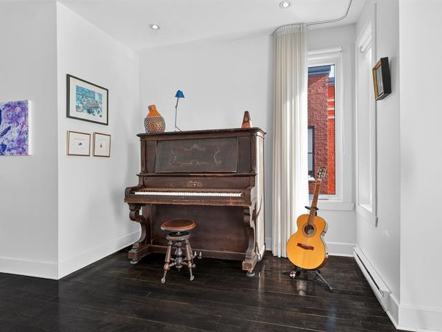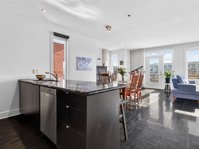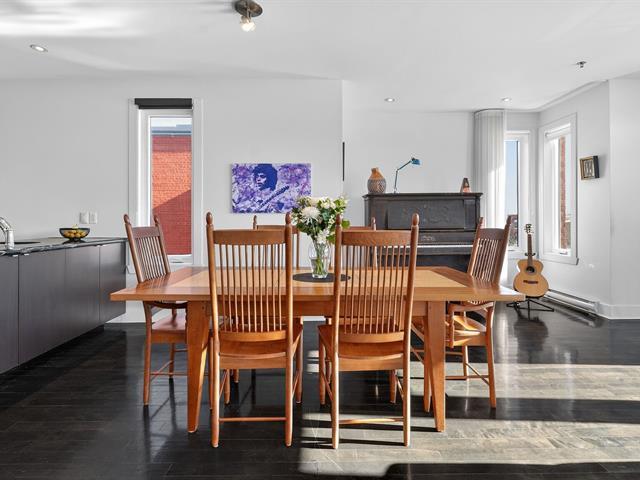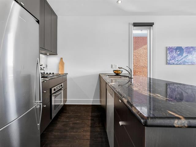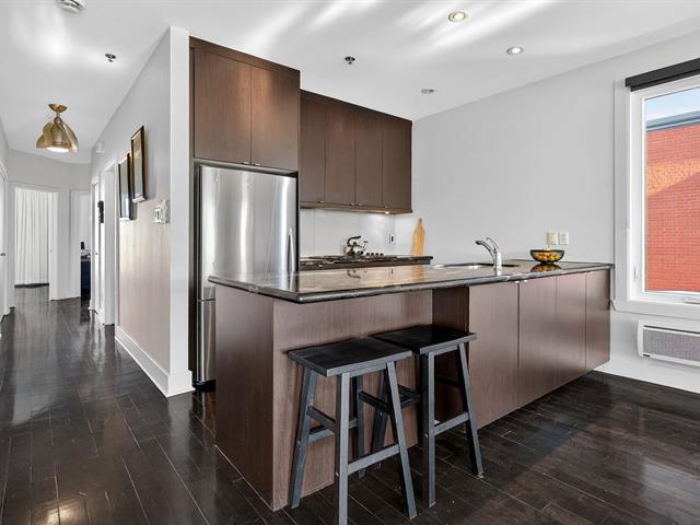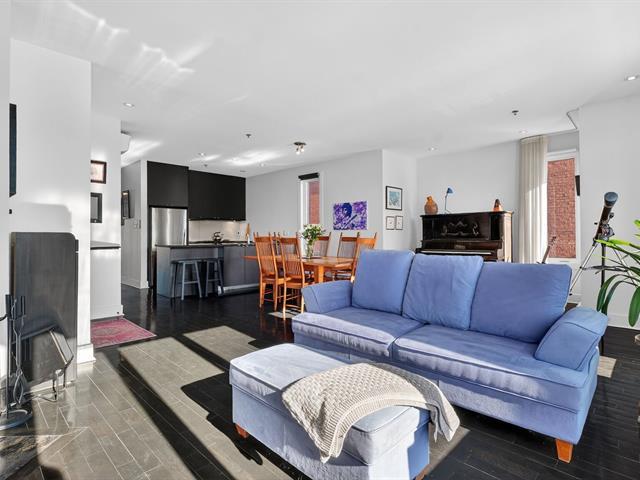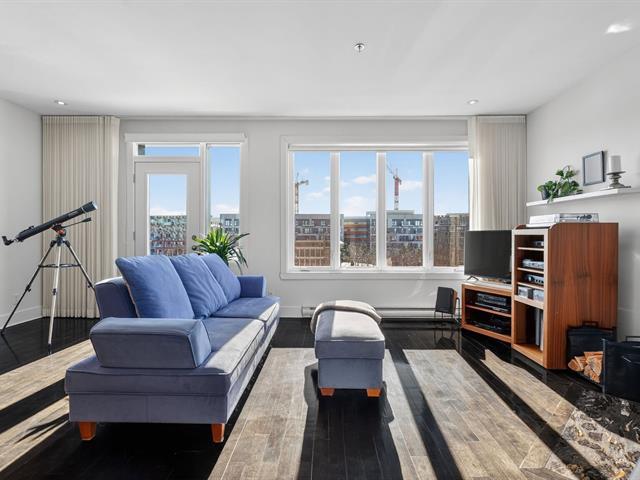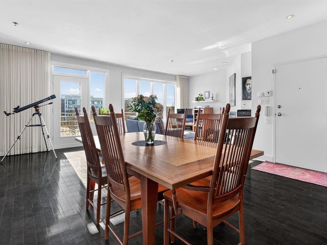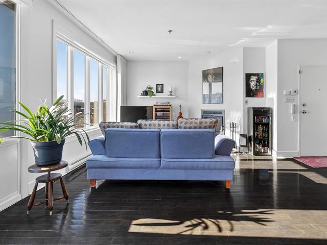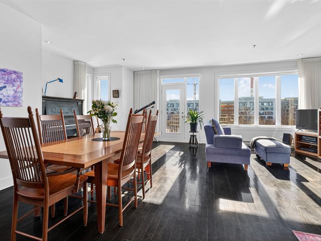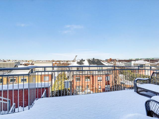 WOW! Stunning CORNER PENTHOUSE on the 4th and top floor on André-Laurendeau, flooded with natural light and offering spectacular views of the park and the horizon. The elevator leads to a semi-private entrance, enhancing the sense of exclusivity. Thanks to its corner layout, the unit benefits from abundant windows and exceptional sunlight throughout the day. The open-concept living area impresses with its spaciousness and brightness. The compliant fireplace adds warmth on cozy winter evenings, while the terrace becomes a true extension of the living space, offering unobstructed city views and a view of the Olympic Stadium. (52679666)