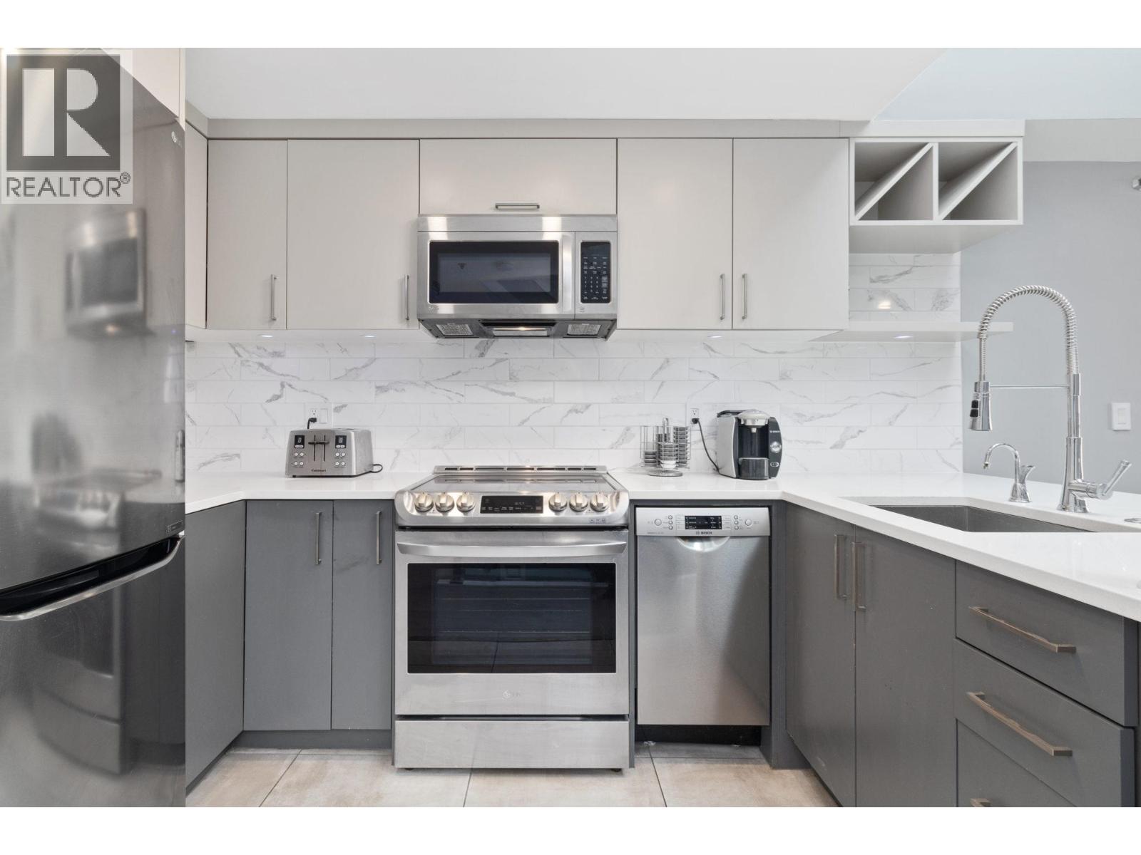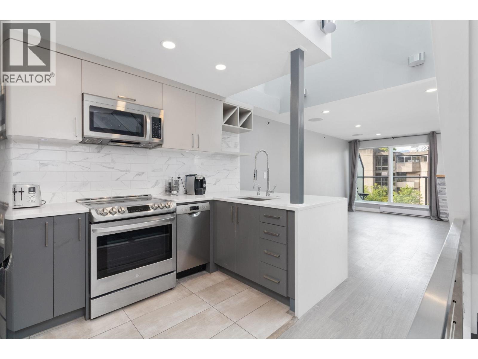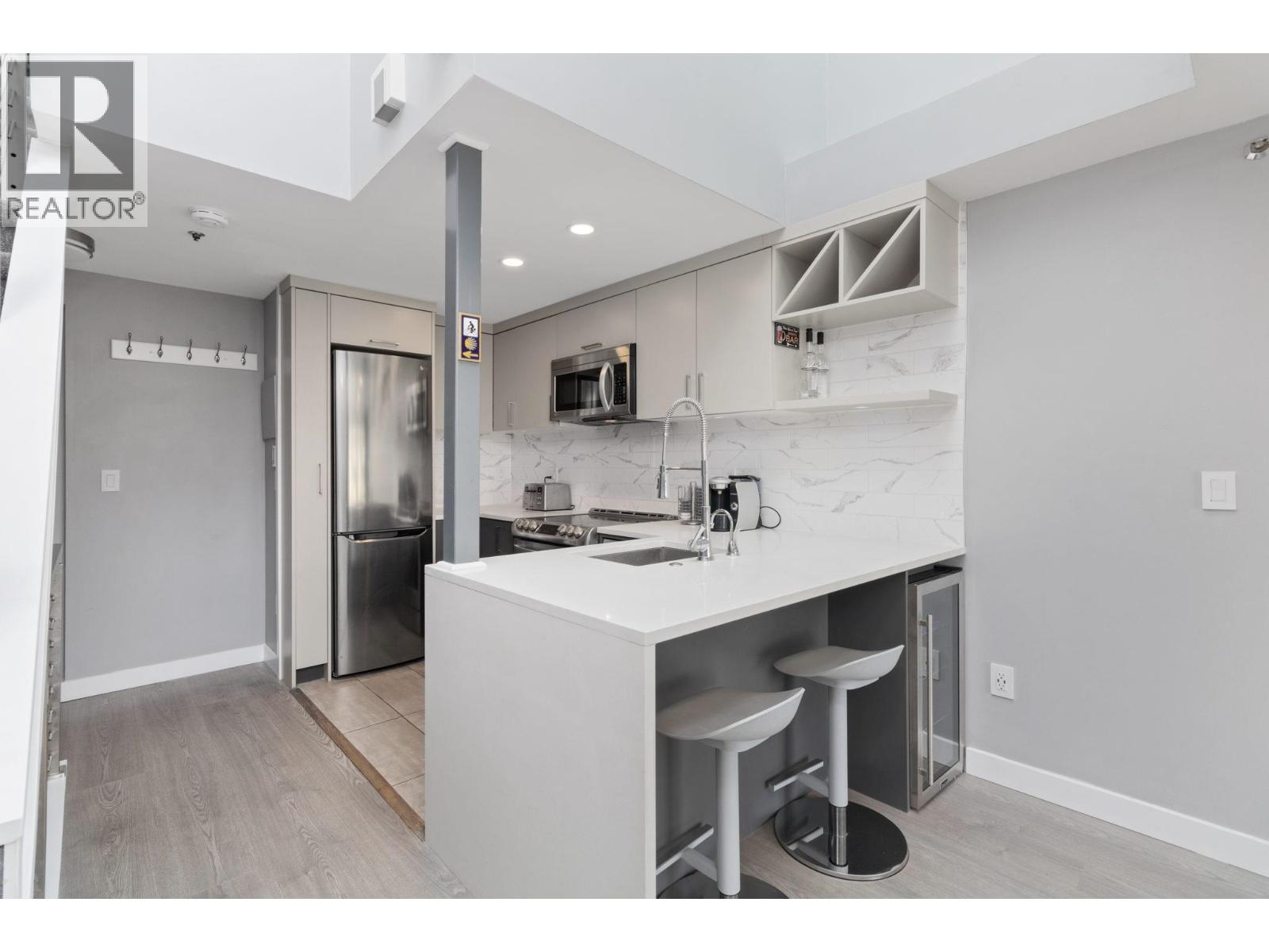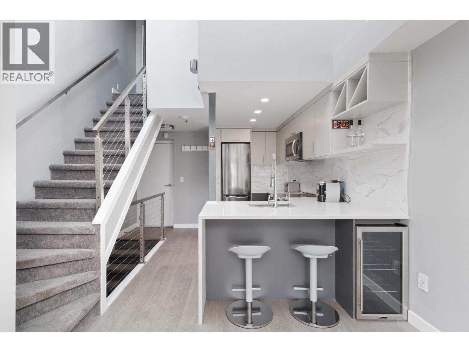 Welcome to Granville Island Village , in the heart of False Creek. Spacious freehold1 bed+1 bath unit with in-suite laundry. This two level townhouse is located on the quiet side of the building, each level has an outdoor area . Lots of updates done, Newer kitchen s/s appliances, kitchen sink with hot water on demand, Quartz countertop, Newer Laminate Flooring, updated bathroom, heated bathroom floors. Skylight windows that gives lots natural light. Building has been mostly rain-screened including windows, sliding doors, re-piped and patio membranes replaced. Pets and rentals are allowed. Secure underground parking with direct access to the Unit. Secure Bike room. Close proximity to the Seawall, Granville Island, South Granville, Aquabus, Charleston Park, Shops and Restaurants. (32489527)