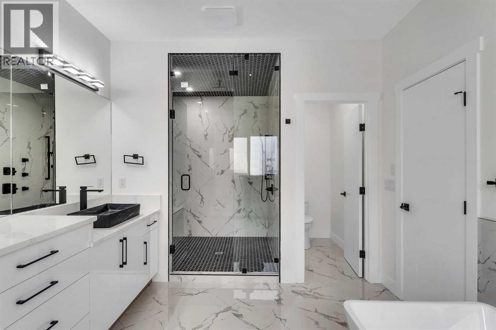 NEWLY BUILT!! 2-BED LEGAL BASEMENT SUITE!! SEPARATE ENTRANCE!! SEPARATE LAUNDRY!! OVER 4550 SQFT OF LIVING SPACE!! 7 BEDROOMS + 5 FULL BATHS!! TRIPLE ATTACHED GARAGE!! MAIN FLOOR BEDROOM & FULL BATH!! Step into this stunning new home offering luxury, space, and functionality in every corner. The main floor welcomes you with a spacious living area featuring a cozy fireplace, a beautiful kitchen with a large island, built-in appliances, and an additional spice kitchen for extra convenience. Abundant cabinetry and access to the backyard deck make it perfect for everyday living and entertaining. A main floor bedroom with a 3-piece bath adds flexibility as it can be used as office as well. Upstairs features 4 BEDROOMS and 3 FULL BATHS, including a PRIMARY BEDROOM with a 5PC ENSUITE BATH and walk-in closet. Two bedrooms share a stylish Jack & Jill 5PC BATH, while the fourth bedroom enjoys 4PC BATH. A bonus family room and open-to-below layout complete the upper level, along with laundry on the same floor for convenience. The LEGAL SUITE BASEMENT offers a SEPARATE ENTRANCE, 2 bedrooms, a 4-piece bath, a full kitchen, and a spacious rec room with ample storage, Laundry as well. Located close to Chestermere Lake, the Canal, schools, and shopping, this home combines comfort, style, and practicality in one incredible package. DON’T MISS THIS OPPORTUNITY TO OWN A HOME WITH LUXURY, SPACE, AND INCOME POTENTIAL! (31684968)