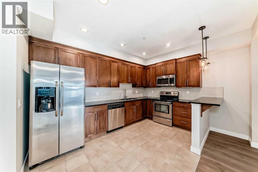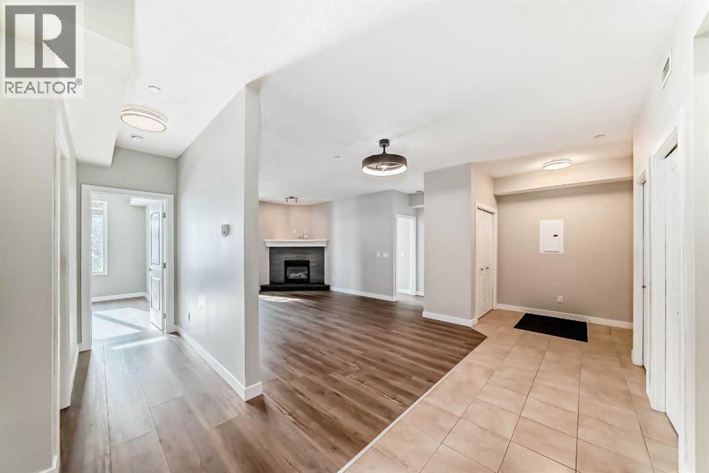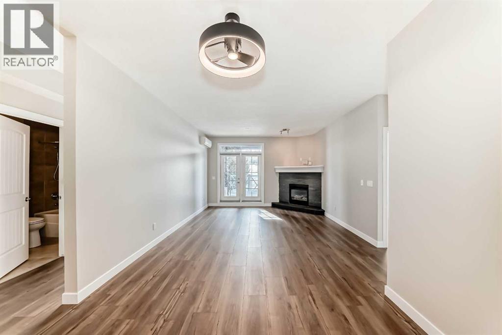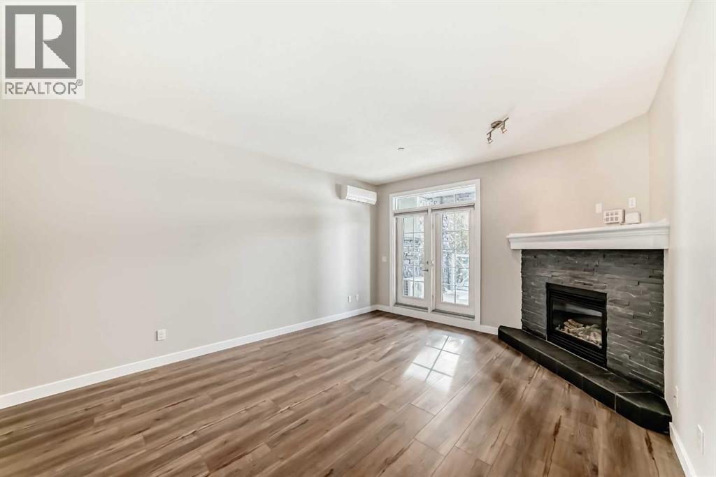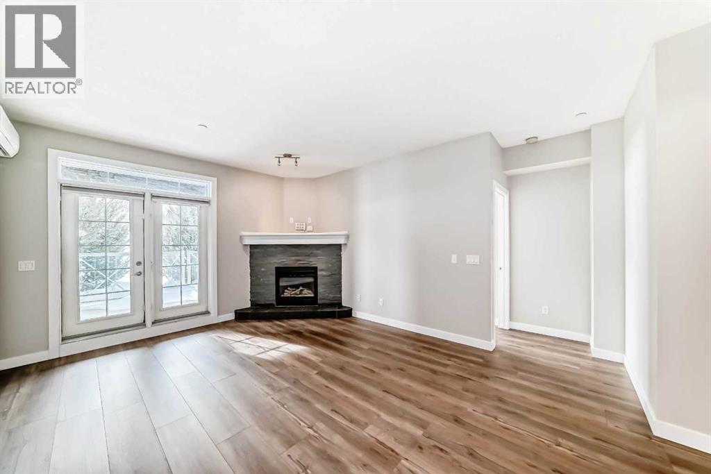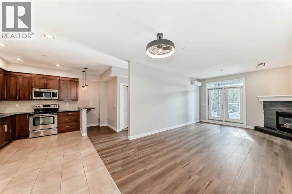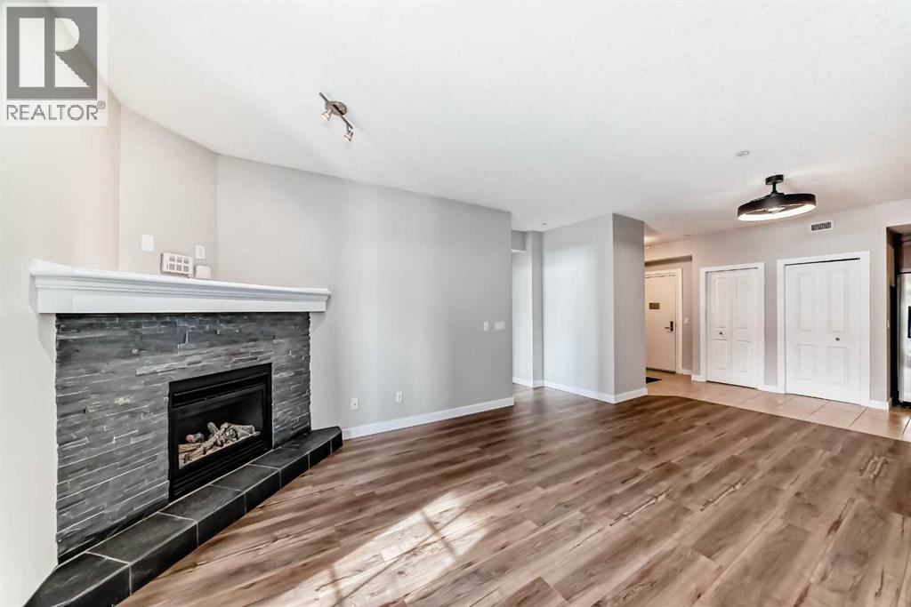 Welcome to this beautifully newly renovated 2 Bedroom, 2 Bathroom main floor condo at Savana — where modern finishes meet everyday comfort.From the moment you walk in, you’ll notice the fresh transformation. Top-of-the-line wide vinyl plank flooring, fresh contemporary paint, and new designer light fixtures create a clean, cohesive space that feels both stylish and inviting. The open-concept layout is anchored by a cozy fireplace and a bright kitchen featuring granite countertops and generous prep space — perfect for entertaining or quiet evenings at home.The true highlight? Your private patio that opens directly onto peaceful greenspace. Step outside with your morning coffee, enjoy the quiet, and appreciate the added sense of space and privacy that only a main floor location can offer.And a rare bonus — THREE titled parking stalls (one above ground and two underground). An exceptional and hard-to-find feature that adds flexibility, convenience, and long-term value.Complete with air conditioning for year-round comfort, this home offers the perfect blend of style, function, and lifestyle.Come experience the ease of condo living — and make Savana your new home. (31684596)