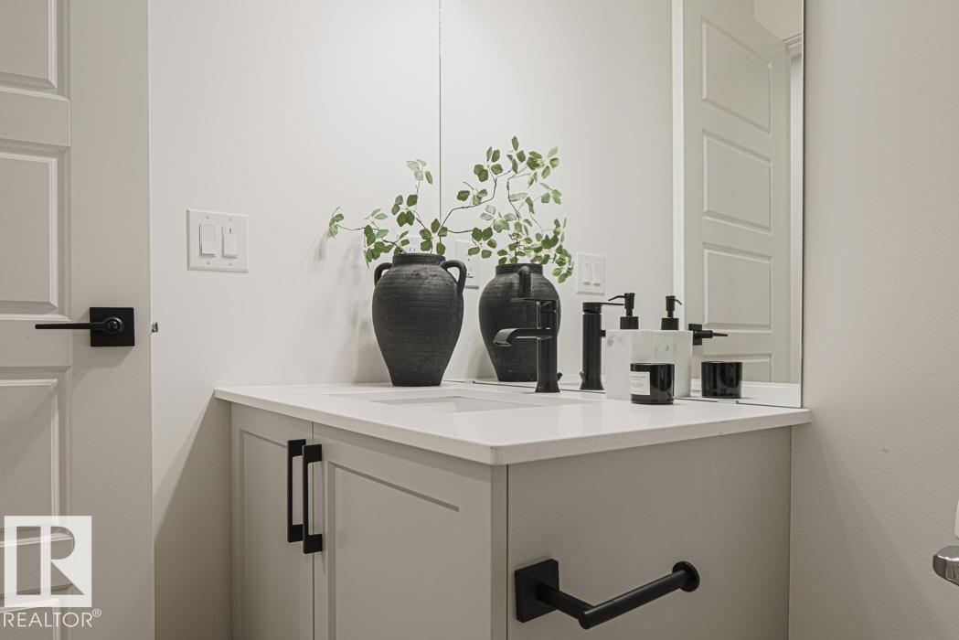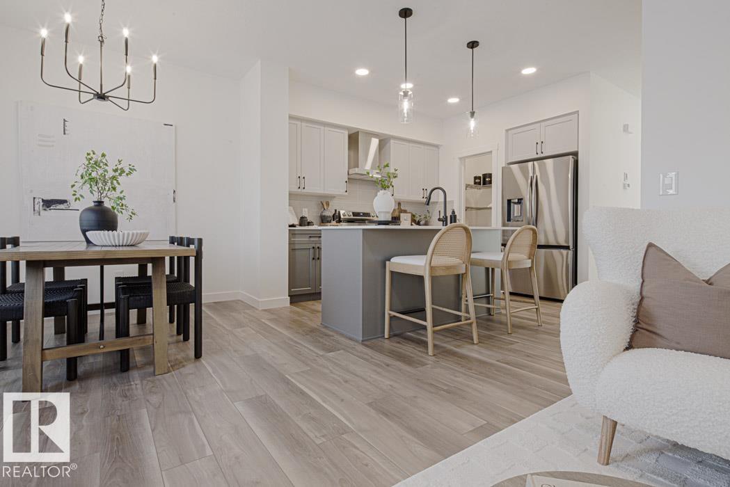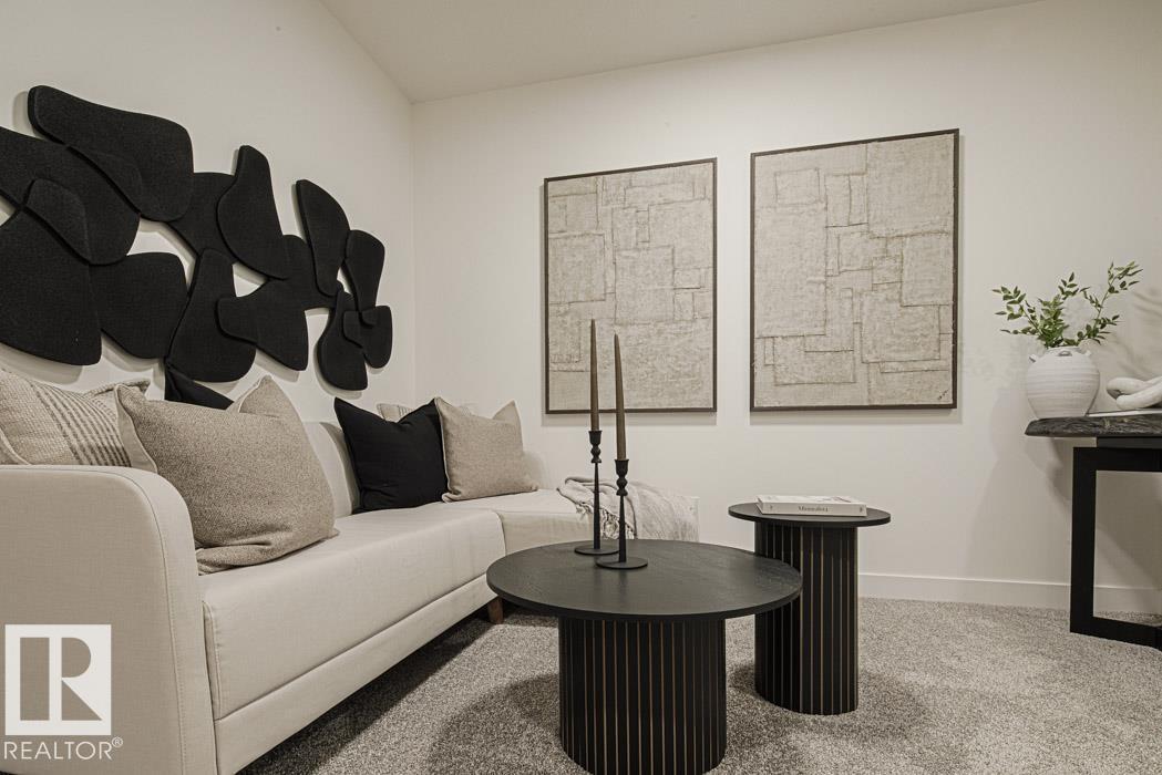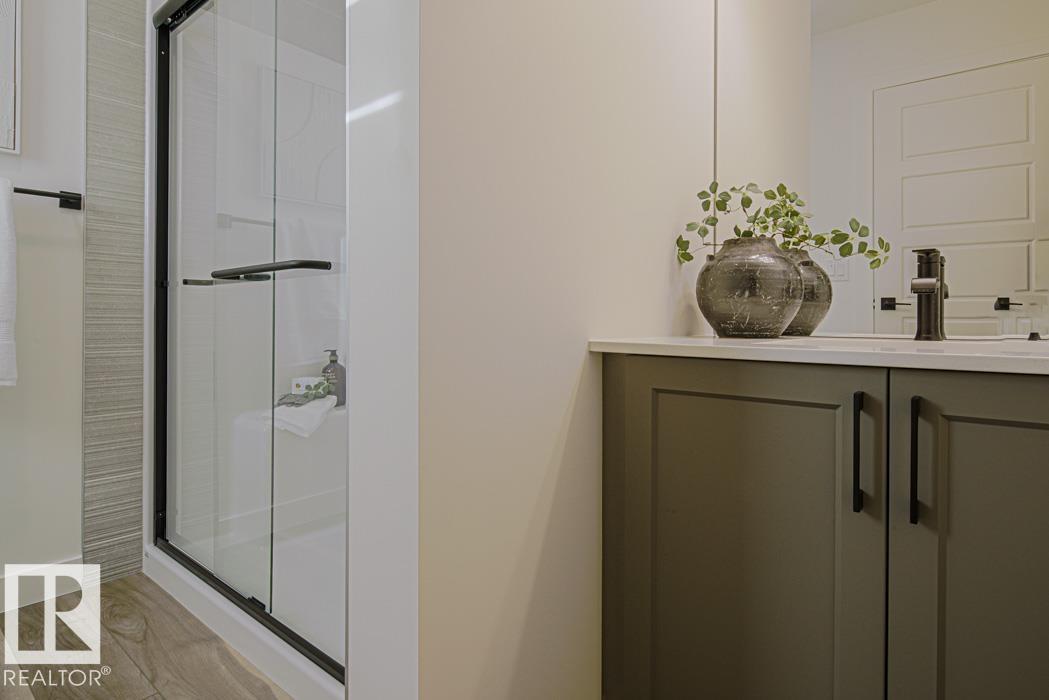 The Renew is a well-finished half duplex with a double attached garage with floor drain, separate side entrance, and 9 ft. ceilings on the main and basement levels. The open main floor features luxury vinyl plank flooring, a welcoming foyer with a coat closet, and a 2-piece bath. The kitchen offers a corner pantry, island with eating ledge, Silgranit undermount sink, built-in microwave, chimney hood fan, full-height backsplash, soft-close Thermofoil cabinets, and quartz counters. Large windows brighten the great room and nook with patio access. Upstairs includes a bonus room, laundry, two bedrooms, a full bath, and a primary suite with a walk-in closet and a 3-piece ensuite. (33871107)