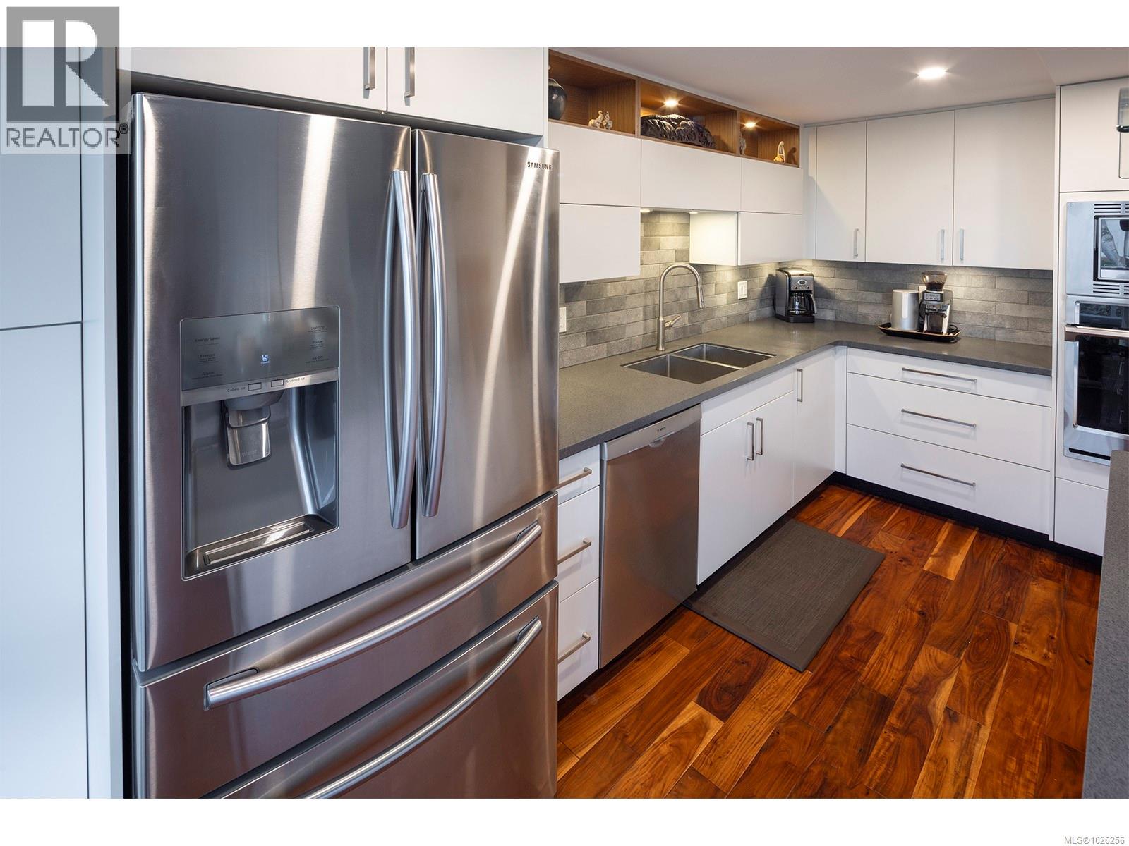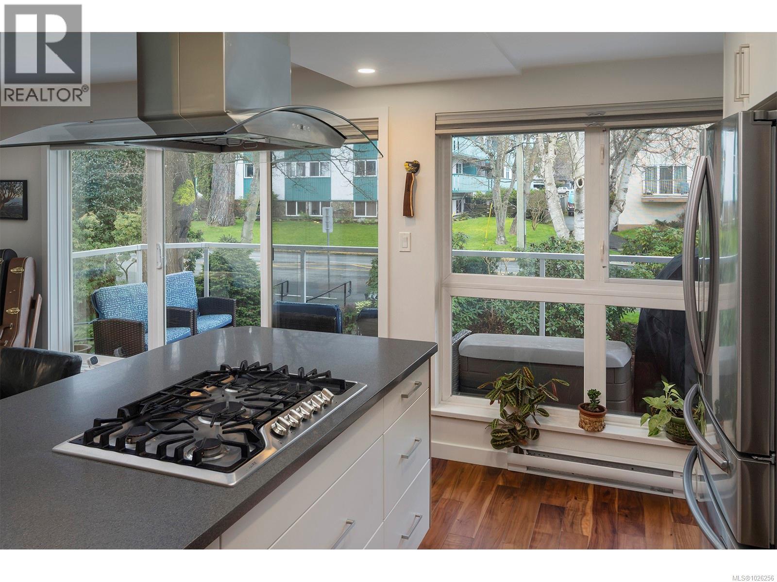 Open House Saturday 12-2 p.m. - Set on Oak Bay Avenue in Victoria’s Jubilee neighbourhood, this 2 bedroom / 2 bathroom condo has been completely redesigned and featured in Spruce Magazine. It’s a convenient, central spot—walk to cafés, shops, restaurants and daily essentials, with Royal Jubilee Hospital close by. The renovation focused on light, flow and function: the open-concept kitchen anchors the main living area with a large island, clean-lined slab cabinetry, smoky grey counters, a textured backsplash and layered lighting. Warm acacia flooring and a floor-to-ceiling teak feature/storage wall add character, architectural presence and great storage. The primary bath has been fully updated with a large, modern tub/shower. In-suite laundry, a generous deck, underground parking, a storage locker and a pet-friendly building round it out—an ideal Jubilee option for someone who wants a beautiful space without a to-do list. Just move in and enjoy! (30422733)