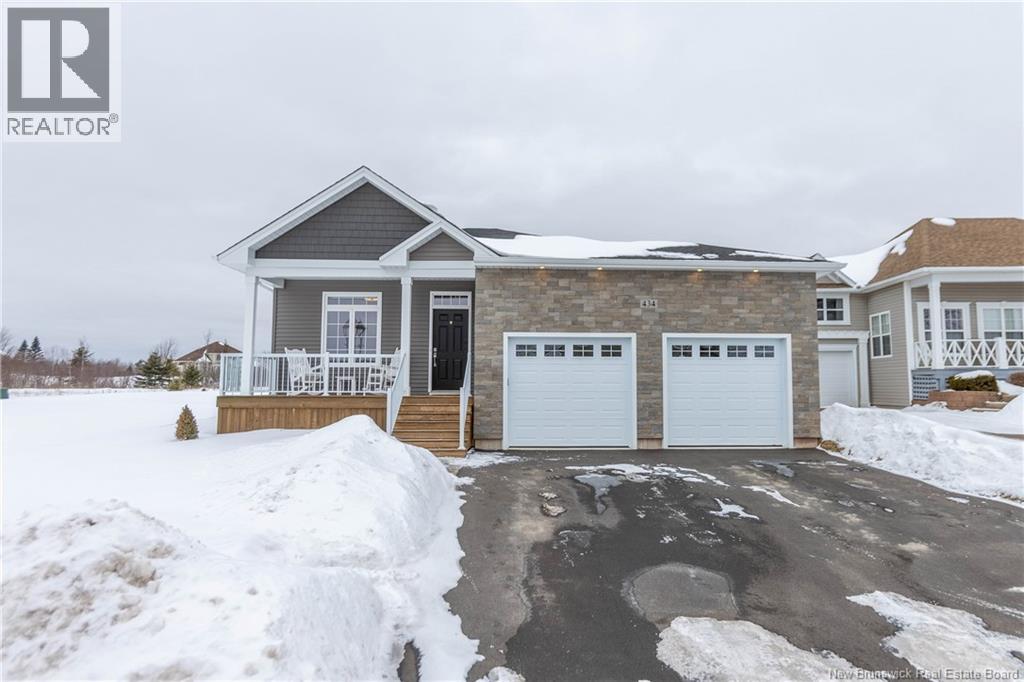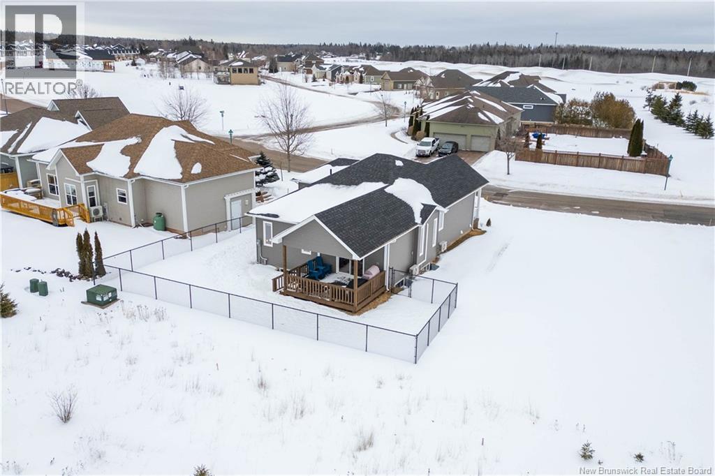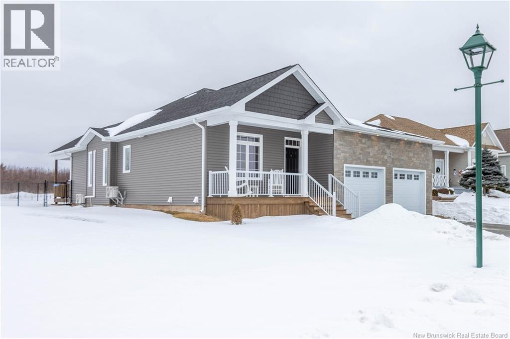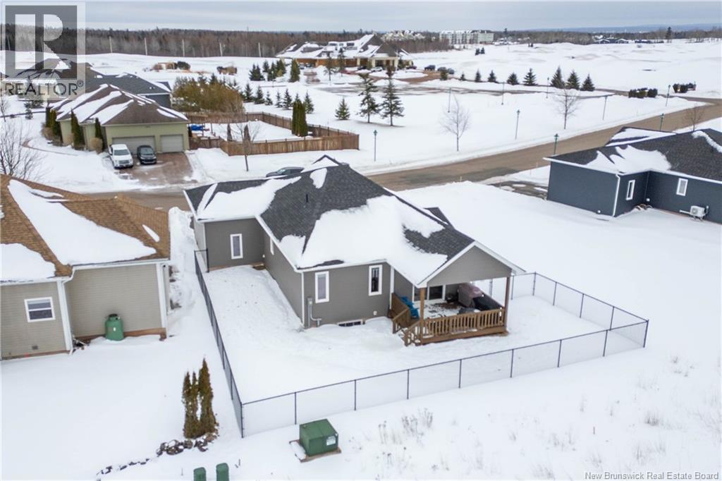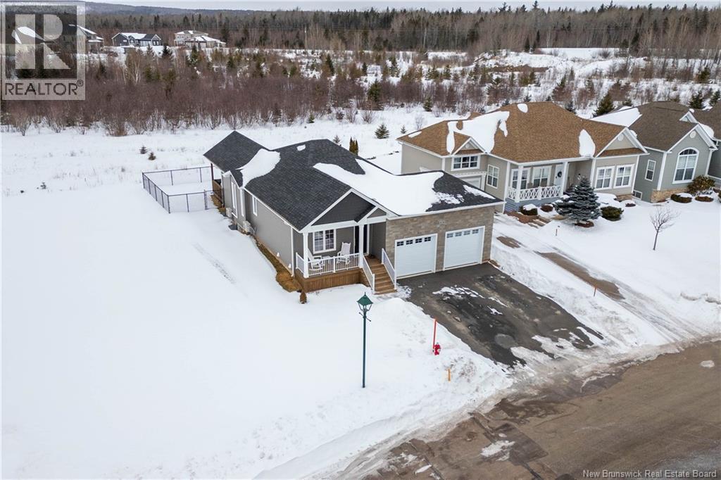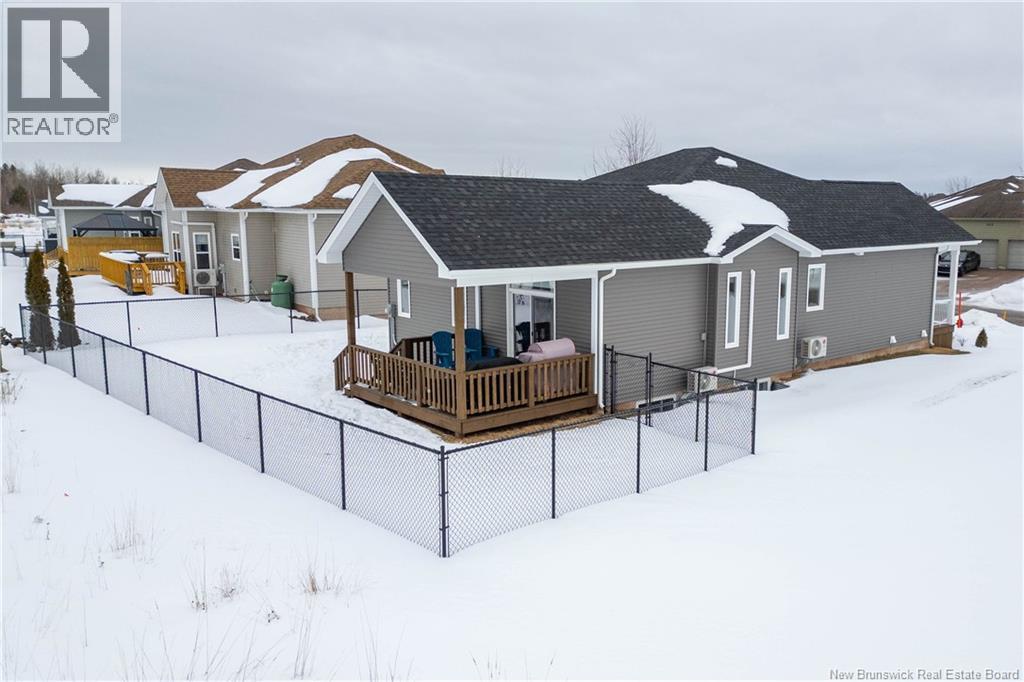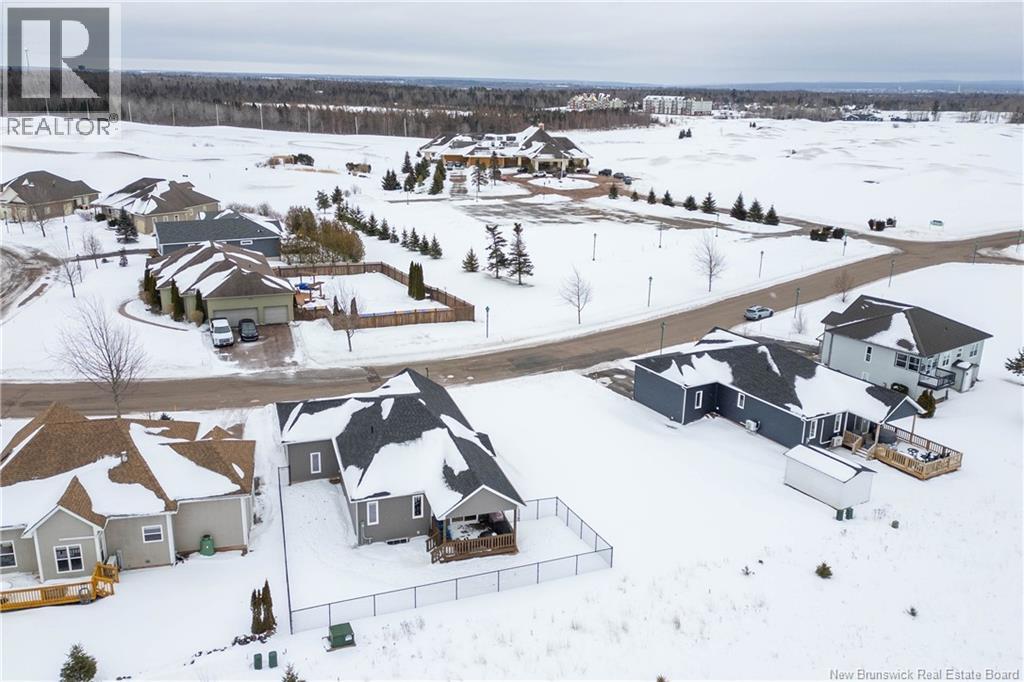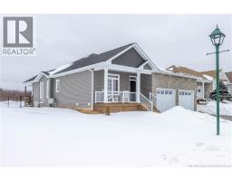 LUXURY DETACHED BUNGALOW IN PRESTIGIOUS ROYAL OAKS! This home is located in a gorgeous golfing community in Moncton, sitting a short stroll to the 18-hole Royal Oaks Golf Club. The front of the home features a double paved driveway, a lovely partial stone facade, and a 16 foot long covered verandah. Through the front door is a foyer leading through to the stunning open-concept main floor with 9 foot ceilings with a 10-foot tray ceiling, wide engineered hardwood flooring, and surrounded by windows. The kitchen is a dream with a large island, quartz countertops, and tiled backsplash. This overlooks the dining room with ductless heat pump, and the living room with patio doors to the backyard. The primary bedroom is tucked at the back with an adjoining 3pc ensuite bathroom and walk-in closet. There is also a large guest bedroom, a full 4pc bathroom, and a laundry room. The mudroom accesses the garage - 24'8x22'8 in size and with 13 foot ceilings. The lower level of the home is a blank slate with a rough-in for future bathroom, a storage room, potential for two additional bedrooms and a rec room. This level has a ductless heat pump as well. The backyard is private, featuring a 12x15 foot roof extension over the back deck, and is fully fenced in. This home has been further upgraded by the current owners - including upgraded stainless appliances (2024), a second ductless heat pump (2025), 166 feet of professionally installed backyard fencing (2025), and flower beds added (2025). (29530579)
