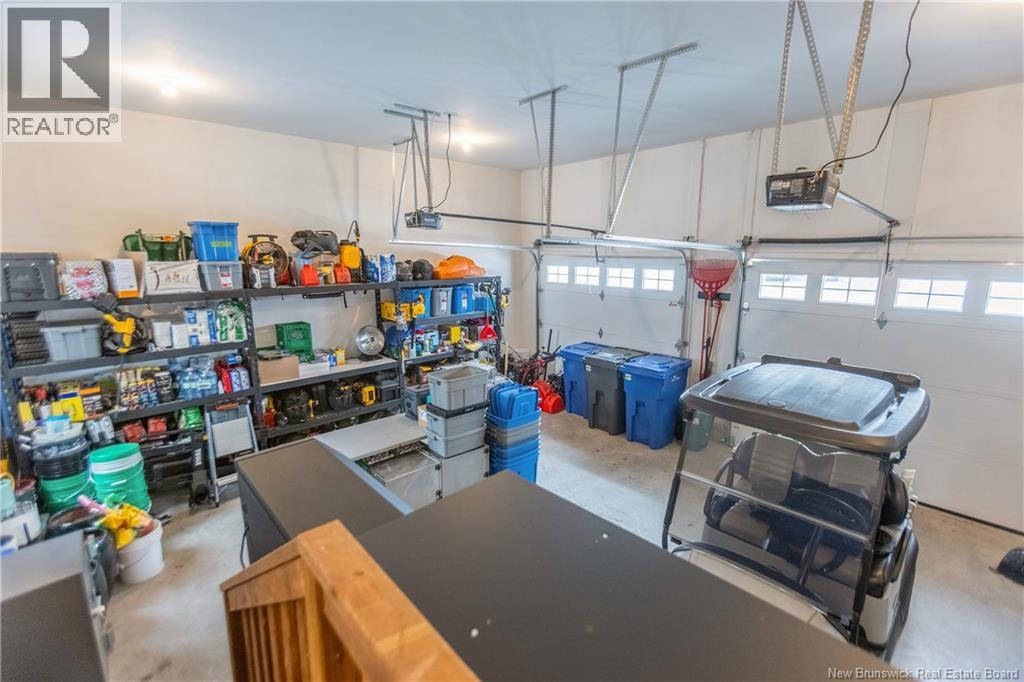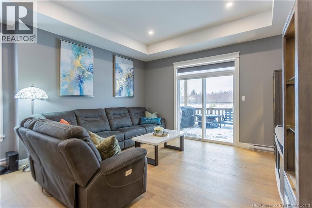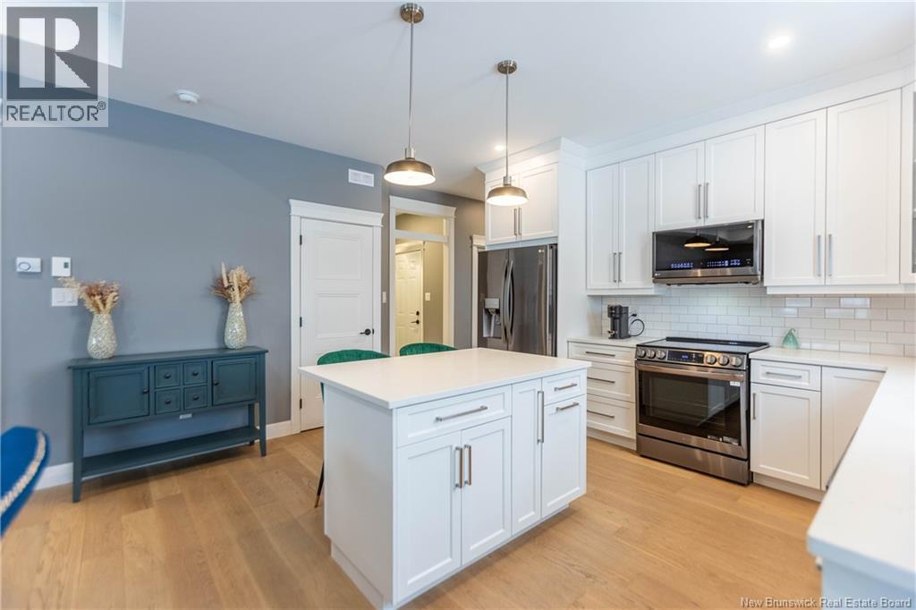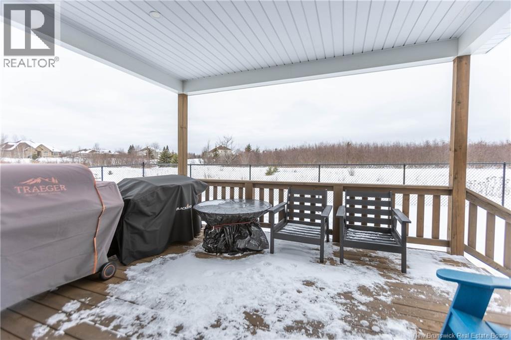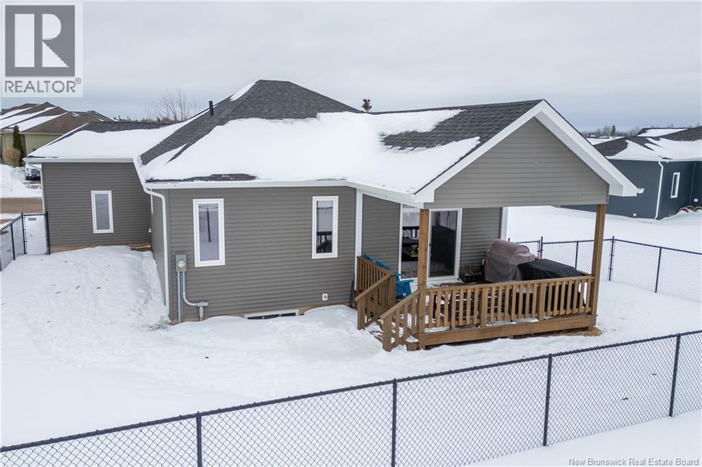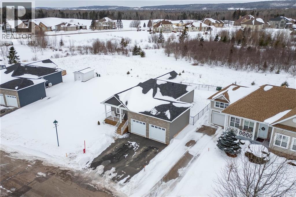 LUXURY DETACHED BUNGALOW IN PRESTIGIOUS ROYAL OAKS! This home is located in a gorgeous golfing community in Moncton, sitting a short stroll to the 18-hole Royal Oaks Golf Club. The front of the home features a double paved driveway, a lovely partial stone facade, and a 16 foot long covered verandah. Through the front door is a foyer leading through to the stunning open-concept main floor with 9 foot ceilings with a 10-foot tray ceiling, wide engineered hardwood flooring, and surrounded by windows. The kitchen is a dream with a large island, quartz countertops, and tiled backsplash. This overlooks the dining room with ductless heat pump, and the living room with patio doors to the backyard. The primary bedroom is tucked at the back with an adjoining 3pc ensuite bathroom and walk-in closet. There is also a large guest bedroom, a full 4pc bathroom, and a laundry room. The mudroom accesses the garage - 24'8x22'8 in size and with 13 foot ceilings. The lower level of the home is a blank slate with a rough-in for future bathroom, a storage room, potential for two additional bedrooms and a rec room. This level has a ductless heat pump as well. The backyard is private, featuring a 12x15 foot roof extension over the back deck, and is fully fenced in. This home has been further upgraded by the current owners - including upgraded stainless appliances (2024), a second ductless heat pump (2025), 166 feet of professionally installed backyard fencing (2025), and flower beds added (2025). (29530579)