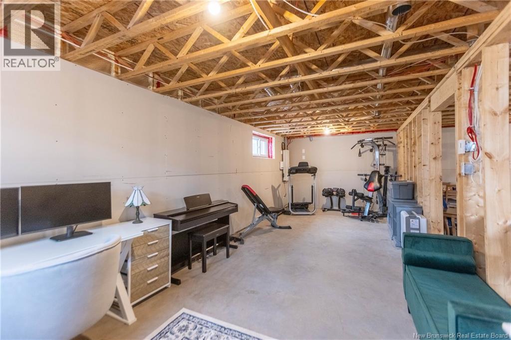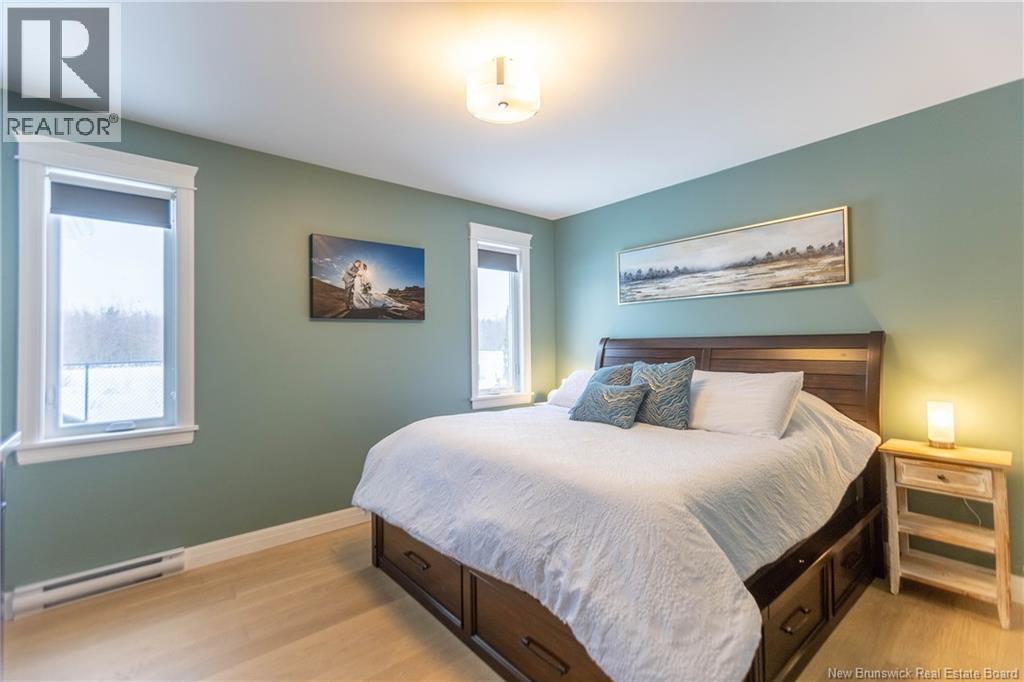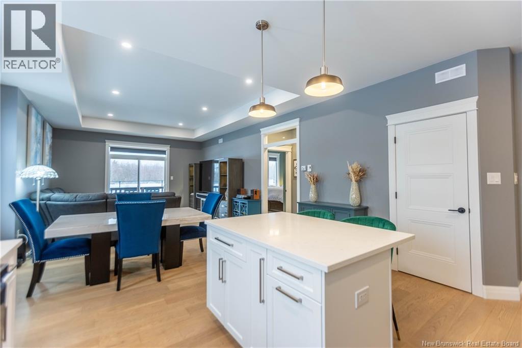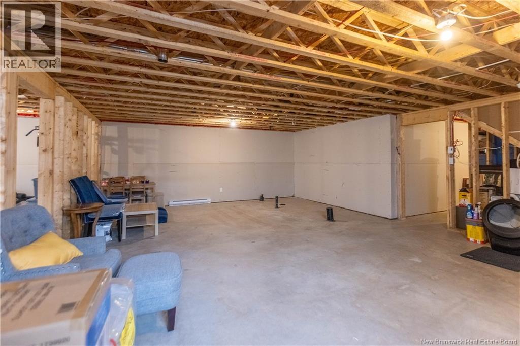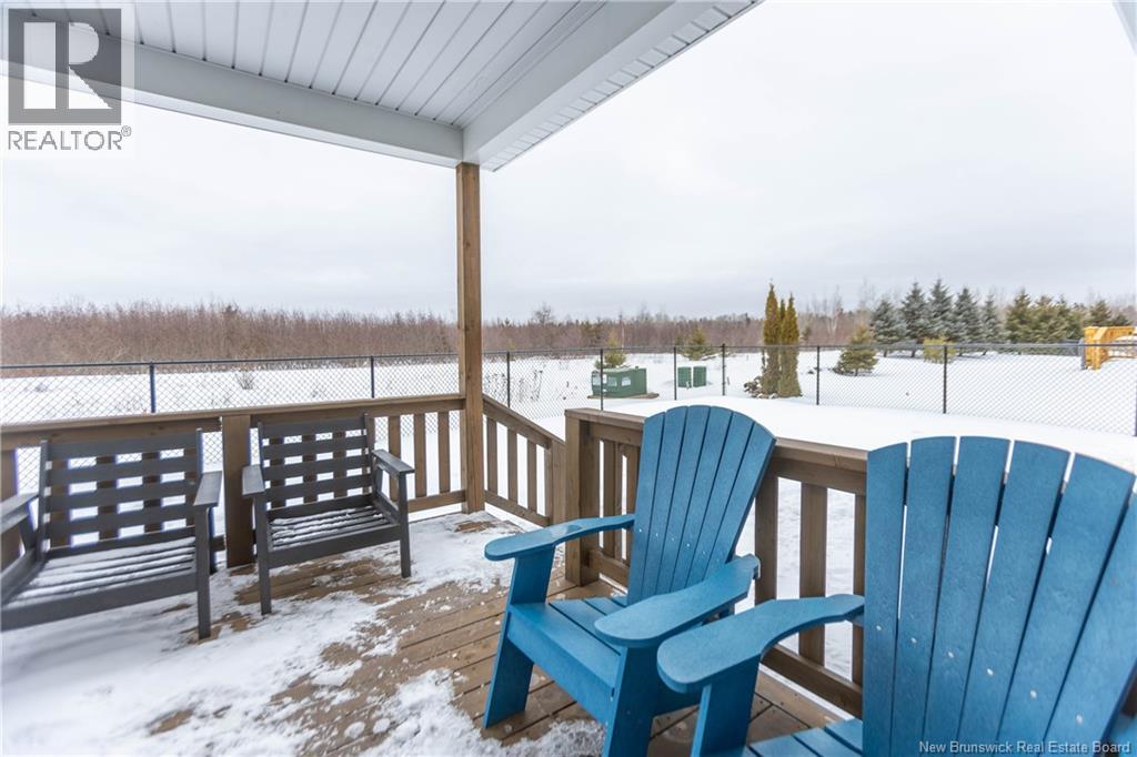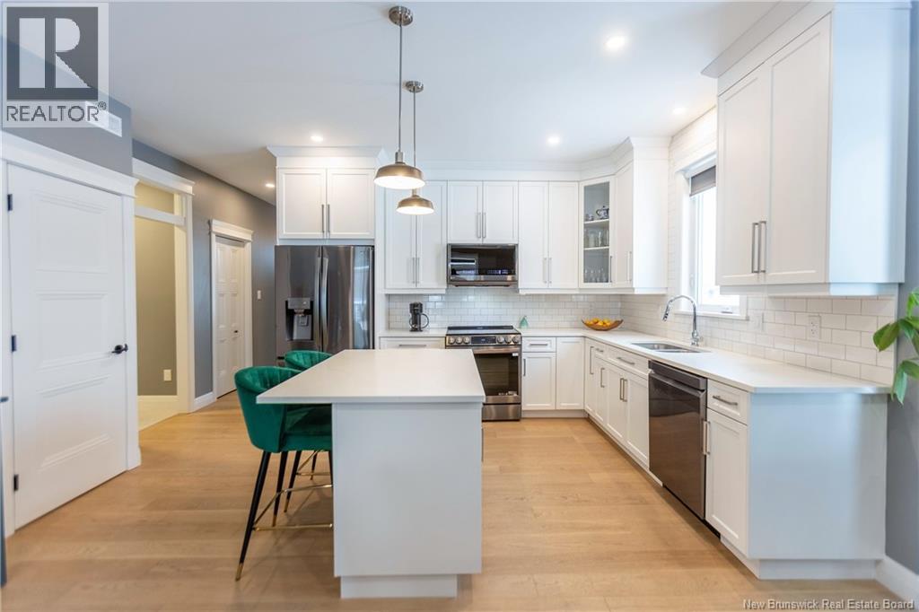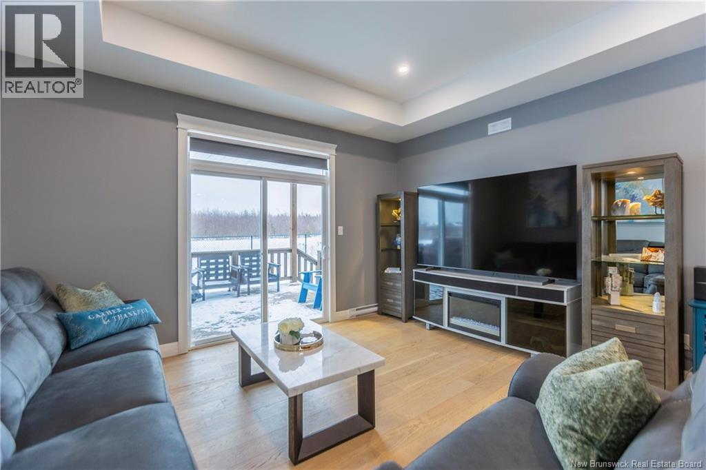 LUXURY DETACHED BUNGALOW IN PRESTIGIOUS ROYAL OAKS! This home is located in a gorgeous golfing community in Moncton, sitting a short stroll to the 18-hole Royal Oaks Golf Club. The front of the home features a double paved driveway, a lovely partial stone facade, and a 16 foot long covered verandah. Through the front door is a foyer leading through to the stunning open-concept main floor with 9 foot ceilings with a 10-foot tray ceiling, wide engineered hardwood flooring, and surrounded by windows. The kitchen is a dream with a large island, quartz countertops, and tiled backsplash. This overlooks the dining room with ductless heat pump, and the living room with patio doors to the backyard. The primary bedroom is tucked at the back with an adjoining 3pc ensuite bathroom and walk-in closet. There is also a large guest bedroom, a full 4pc bathroom, and a laundry room. The mudroom accesses the garage - 24'8x22'8 in size and with 13 foot ceilings. The lower level of the home is a blank slate with a rough-in for future bathroom, a storage room, potential for two additional bedrooms and a rec room. This level has a ductless heat pump as well. The backyard is private, featuring a 12x15 foot roof extension over the back deck, and is fully fenced in. This home has been further upgraded by the current owners - including upgraded stainless appliances (2024), a second ductless heat pump (2025), 166 feet of professionally installed backyard fencing (2025), and flower beds added (2025). (29530579)