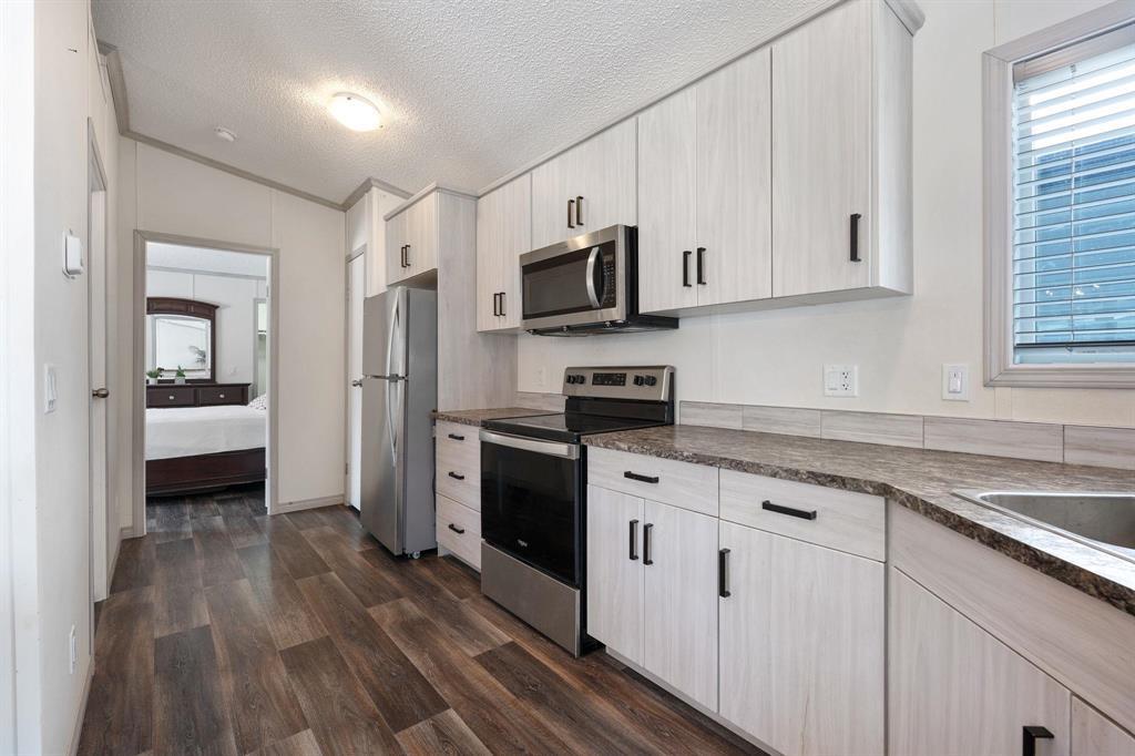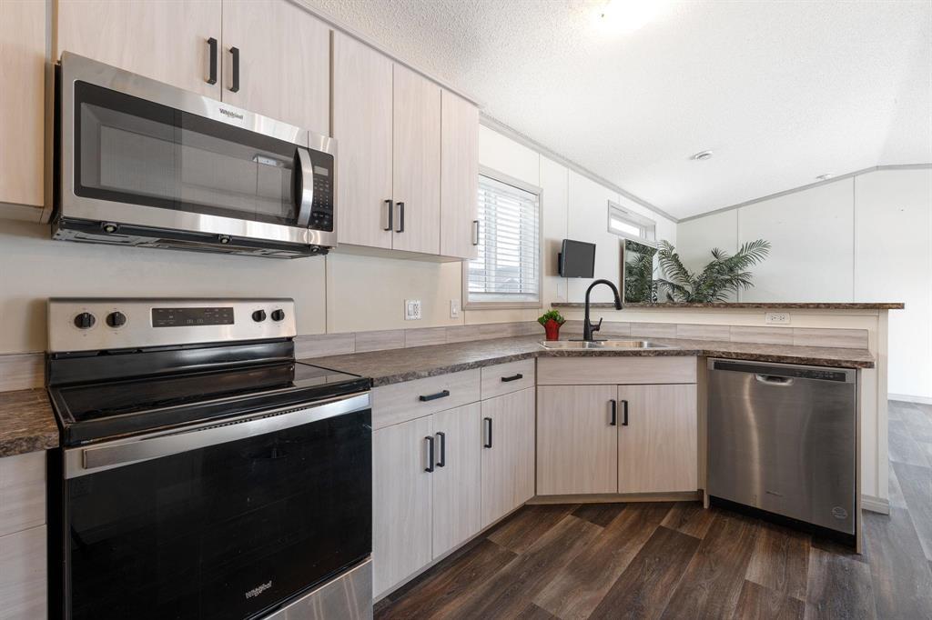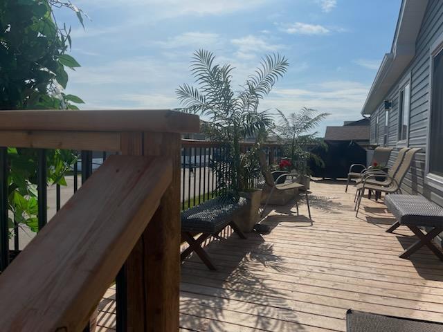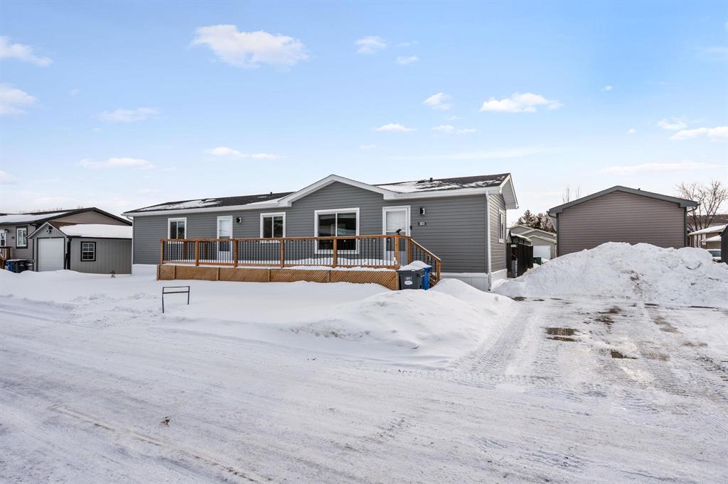 4E//Winnipeg/OTP March 4 @ 5pm. Welcome to this amazing 959 sq ft home offering comfort, style, and easy living all in one. Step inside to a bright, open-concept main area with vaulted ceilings that create an airy, spacious feel. The living room flows seamlessly into the dining area and expansive kitchen, complete with stainless steel appliances, abundant cabinetry and counter space, and a generous breakfast bar, perfect for entertaining or staying connected while preparing meals. The massive primary bedroom is a true retreat, featuring a walk-in closet and private 3-piece ensuite with glass shower doors. A well-sized second bedroom, full 4-piece bathroom with one-piece tub surround, and convenient laundry/mudroom with front-loading washer and dryer plus deep freezer add to the home s thoughtful layout. Outside, enjoy your large front deck overlooking the grassy yard, along with a paved parking pad for two vehicles. Located in a friendly neighbourhood with a scenic river walking path, community firepit area, and close to shopping, restaurants, and public transit. Lot rent is $525 plus $51.10 city license fee ($576.10/month total), including garbage pickup and main street snow removal. (231999668)