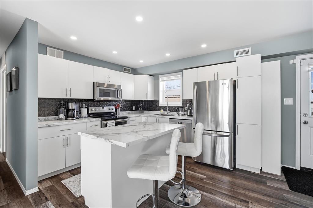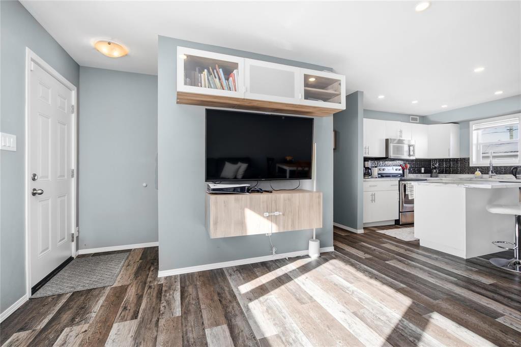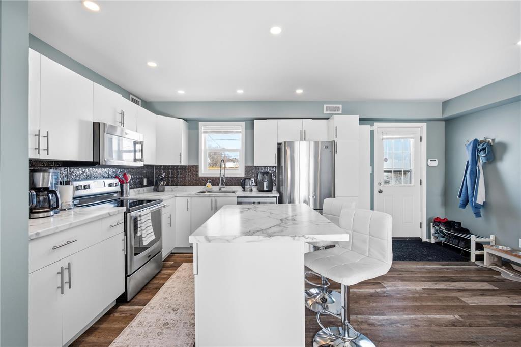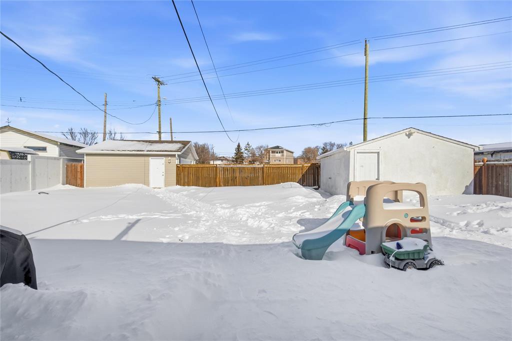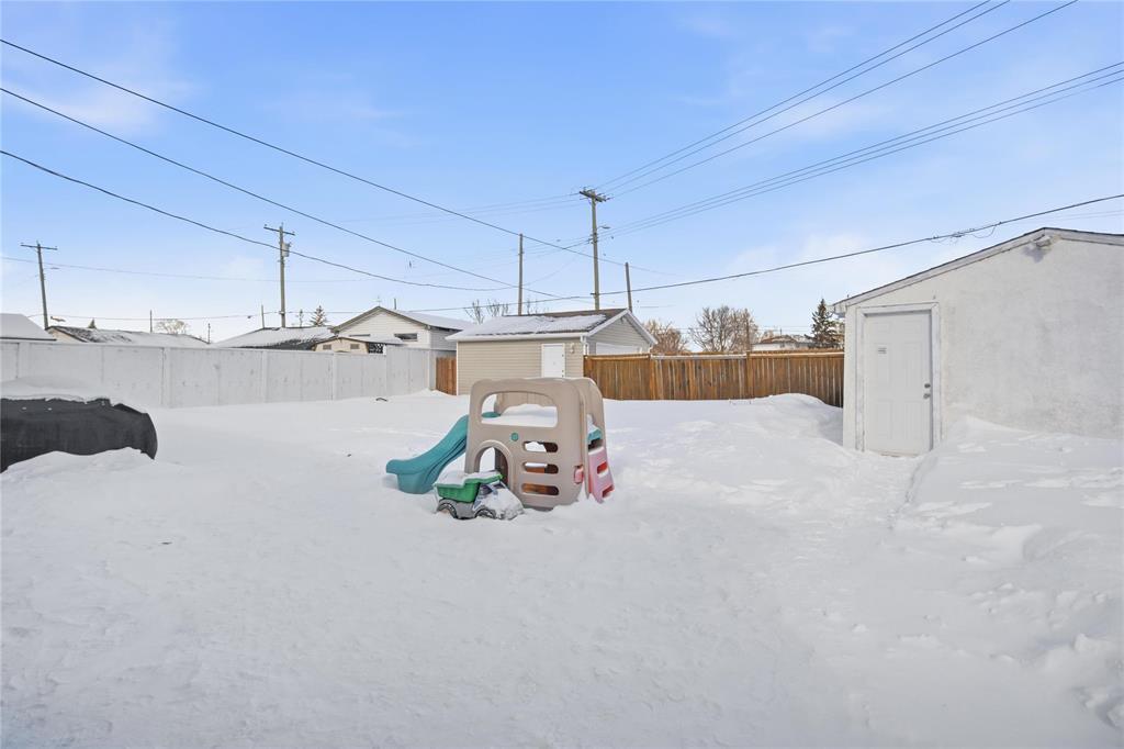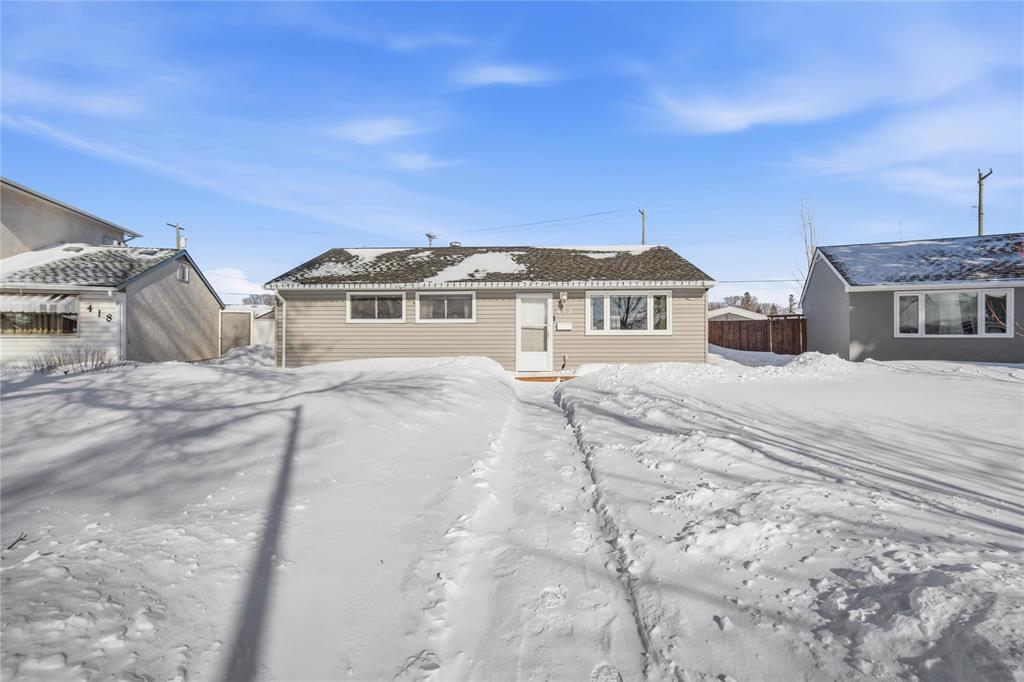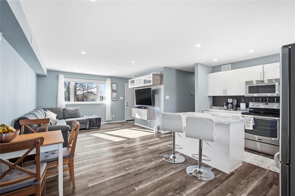 3B//Winnipeg/S/S 2/26 OTP 3/4. Open House 2/28 1-3 PM. What a unique property! Come and enjoy a fresh spin on a solid family or starter home. Are you looking to downsize? This could be the one. One-level living at it's finest, 919 sq ft bungalow offering 3 bedrooms, open-concept living-dining-kitchen, and tasteful renovations throughout including a new kitchen with stainless appliances, ample cupboard space and an island for optimal prep space. Tastfully upgraded bathroom, nice vanity and shower surround. Larger updates include windows, mechanical, among other recent touches, like washer and dryer. Sitting on a rare, spacious 48' x 173' yard with no rear neighbours. HUGE BONUS: Two garages! one double (22X20) and one single (20X14). Schools (all levels), shopping and amenities along Regent and Nairn are close by. Great opportunity in a welcoming community this home is move-in ready. Book your showing today, this home won't last long. (231999784)