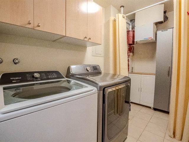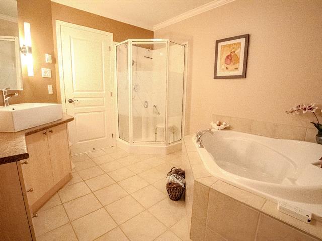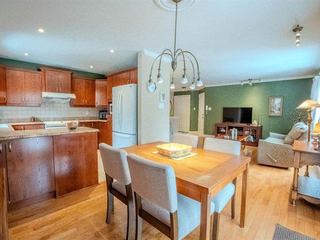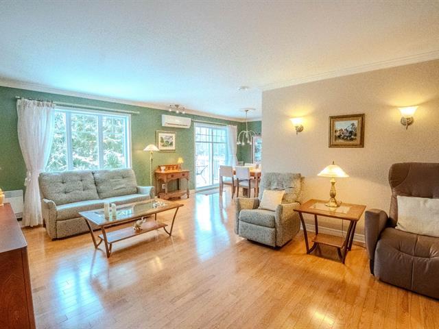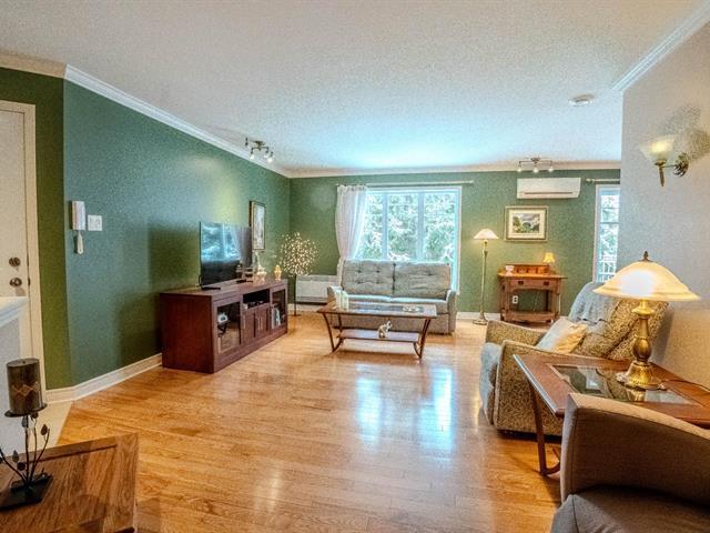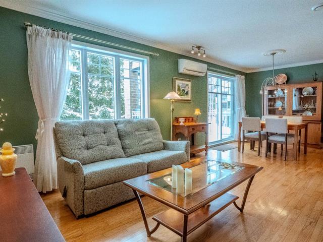 Beautiful corner unit condo, move-in condition, panoramic view, peaceful wooded and desirable area of Pincourt on a quiet street, excellent location steps to the parc,cycling path, shops, stores, pharmacies, banks, SAQ, Tim Horton, restaurants, golf, 15 minutes from Dorval airport, train & HWY 20. Beautiful hardwood floors, open concept living room/dining room, crown moldings, functional kitchen with window, newer counter, double sink and spotlights, bathroom with stand up shower & bathtub, spacious laundry room, master with large walk-in closet, two entrances, 2 parking spaces, storage, large balcony with mosquito nets, A/C & Heat Pump (54363740)