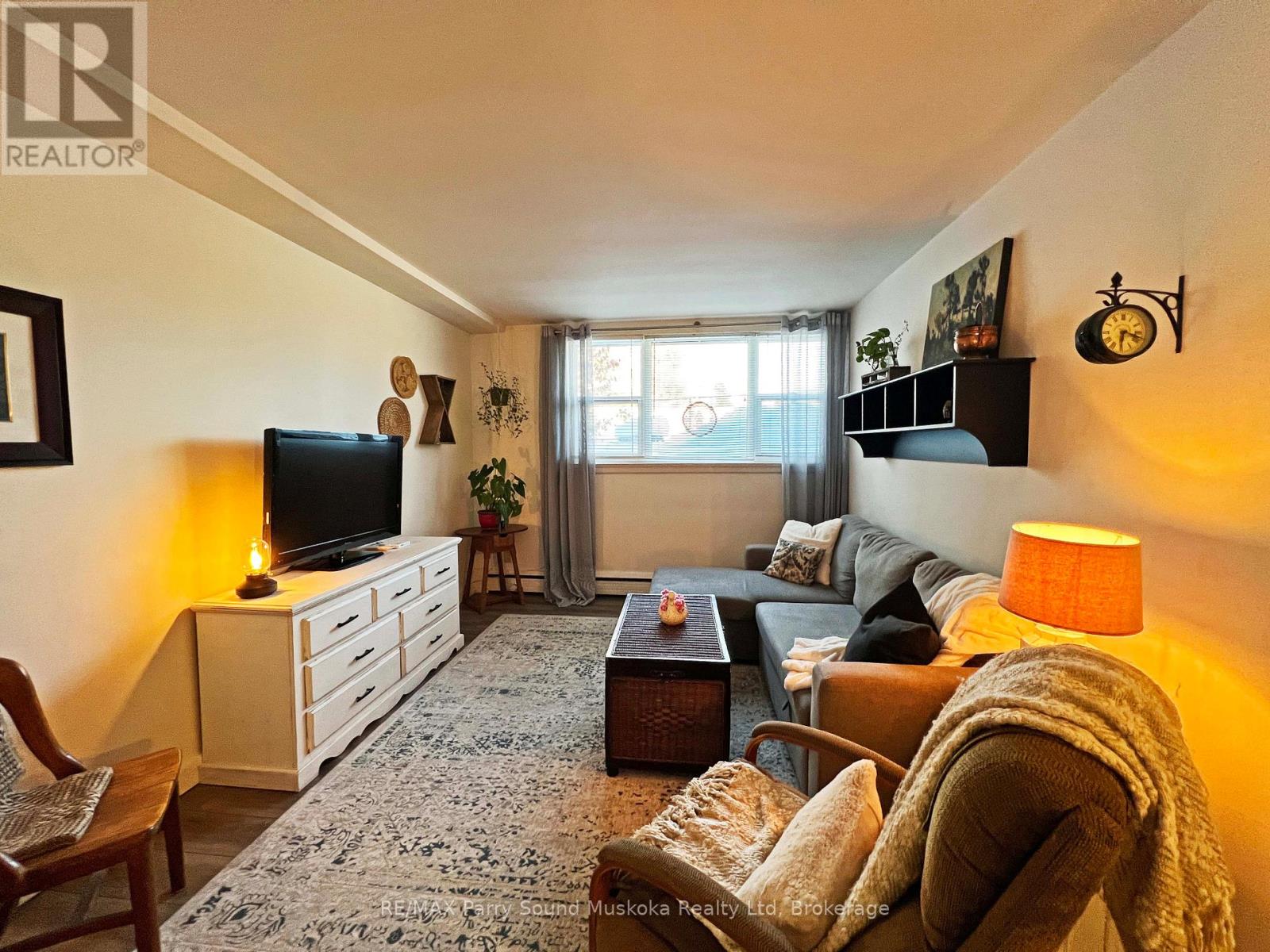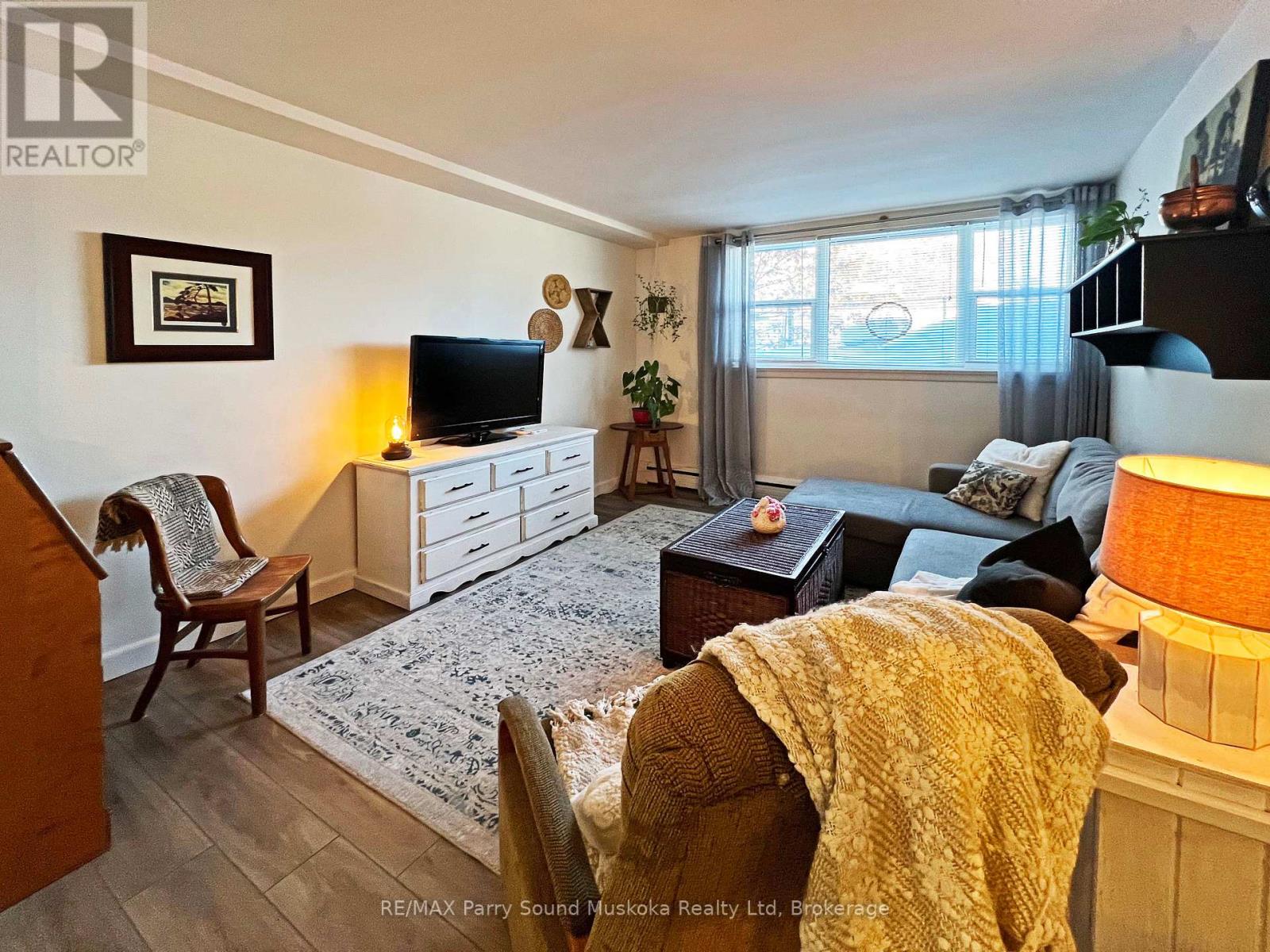 Beautifully Updated 2 bedroom first level condo, Large naturally bright windows, Featuring upgraded modern Kitchen, Updated 4 piece bath with new vanity & low flush toilet, Easy care laminate floors throughout, (only allowed on this level), Ideal layout opens from the the foyer to an open & bright living room, Separate dining area, Fully equipped kitchen boasts abundance of cabinetry & storage, New sink & countertop, Primary bedroom is large enough for a king size bed, double closets, 2nd bedroom offers closet & fold down desk, Ensuite storage room, Just a few steps from the main door and to the laundry room, Economical living - Low taxes, Condo fees include Heat, water & sewer, Walking distance to downtown Parry Sound, Shopping, Georgian Bay Beach & fitness trail! Home Sweet Home! (42215223)