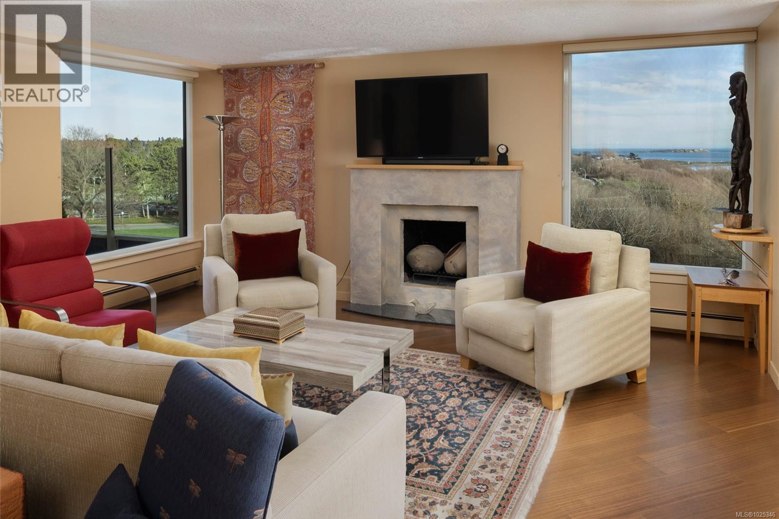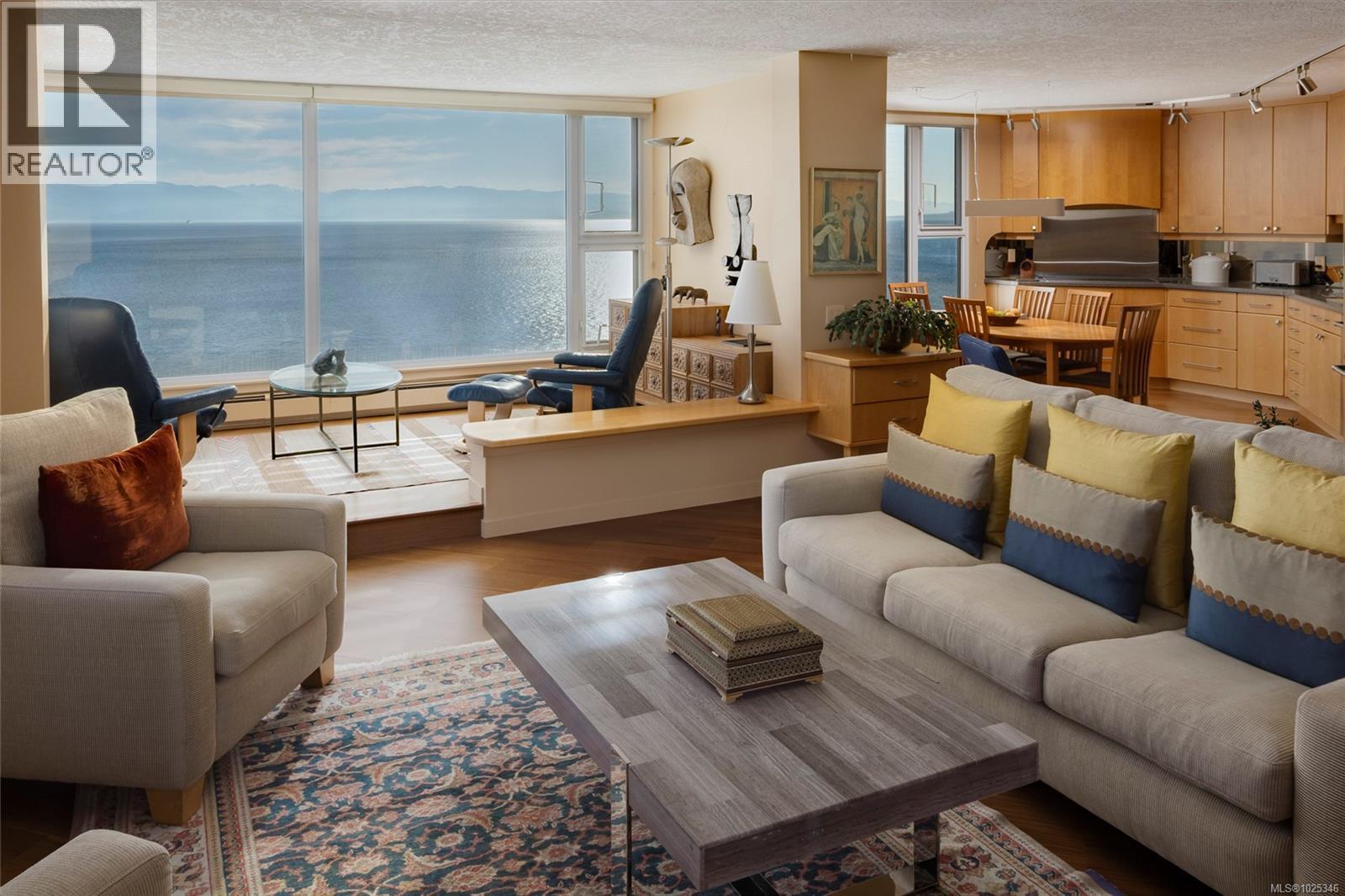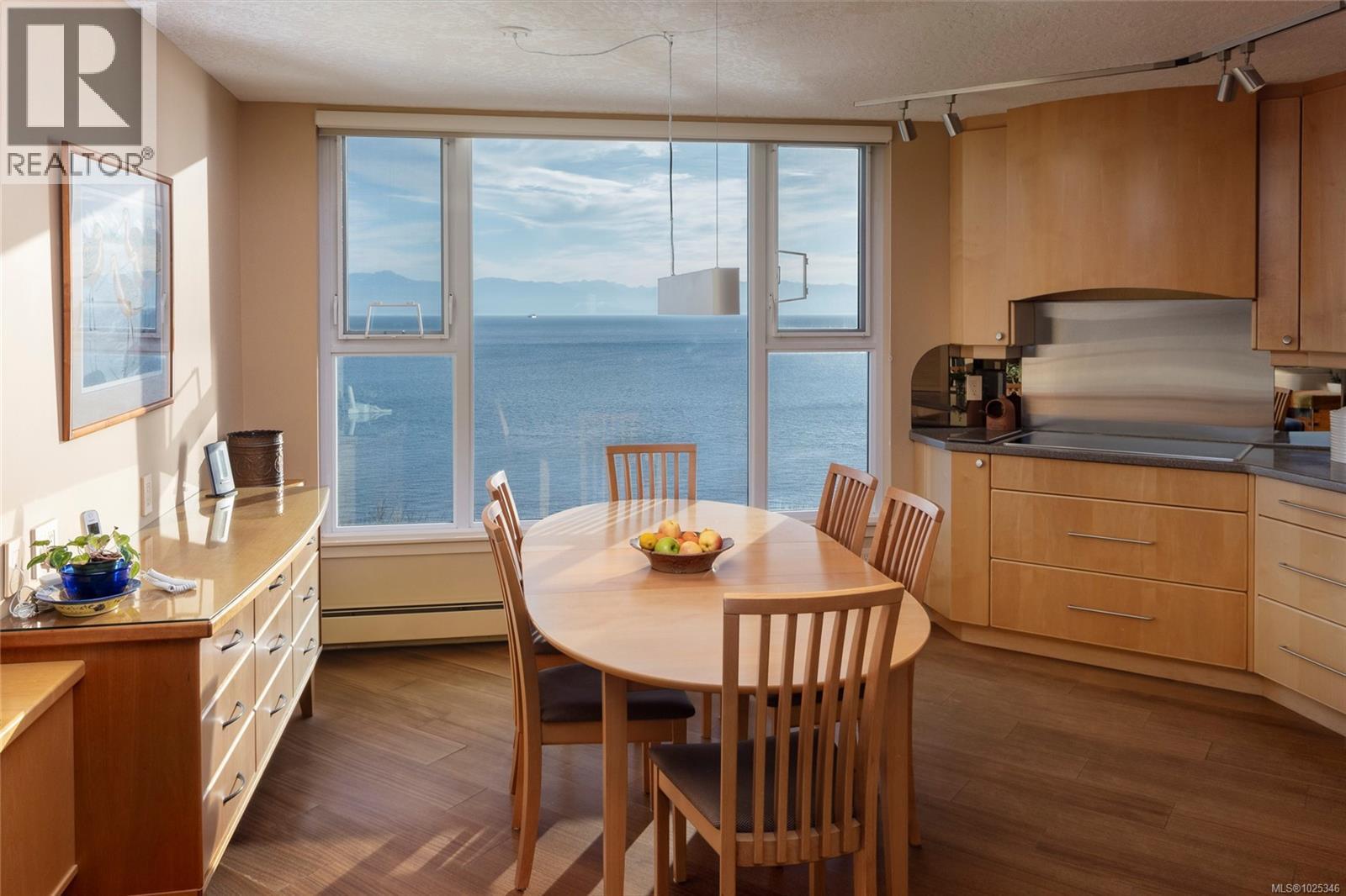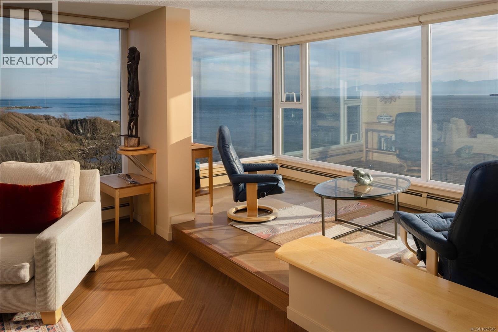 Positioned along Victoria’s iconic oceanfront Dallas Road, this over-2,000 sq ft, southwest-facing penthouse commands sweeping water, mountain, and park views. Just steps from Beacon Hill Park, this beautifully maintained, move-in ready home offers generous light-filled rooms, three bedrooms, including one with custom built-in partner desks, an abundance of custom cabinetry and millwork, and an expansive deck ideal for alfresco dining. Imagine entertaining guests against a backdrop of endless blue horizons or simply taking in the daily splendour of breathtaking sunrises and sunsets. Located in a steel and concrete building amidst beautifully landscaped grounds, enjoy strolls along the ocean, walks to James Bay or Cook Street Village for groceries, or downtown for theatre and events. Offered for the first time in nearly three decades, this is a rare opportunity to acquire a distinguished waterfront residence in one of Canada’s most sought-after coastal settings. (30422290)