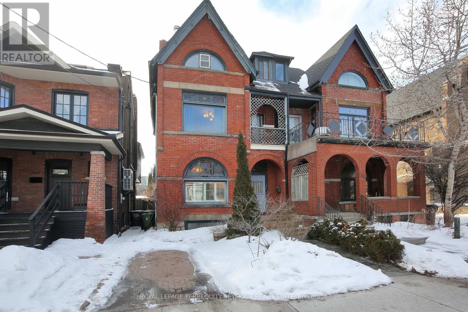 Timeless Character in the Heart of Bloor-Ossington. Welcome to this exceptional home in this vibrant neighbourhood. Offering 2,222 sq ft of finished above ground space, that blends classic architectural charm with thoughtful updates and outstanding versatility. The home has a glorious history as the birthplace of one of Canada's most renowned historians - Donald Creighton. As you enter, you'll be captivated by the stained glass, soaring 9-ft ceilings, exposed brick, crown mouldings, and high baseboards - timeless details that showcase the home's craftsmanship and character. The sun-filled kitchen offers a generous space for cooking, gathering, and entertaining. With four spacious bedrooms - the layout offers flexibility for families, guests, or home office space. The primary suite feels like a private escape. Expansive and filled with natural light from two skylights (one with a view of the CN Tower), it is bright and serene. A door opens to the west-facing flat roof, offering the potential for a private outdoor haven - imagine morning coffee in the sunshine or sunsets as the sky glows over the area. The finished basement features an in-law suite with a separate entrance, presenting excellent potential for extended family living. The basement bathroom offers an opportunity for updating and personalization. Freshly painted throughout and new broadloom on the third floor, the home is in move-in condition - allowing you to settle in and enjoy immediately. Passers by repeatedly compliment the beautiful front garden. A west-facing backyard, is ideal for enjoying the spectacular garden filled with beautiful plants. Rare front yard parking (legal) is convenient, but leave the car at home, as you are just steps from shops, cafés, restaurants, parks, and the Ossington Subway. This home offers the perfect balance of vibrant city living and classic residential charm. Seize this rare opportunity to own a character-filled home in one of the most dynamic and desirable areas. (42215774)