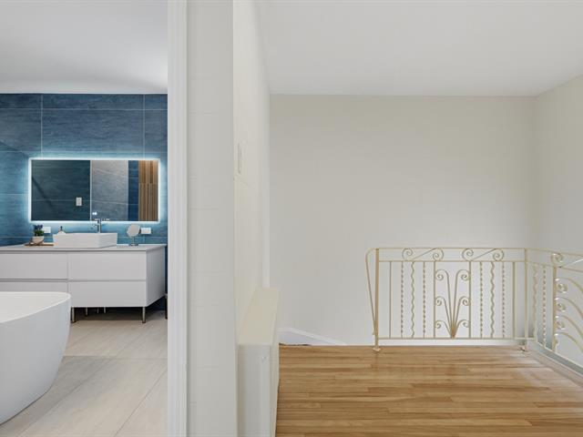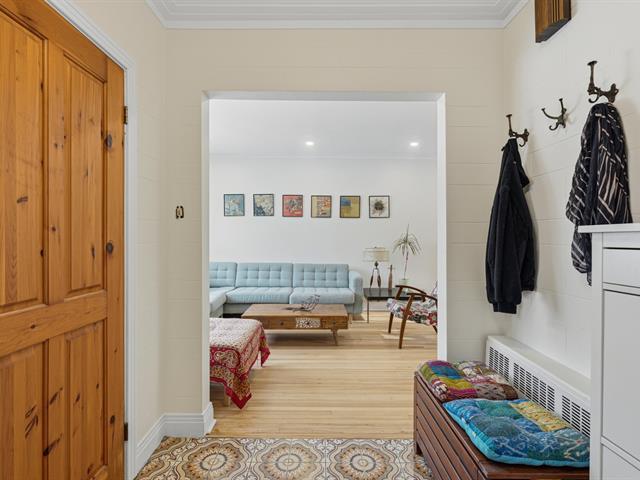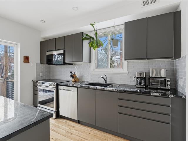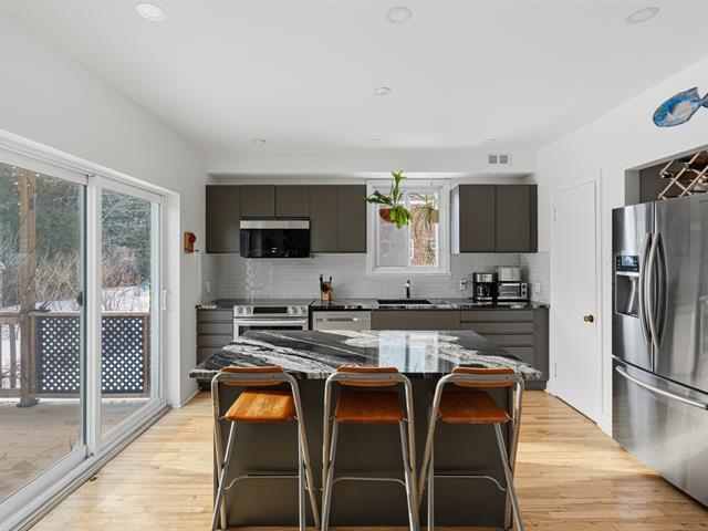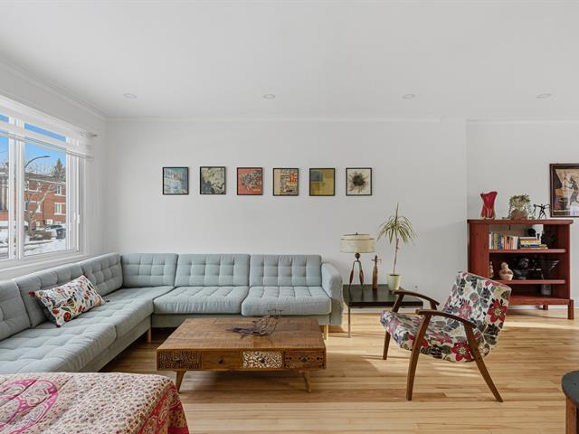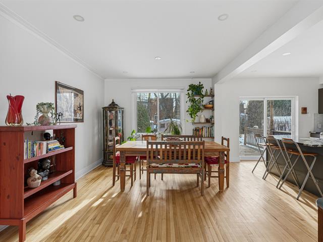 Located on the sunny side of a quiet tree-lined street in a charming neighborhood, this family home offers a comfortable and harmonious living environment. It features 4 bedrooms, warm open living spaces and many recent works incl. a contemporary kitchen opened to terrace and garden, a stylish new bathroom and the creation of a 4th bedroom with separate entry. Parking, perennial landscaping and fruit trees complete the property. A highly desired location in Old Saint-Laurent, close to shops, steps from Du Collège metro station, numerous parks, and schools from elementary to CEGEP, all with easy access to major transit routes. (54582114)