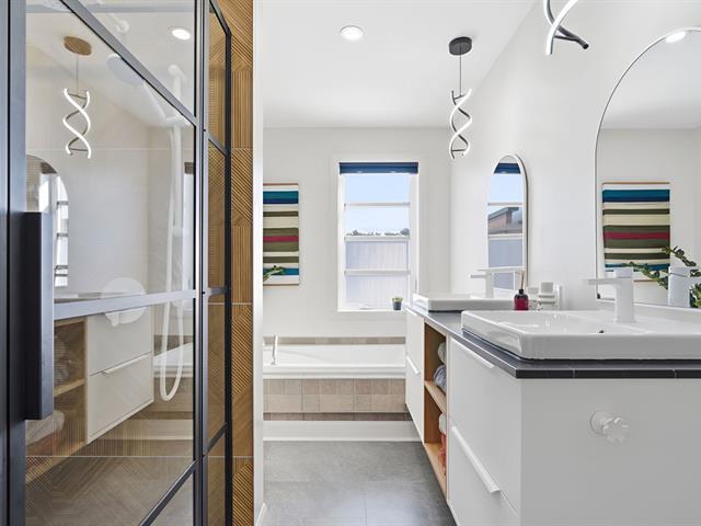 STUNNING MULTI-LEVEL HOME WITH ATTACHED 18 x 24 GARAGE, KEEPING YOUR VEHICLE WARM AND PROTECTED, AND OFFERING AN INCREDIBLE VIEW OF THE RIVER! This property features 3 bedrooms, ideal for a family or for setting up a home office. It also includes a powder room and a full bathroom equipped with a double vanity, ceramic shower, and podium bathtub. The living room with its cathedral ceiling creates an impressive sense of space and exceptional natural light. The kitchen stands out with its quartz countertops, adding both elegance and durability. A true turnkey property offering comfort, space, and quality of life! (55863436)