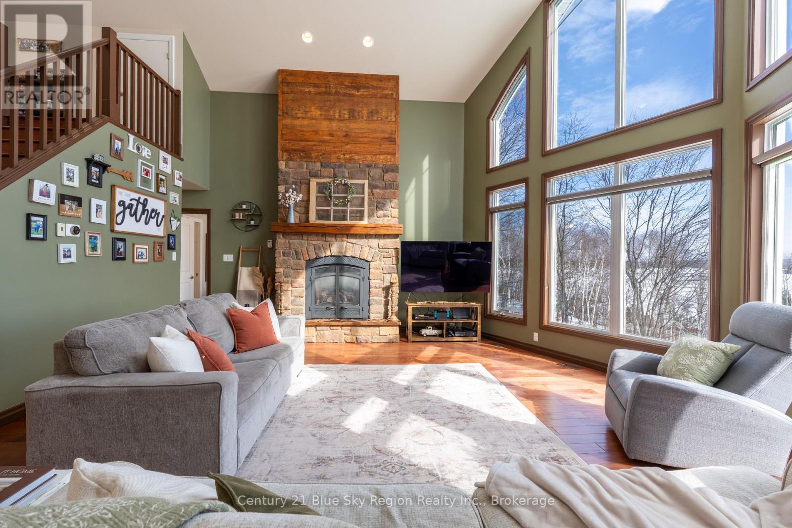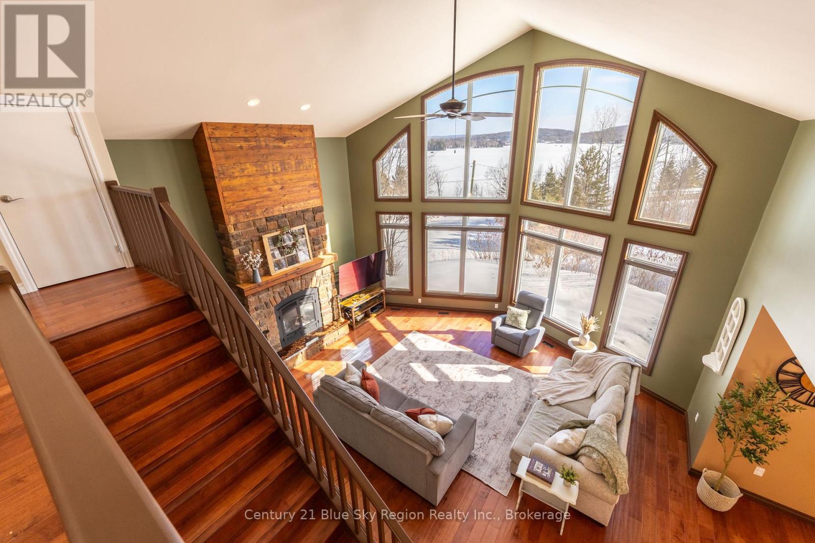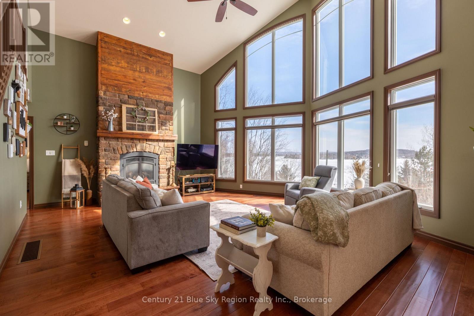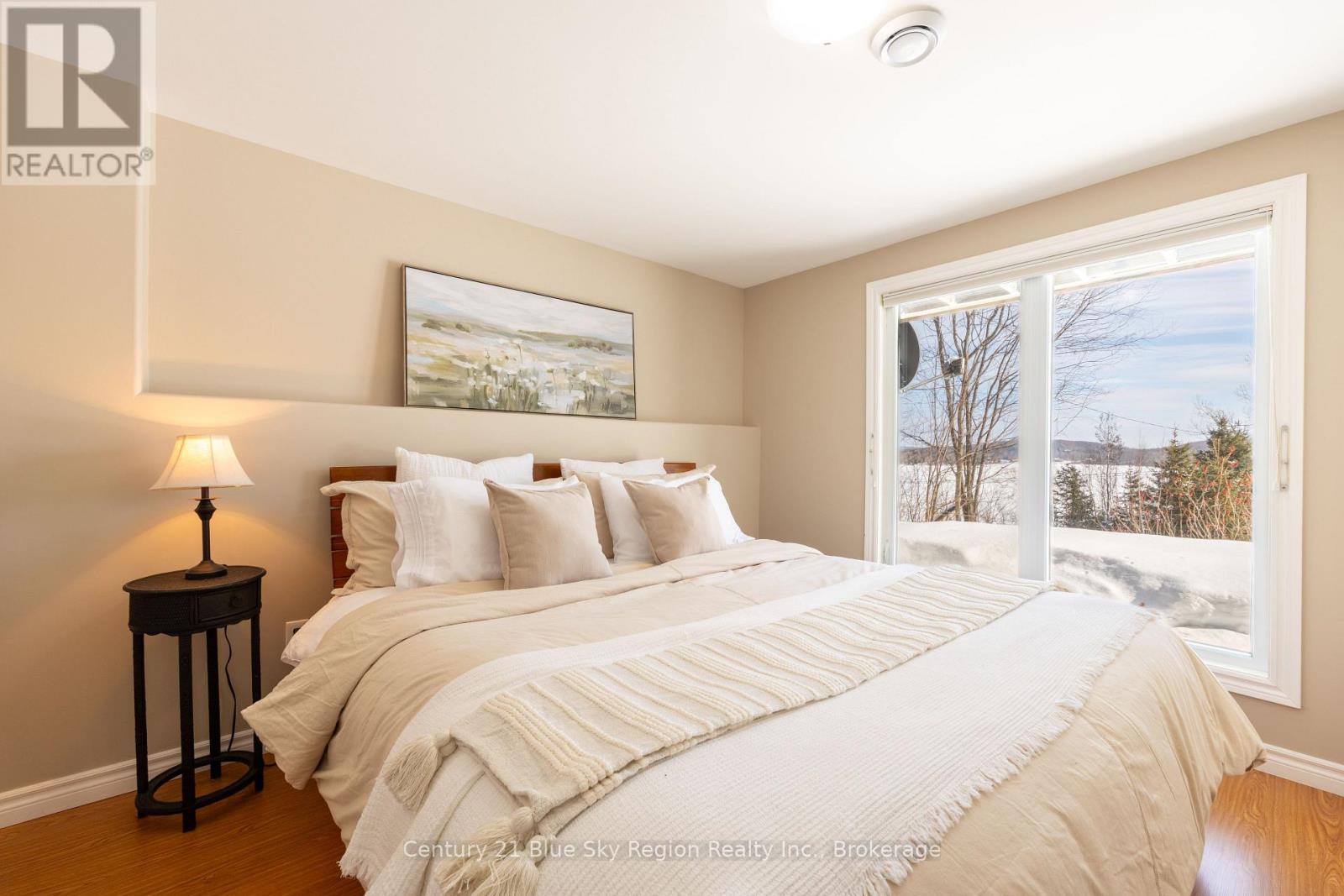 Welcome to this spectacular 2+2 bedroom, 2 bathroom country bungalow with dedicated in-law suite, stunning views of Lake Nosbonsing, detached oversized double car garage and so much more! Privately set, this home offers relaxing vibes from the moment you pull in, with exposed Canadian shield as you park, to lake views upon entry. The main floor offers a semi-open concept living area with 19' cathedral ceilings in the great room with a propane fireplace and engineered hardwood floors. The dining area has access to the wrap-around deck, ideal for BBQing or relaxing while taking in the peaceful views. Spacious kitchen with island and appliance package. Primary suite with 4pc main/ensuite and walk-in closet. There is an additional bedroom and access to the open loft area ideal for a home studio or getaway space. The basement is a full walkout and is accessed from an interior staircase with shared laundry, or from outside with its own parking area. An ideal in-law suite or room for a larger family with a kitchenette, dining room, large living room with a propane fireplace, and ample natural light. 2 large bedrooms and a 4pc bath with an accessible sit-in shower/tub. The detached 21' x 33' heated garage is a dream and features its own 2-piece bathroom. Situated minutes from the public beach and boat launch, medical centre, area schools, community centre, and so much more! If you are looking for an ideally set country property, look no further! (42216194)
