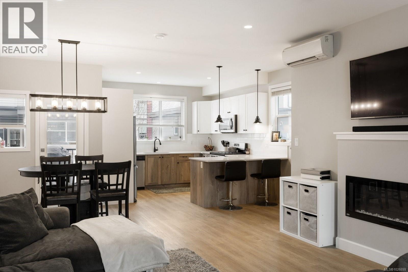 Bright corner-unit featuring 3 beds, 3 baths, + double garage, in the popular Luxton neighbourhood of Langford. This well-designed corner unit is perfect for families or first-time buyers. The entry level features an extended garage with plenty of room for storage, plus access to an easy-care, fully usable yard. The main level is filled with natural light and boasts a generous kitchen with eating area, and a cozy living room complete with a electric fireplace and access to a balcony ideal for relaxing or entertaining. Upstairs you’ll find three bedrooms, including a comfortable primary suite with walk-in closet and ensuite, along with two additional bedrooms, a full bathroom, and convenient laundry. Located just minutes from Happy Valley Elementary, parks, & transit, with easy access to all of Langford’s amenities (only 10 minutes away) & just 20 minutes to downtown Victoria. A fantastic opportunity for those entering the market or anyone seeking a low-maintenance place to call home. (30424111)