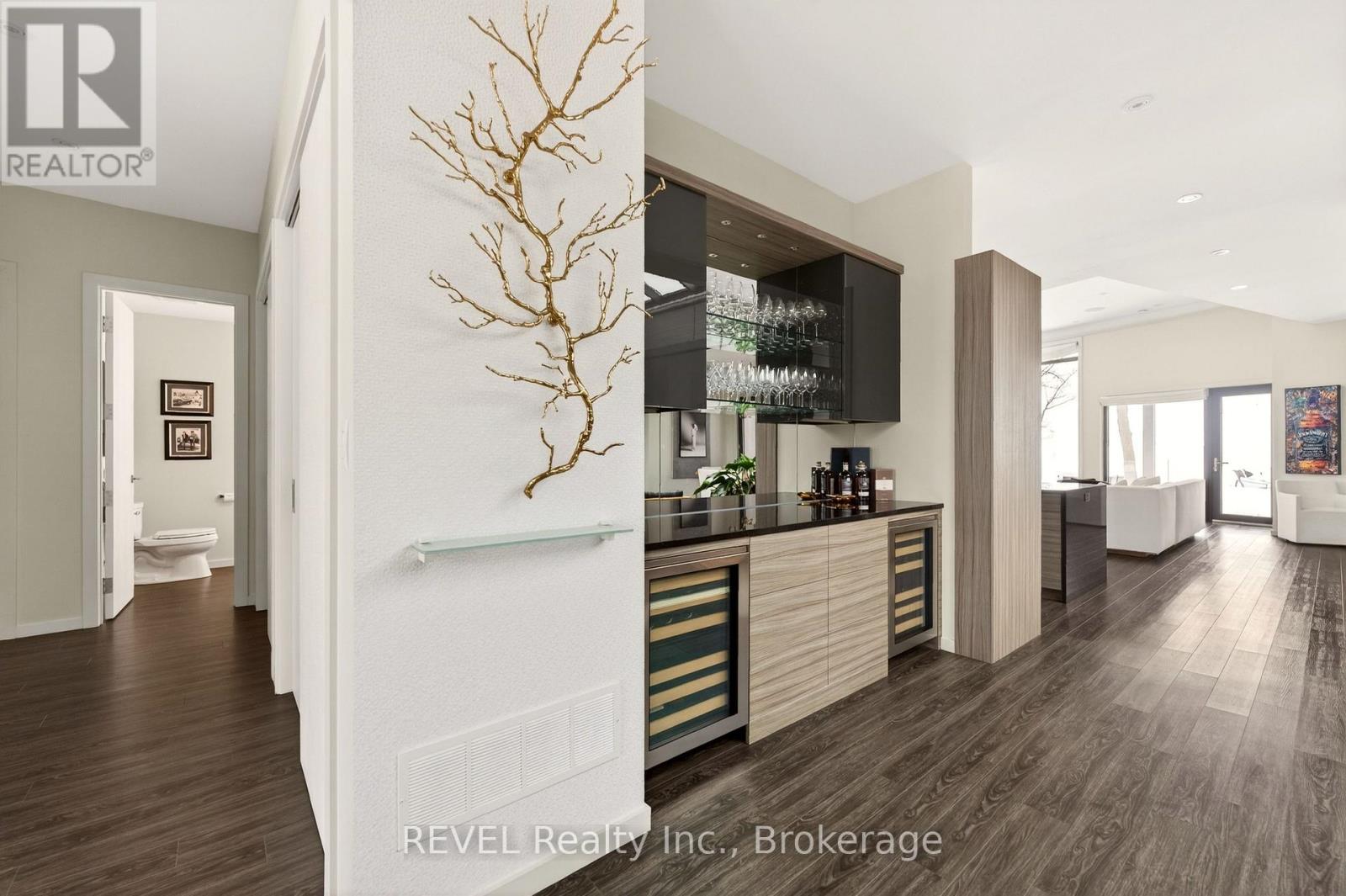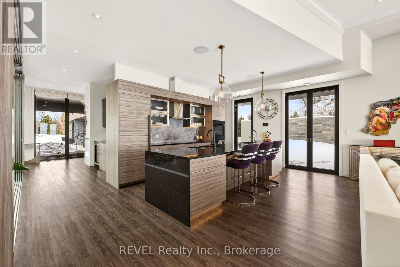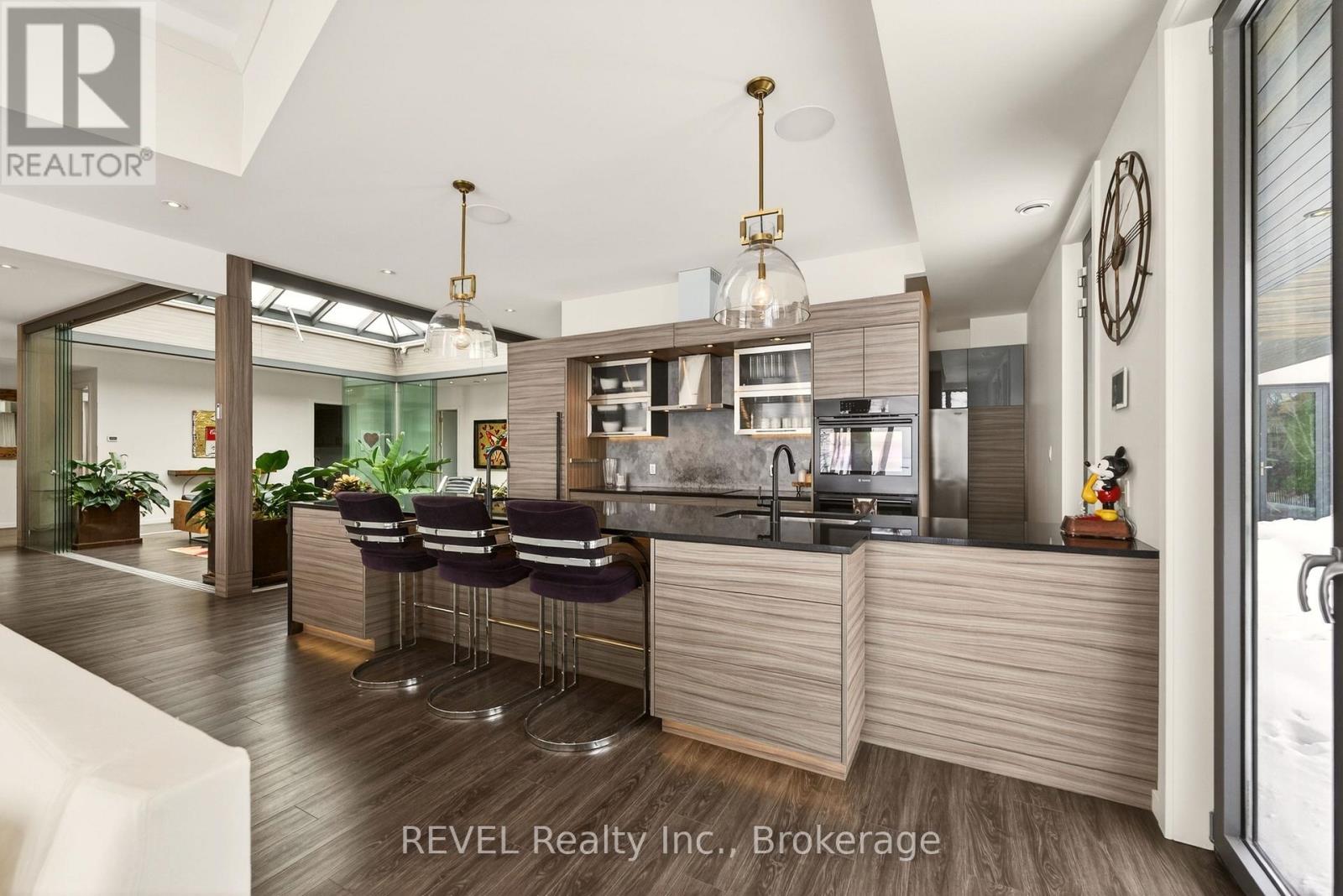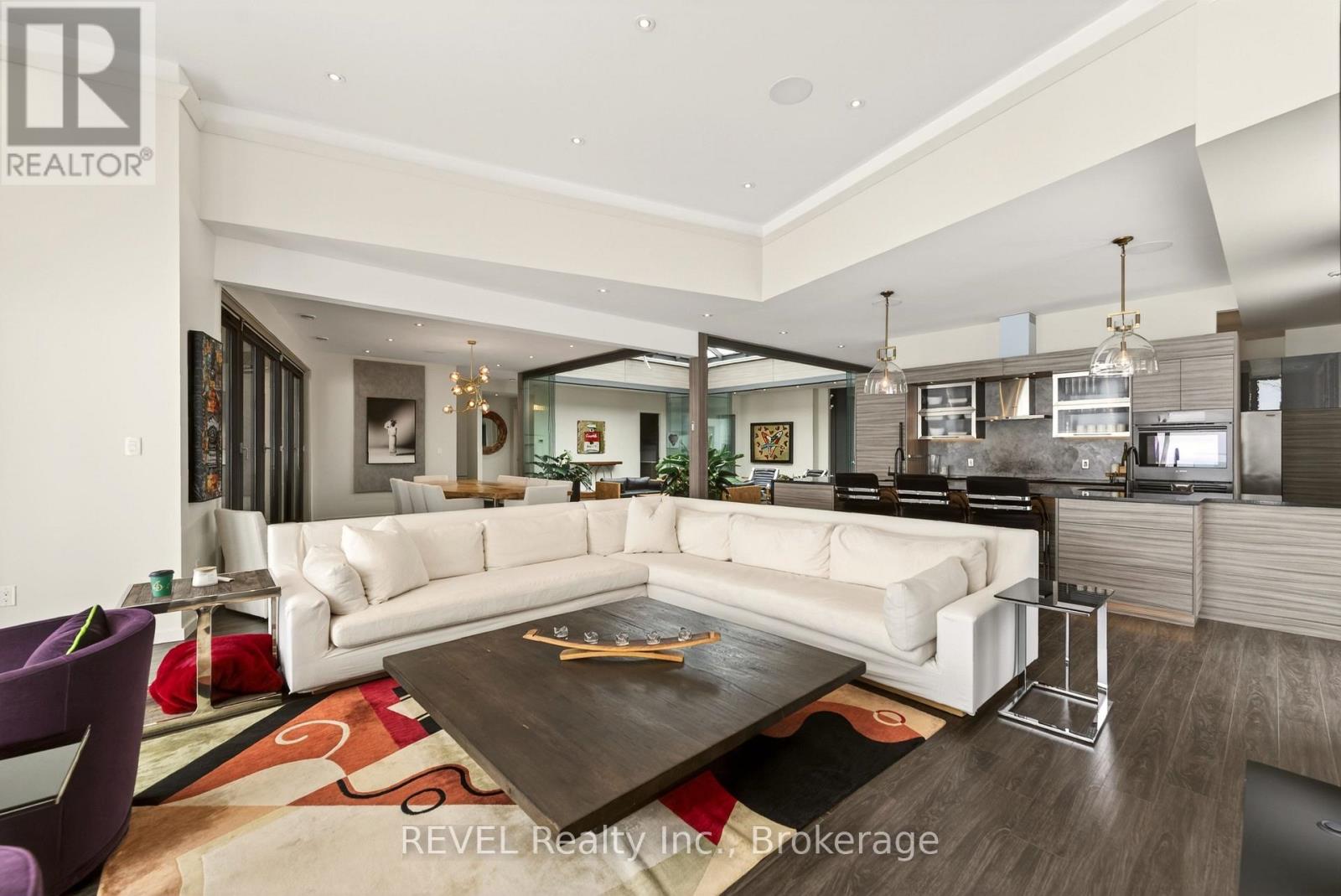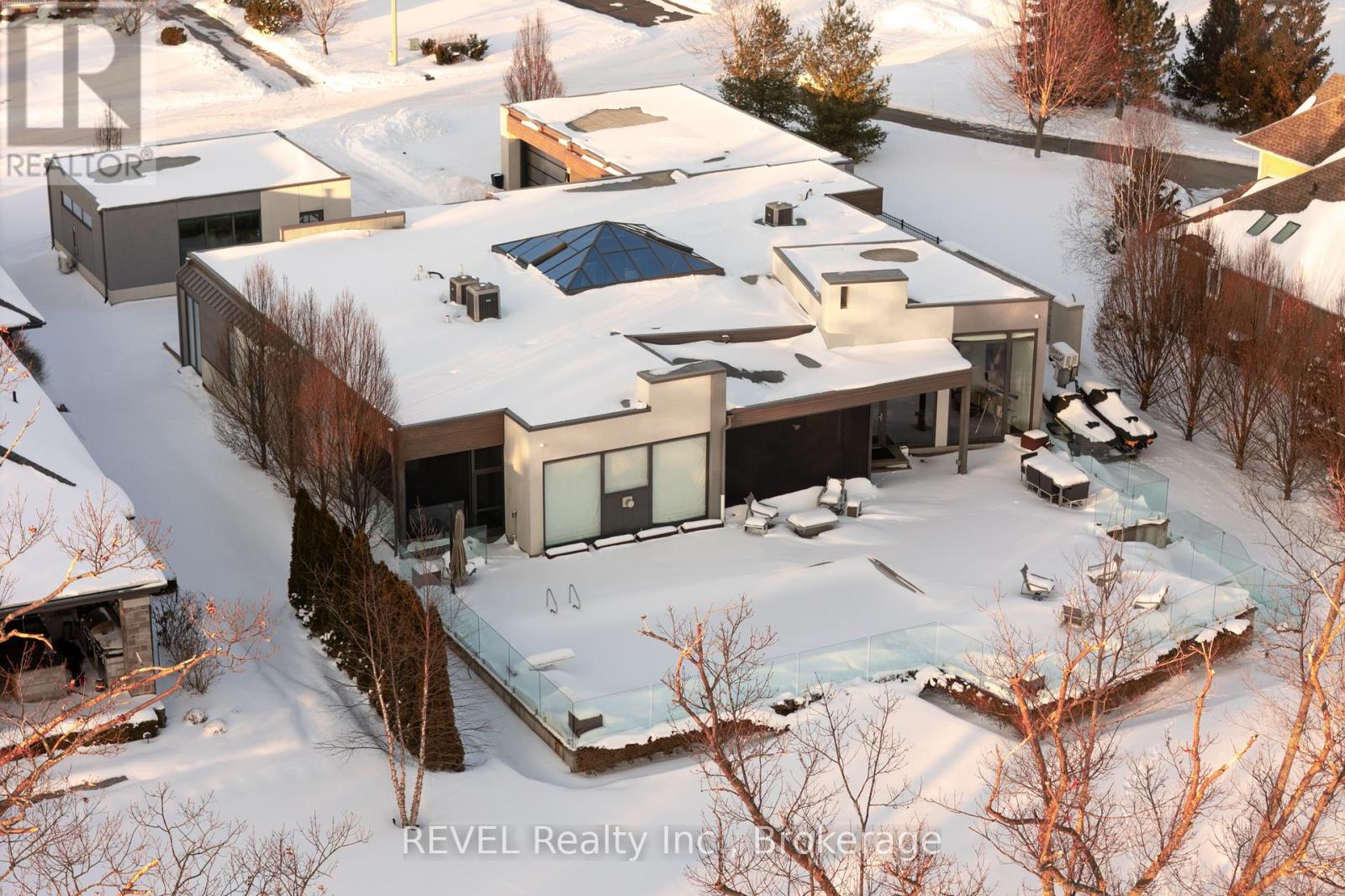 Unforgettable modern beachfront estate in the charming lakeside town of Ridgeway, offering 113ft of private Lake Erie shoreline and breathtaking panoramic water views. Designed as the ultimate family retreat or year-round luxury residence, this exceptional oversized bungalow blends refined architecture with effortless coastal living. The home features four expansive bedrooms, each with its own beautifully appointed ensuite and generous closet space. The primary suite is a true sanctuary, complete with a gas fireplace, multiple walk-out terraces, a spacious walk-in closet, and stunning lake views enjoyed from your bed, freestanding soaking tub, and glass shower. Thoughtfully designed for both everyday living and entertaining, the open-concept main living areas are complemented by a large butler's pantry, built-in bar, and seamless indoor-outdoor transitions, including a glass-enclosed atrium. Screened-in patios with gas heaters extend seasonal enjoyment. Custom details and designer finishes are showcased throughout, including Restoration Hardware lighting and premium imported German windows & doors. A main floor laundry room, mudroom entry, attached four-car garage, and separate detached two-car garage provide exceptional convenience and storage for vehicles, boats, and recreational equipment. Set on a substantial estate lot, the home is positioned well back from the road for privacy while maintaining ideal proximity to the lake. The grounds offer expansive green space alongside a private beach framed by an armour stone shoreline and professional landscaping. Outdoor living is unparalleled, featuring oversized aggregate patios with multiple lounging and dining zones, fireside gathering areas, a large saltwater inground pool with a hidden electric cover, and sleek glass railings that preserve unobstructed lake views. Waterfront ideal for kayaking, paddleboarding, and boating - and a nearby launch just steps away - this is luxury waterfront living at its finest. (42216359)