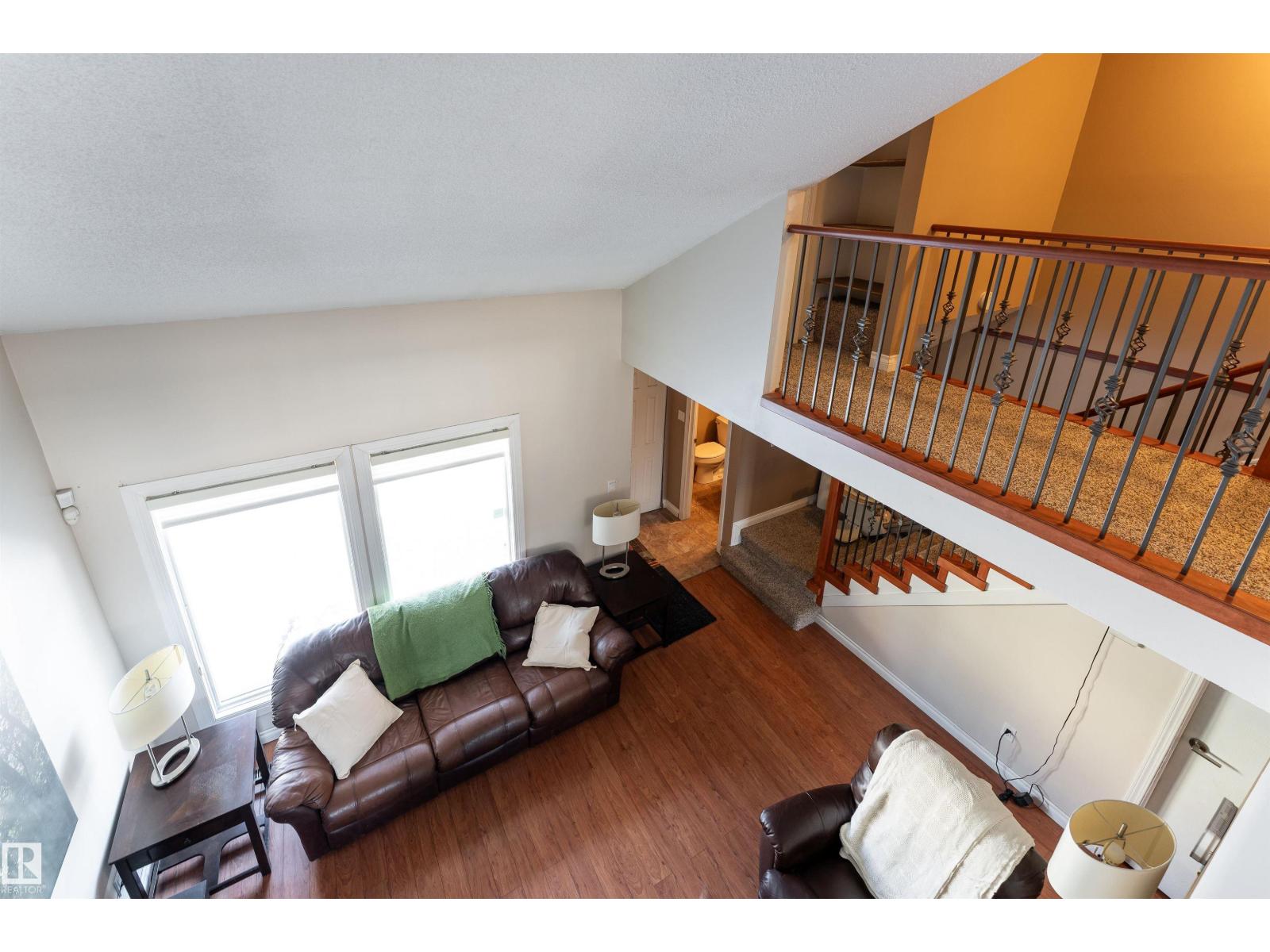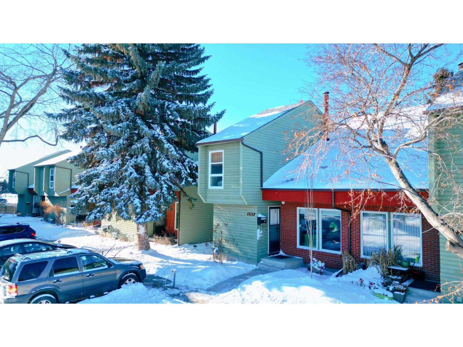 Stop searching and start packing because this uniquely designed 1,222 sq. ft. Hillview Crescent gem is the one you’ve been waiting for! The main floor features a grand living room with high vaulted ceilings and a cozy stone-surround wood fireplace. The modern kitchen is a dream. Designed with warm wood cabinetry, beautiful tile backsplash, dark counters, and a bright breakfast nook by the window. Hosting is a breeze in the large dining room, while neutral-toned flooring and a 2-pc bath complete the level. Upstairs, the open-to-below design enhances the space, leading to a massive primary suite with vaulted ceilings and an attached flex room, a second generous bedroom with cozy carpeting. The partially finished basement has a full bath, laundry room, and 3rd bedroom. Outside, enjoy the private deck and west-facing yard for afternoon sun. Complete with 2 assigned parking stalls, and close proximity to schools and shopping. Your perfect home awaits! (Furnace replaced in 2025). (33872323)