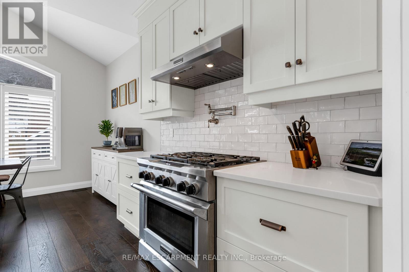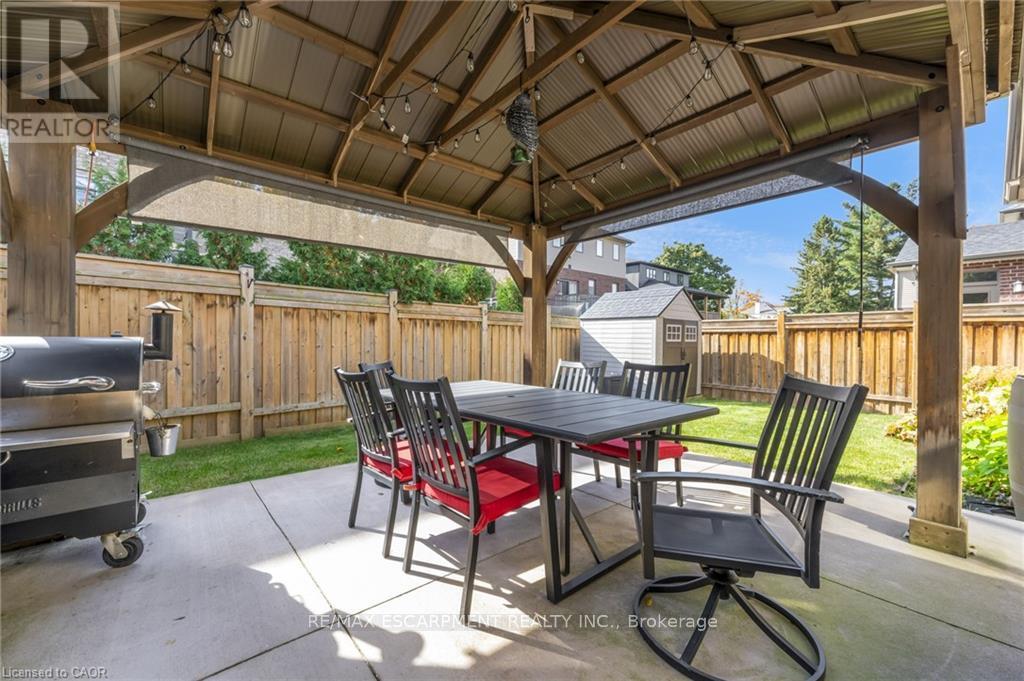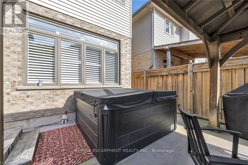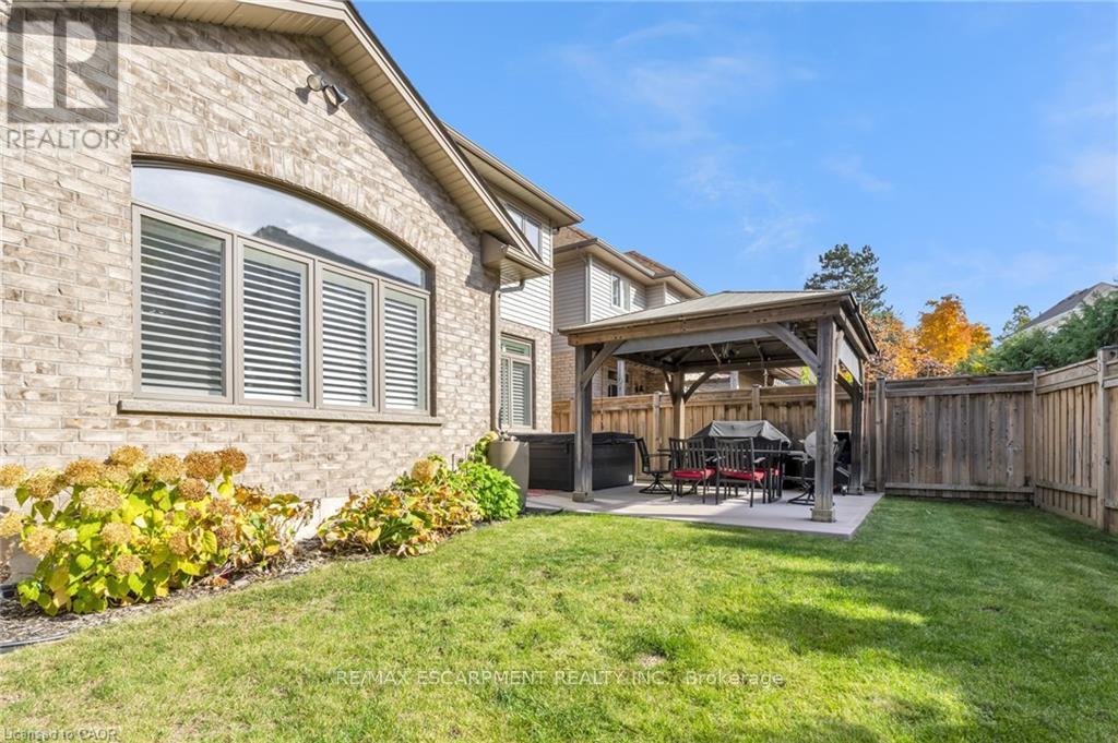 Welcome to this stunning 4-bedroom, 3-bathroom home nestled in a private enclave along Grimsby's sought-after Main Street West, beneath the scenic Niagara Escarpment. Offering exceptional curb appeal with professional permanent exterior lighting, this elegant property blends luxury, comfort, and family living in a peaceful community setting.The open-concept main floor features a spacious family room with a custom fireplace and large windows that fill the space with natural light. The chef-inspired kitchen is beautifully appointed with quartz countertops, stainless steel appliances, a pot filler, breakfast bar, and walk-in pantry for added storage. The adjoining breakfast area boasts vaulted ceilings and overlooks a private backyard retreat complete with a concrete patio, gazebo, and hot tub - perfect for entertaining or relaxing evenings at home.Upstairs, the primary suite offers a walk-in closet and a luxurious 5-piece ensuite designed as a spa-like escape. Three additional generously sized bedrooms, a full bath, and convenient second-floor laundry provide ideal functionality for growing families.Premium finishes throughout include wide plank oak flooring, California shutters, upgraded lighting, and built-in speakers. The double car garage is fully equipped with professional epoxy floors and custom slat walls for organized storage.Located minutes from top-rated schools including Blessed Trinity Secondary and Central Public French Immersion, as well as parks, shops, restaurants, and scenic escarpment trails. With quick access to the QEW, GO Bus transit, and the waterfront, commuting and recreation are effortless.An exceptional opportunity in one of Grimsby's most desirable neighbourhoods. (42216296)