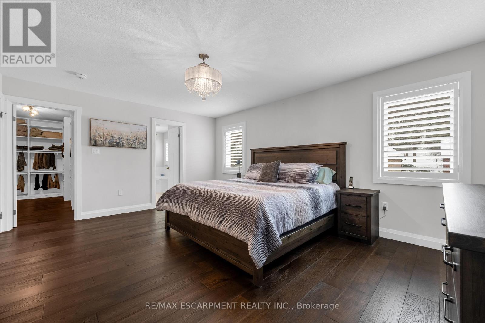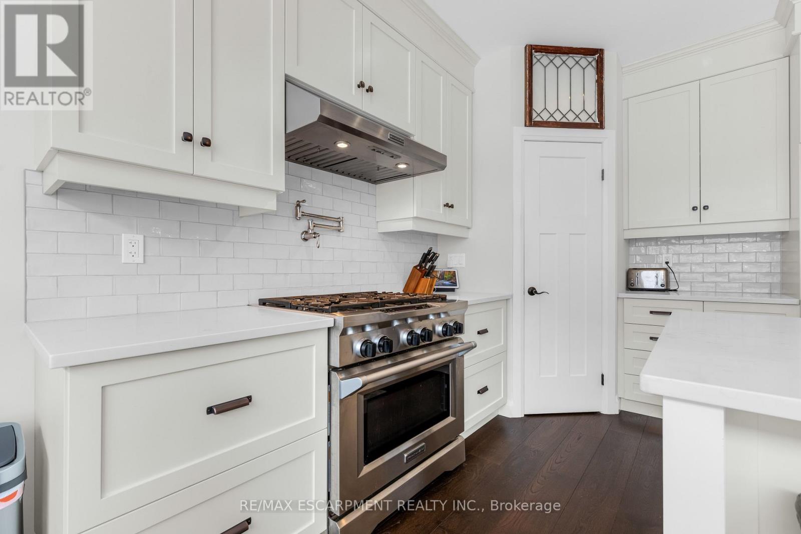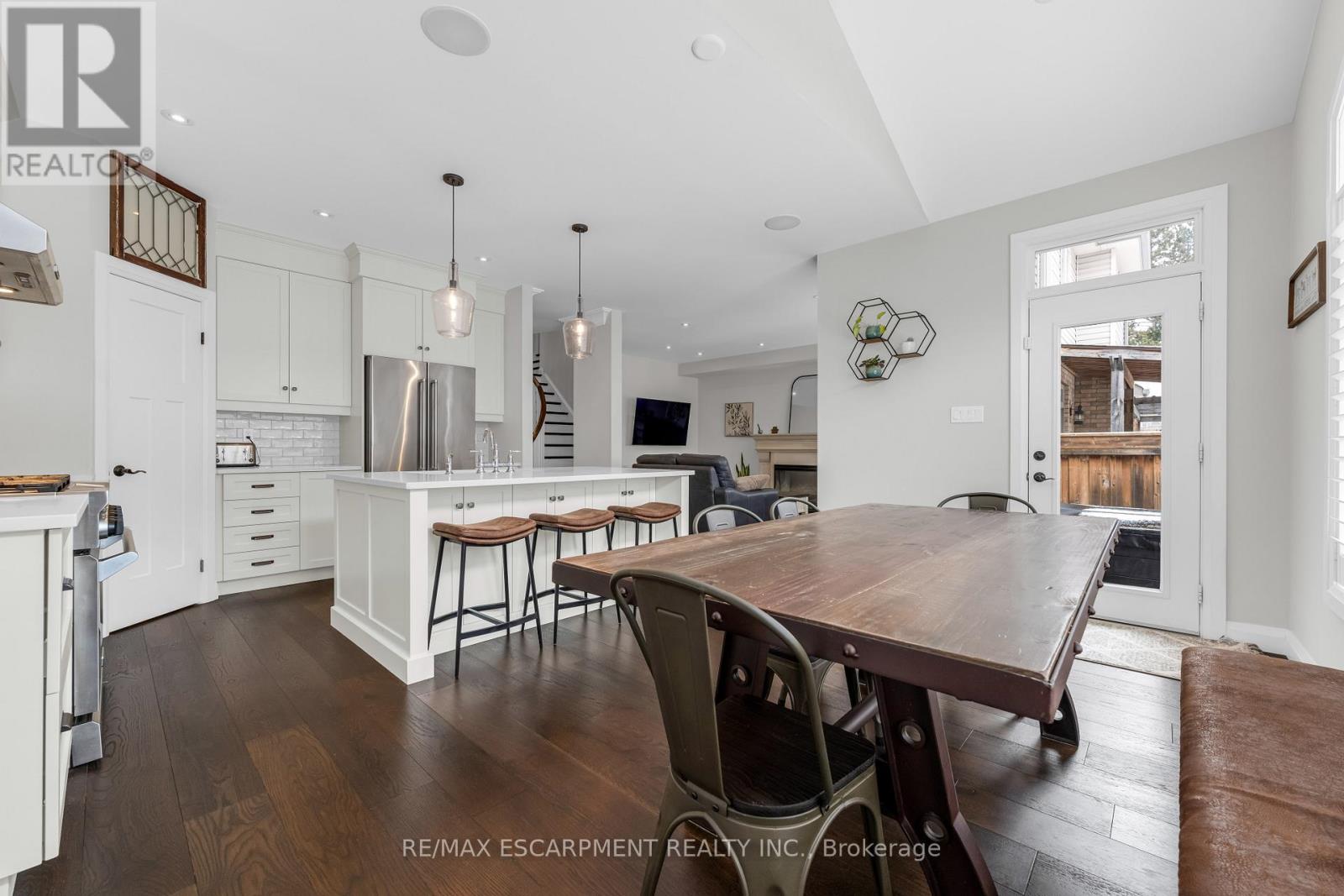 Welcome to this stunning 4-bedroom, 3-bathroom home nestled in a private enclave along Grimsby's sought-after Main Street West, beneath the scenic Niagara Escarpment. Offering exceptional curb appeal with professional permanent exterior lighting, this elegant property blends luxury, comfort, and family living in a peaceful community setting.The open-concept main floor features a spacious family room with a custom fireplace and large windows that fill the space with natural light. The chef-inspired kitchen is beautifully appointed with quartz countertops, stainless steel appliances, a pot filler, breakfast bar, and walk-in pantry for added storage. The adjoining breakfast area boasts vaulted ceilings and overlooks a private backyard retreat complete with a concrete patio, gazebo, and hot tub - perfect for entertaining or relaxing evenings at home.Upstairs, the primary suite offers a walk-in closet and a luxurious 5-piece ensuite designed as a spa-like escape. Three additional generously sized bedrooms, a full bath, and convenient second-floor laundry provide ideal functionality for growing families.Premium finishes throughout include wide plank oak flooring, California shutters, upgraded lighting, and built-in speakers. The double car garage is fully equipped with professional epoxy floors and custom slat walls for organized storage.Located minutes from top-rated schools including Blessed Trinity Secondary and Central Public French Immersion, as well as parks, shops, restaurants, and scenic escarpment trails. With quick access to the QEW, GO Bus transit, and the waterfront, commuting and recreation are effortless.An exceptional opportunity in one of Grimsby's most desirable neighbourhoods. (42216296)