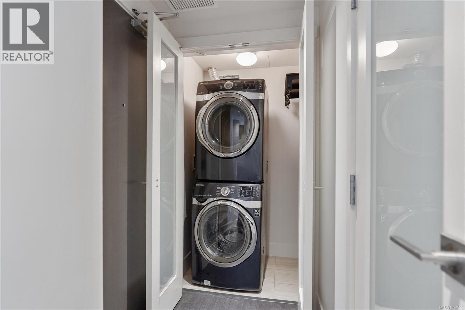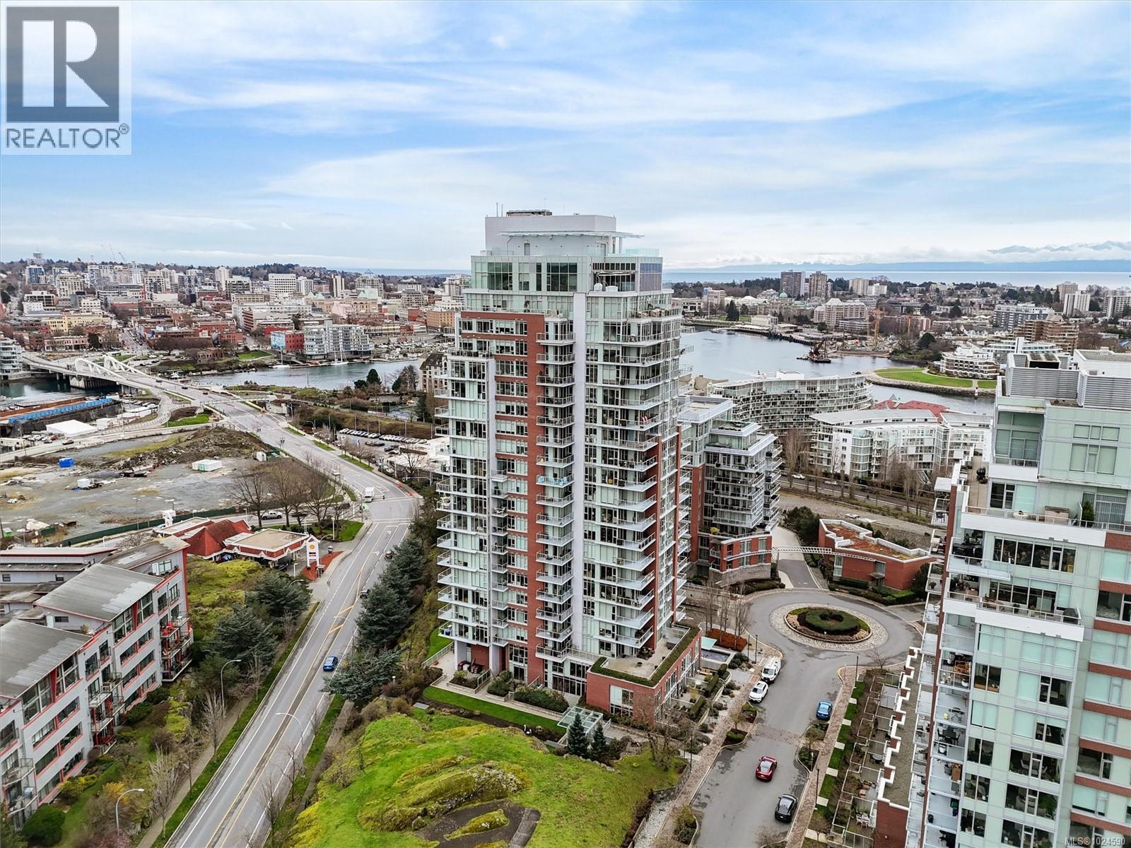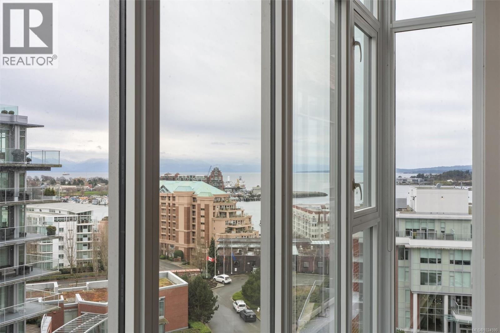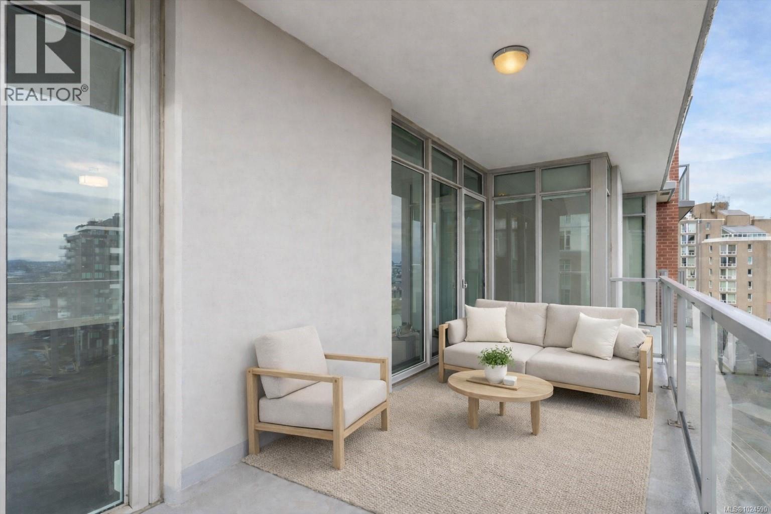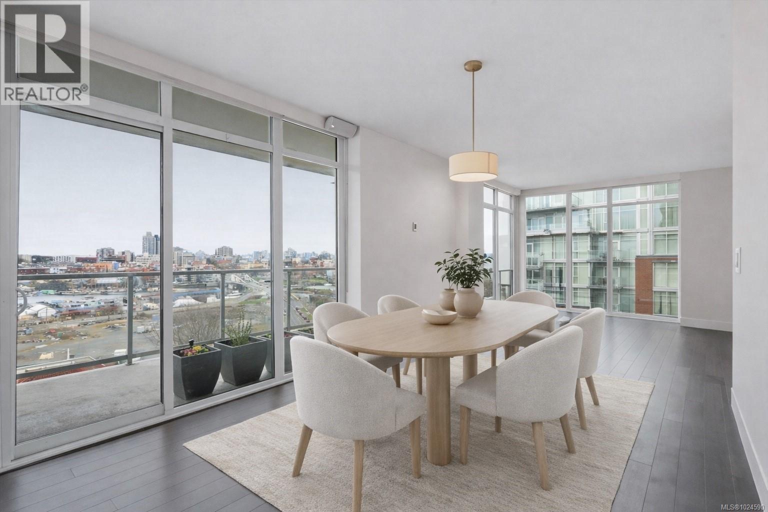 A truly unique floor plan - originally designed as a two-bedroom and thoughtfully reimagined into a spacious one-bedroom (with the option to convert back), this exceptional home is located in Promontory by Bosa. Modern southeast corner suite is flooded with natural light through floor-to-ceiling windows, offering sweeping views from every wall of the ocean, Olympic Mountains, and downtown skyline. The luxury kitchen is equipped with top-of-the-line appliances and overlooks a generous dining area, perfect for both everyday living and entertaining. A custom layout opens the living room to maximize ocean views, complemented by upgraded surround sound. Step outside to an expansive balcony, ideal for year-round enjoyment. Promontory offers concierge service, a fitness centre, social lounge, bike storage, outdoor spaces, and full air conditioning throughout. Surrounded by cafes, shops, restaurants, and entertainment. Just a 10-minute walk to downtown and the Inner Harbour. (30422180)