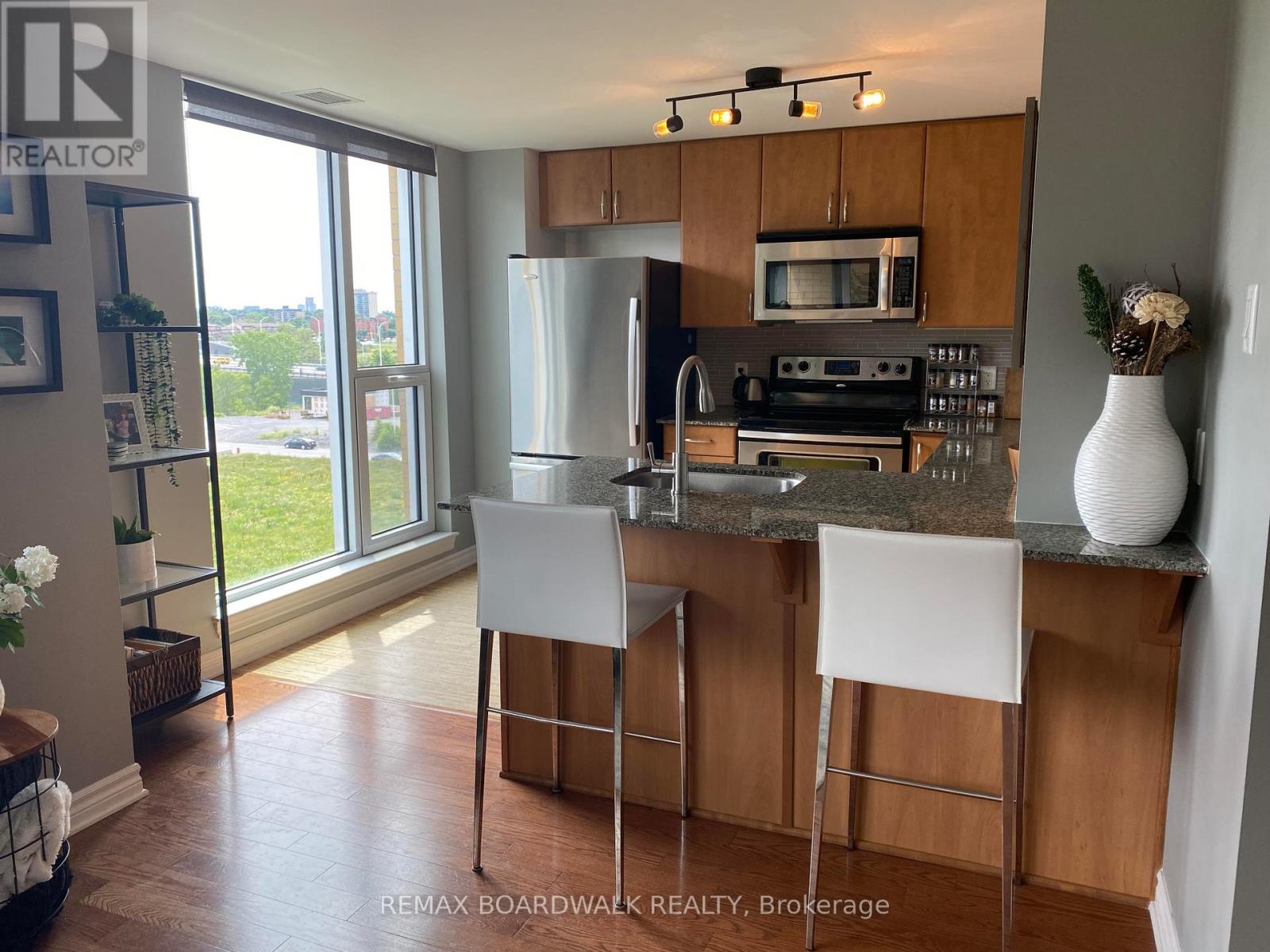 Available fully, partially or not furnished at all. This open concept spacious 1 bedroom/1bath condo in LeBreton Flats, on the top floor so no neighbours above!! This unit has floor to ceiling windows with custom blinds, quartz countertops throughout and in-suite laundry. Hardwood flooring in living/dining & bedroom areas & cork flooring in the kitchen. Unit includes 1 parking spot and a storage unit as well!! An unbeatable location with great access to Downtown, Transit/O-Train, Ottawa River bike/walking paths and greenspace. Walking distance to a huge selection of restaurants and specialty shops in Little Italy and China Town. A quick ride on the O-train to Farm Boy or get your steps in and walk to the Parkdale Market. Great amenities include a large indoor parking spot, salt water pool, gym, roof top garden w/BBQ and breathtaking views. Book your showing before it's gone! A full list of furnishings can be provided upon request. (42217046)