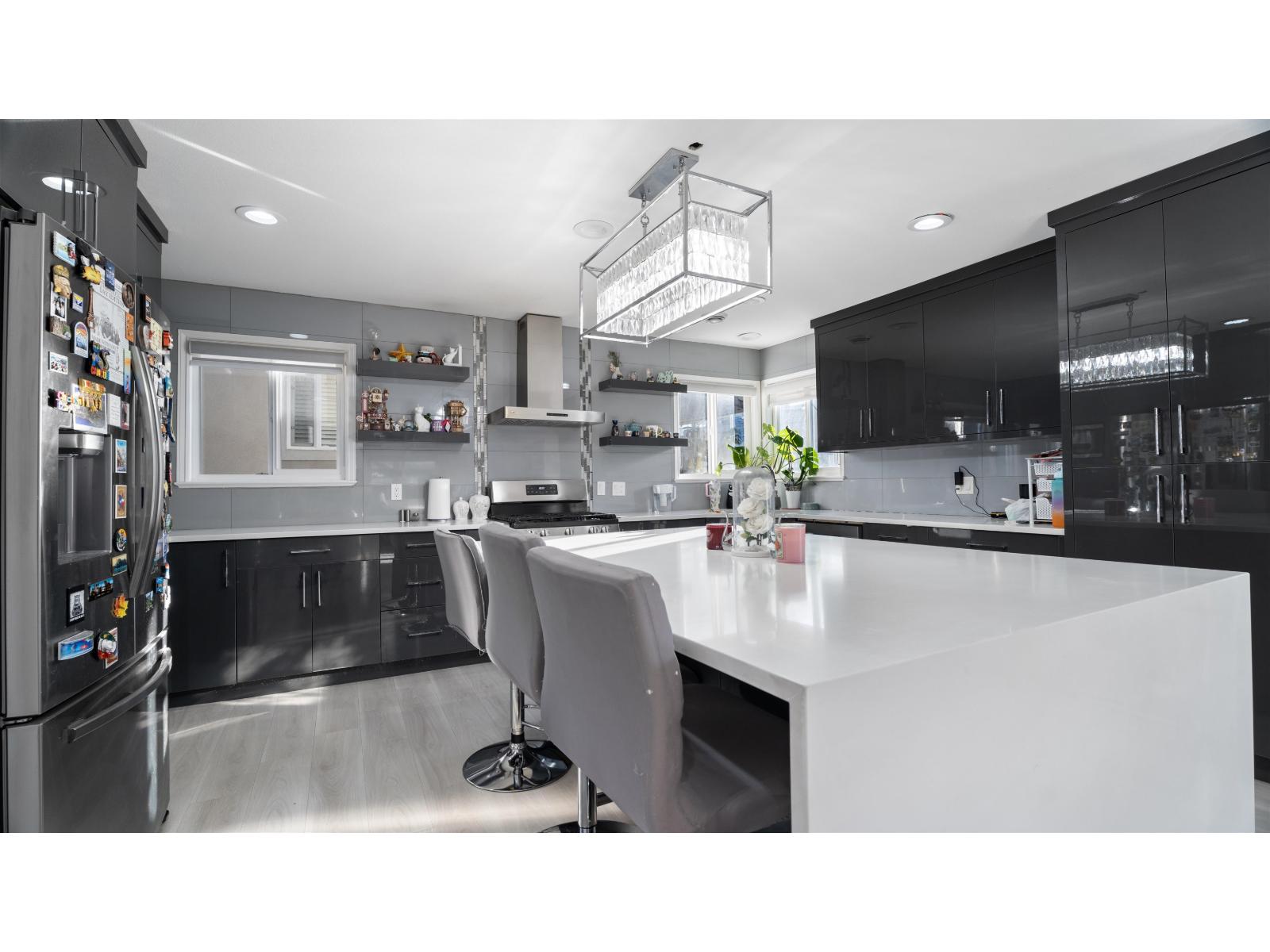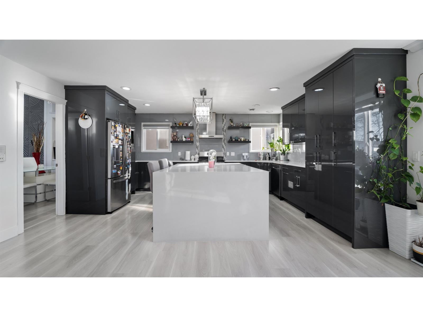 FULLY RENOVATED 3-level custom-built home in PANORAMA offering over 3,650 sq ft of living space on a 4,203 sq ft lot. The main house features high ceilings, a spacious living and dining area with a gas fireplace, and a modern kitchen with a large island, granite countertops, and stainless steel appliances. A generous family room with another fireplace, plus a main-floor bedroom with a full bathroom, adds excellent functionality. Upstairs offers four bedrooms with three ensuite bathrooms, including a large primary bedroom. The basement includes a 2-bedroom suite with separate entry and a large theatre room for the main house. Additional features include CENTRAL AC, EV CHARGING, 10 CAR PARKING, rear lane access, walking distance to schools, and easy access to Highways 10 & 91. (32491050)