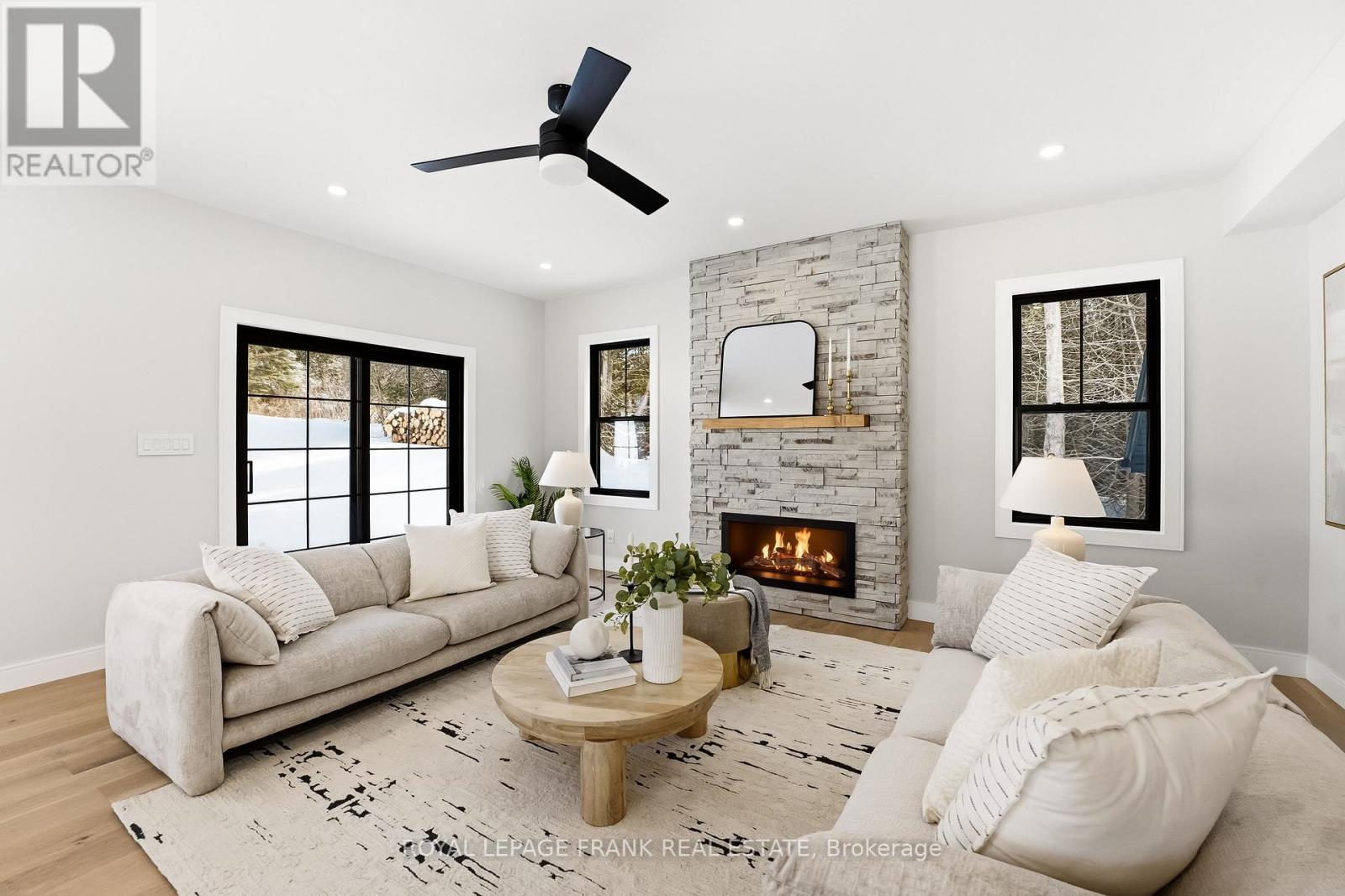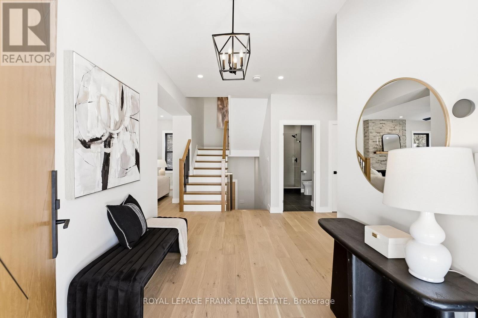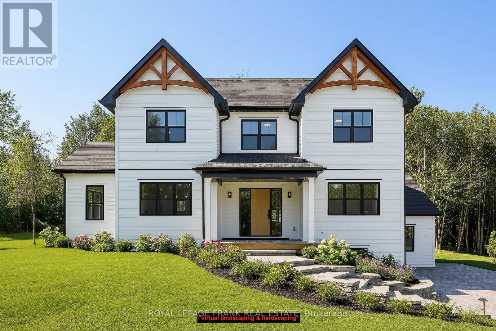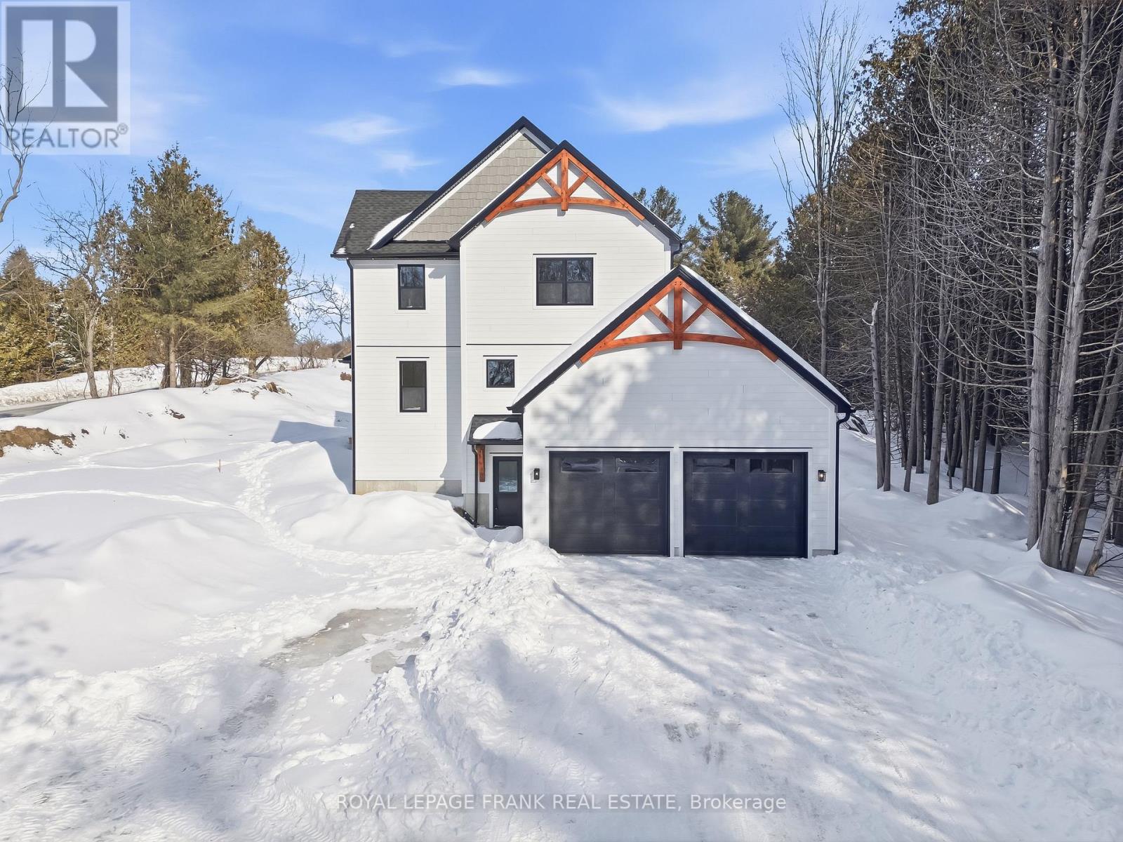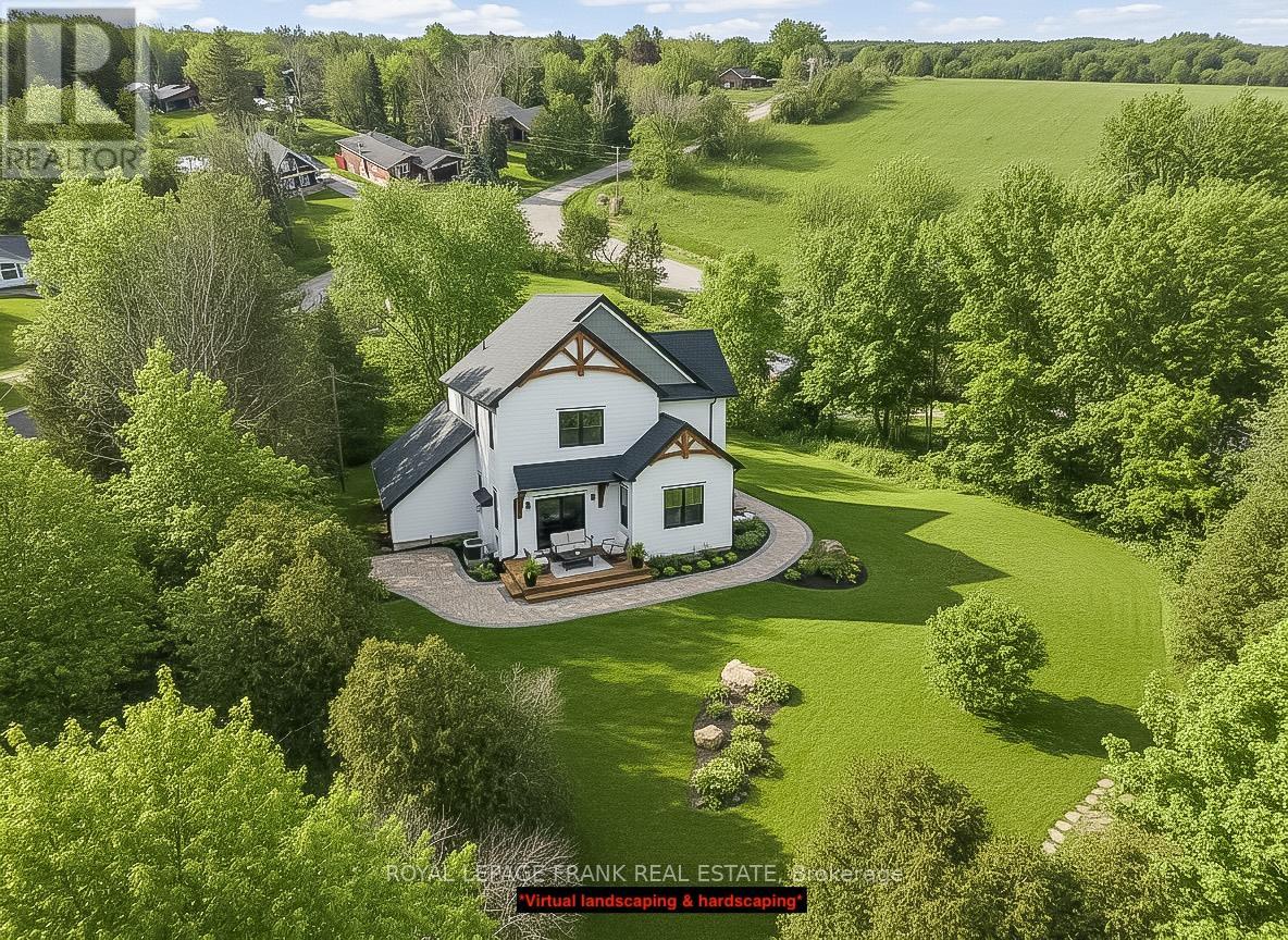 Welcome to this stunning custom-built 2-storey home, perfectly situated just minutes north of Uxbridge and directly across from Wagner's Lake. Set on a private 0.5-acre corner lot surrounded by mature trees, this home offers the ideal blend of luxury, functionality, and peaceful country living. With 2,660 sq ft above grade, the home features hardwood flooring throughout, striking black windows, and 9-foot ceilings on the main level and basement. The bright, open-concept main floor is designed for modern living, highlighted by a custom kitchen with quartz countertops, a large island with KitchenAid cooktop, LG appliances, and undercabinet lighting. The living space is anchored by a cozy propane fireplace and walkout to the backyard-perfect for entertaining. The main floor also offers a dedicated office, a spacious4th bedroom, a full 3-piece bathroom, and convenient access to the large double garage through a functional mudroom. Upstairs, you'll find three generous bedrooms, including a beautiful primary suite complete with a walk-in closet, additional closet space, and a private 4-pieceensuite. A convenient second-floor laundry room with sink adds everyday ease, while built-in closet organizers throughout maximize storage. The unfinished basement features a separate entrance, large above-grade windows, 9-foot ceilings, and a rough-in for a full bathroom-offering excellent potential for an in-law suite or additional living space. Additional features include a water softener, UV water system, and 200-amp service. The exterior is finished with durable LP Smart Side engineered siding, composite decking on the covered front porch, timber gables, and stylish exterior lighting with pot lights. The large driveway and double garage provide ample parking space. A rare opportunity to enjoy modern finishes, thoughtful design, and a tranquil setting just steps from Wagner's Lake while also benefitting from ease of access to Uxbridge just a few short minutes away! (42217835)