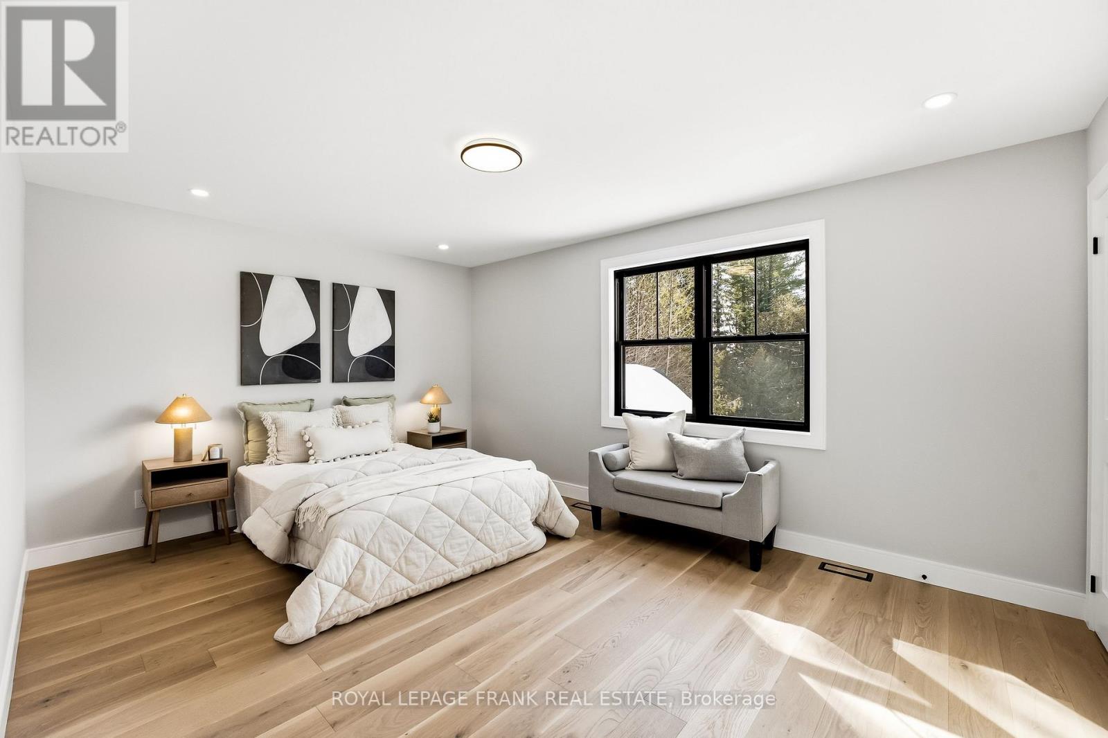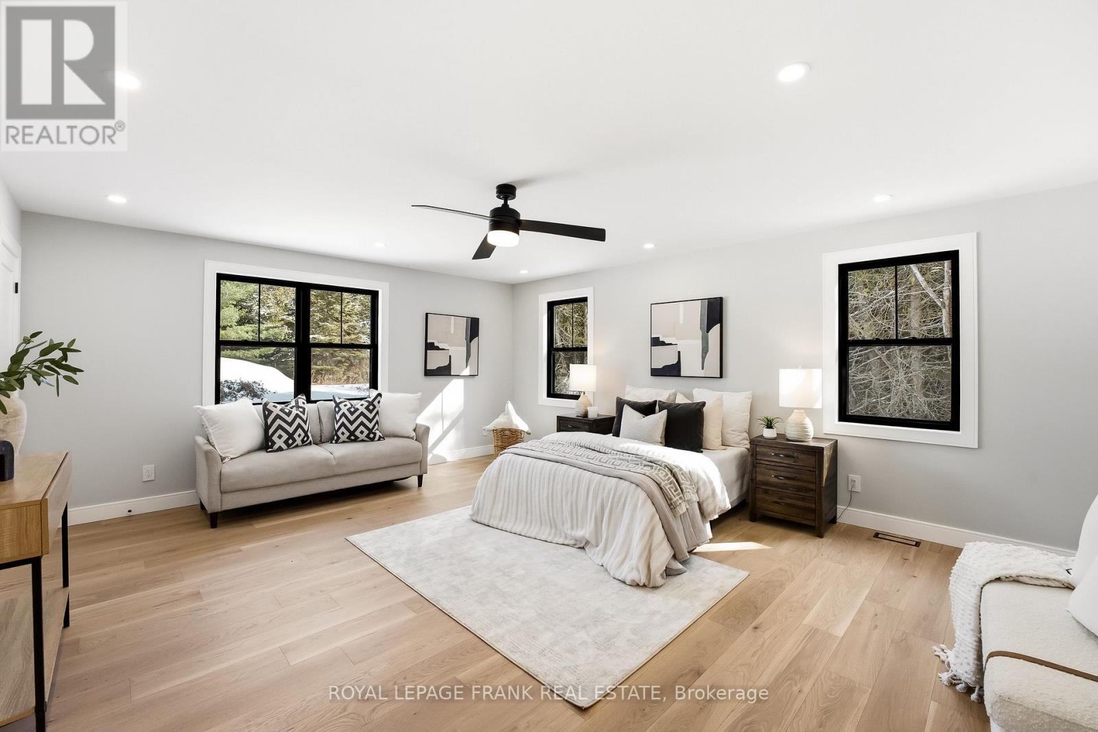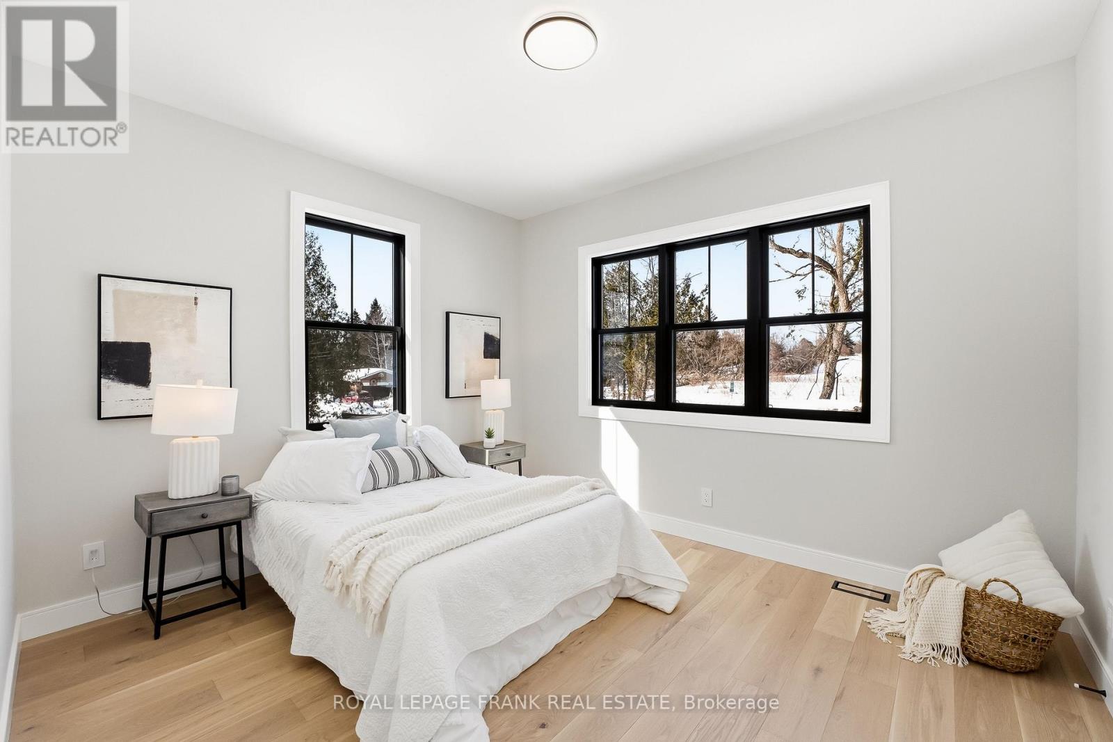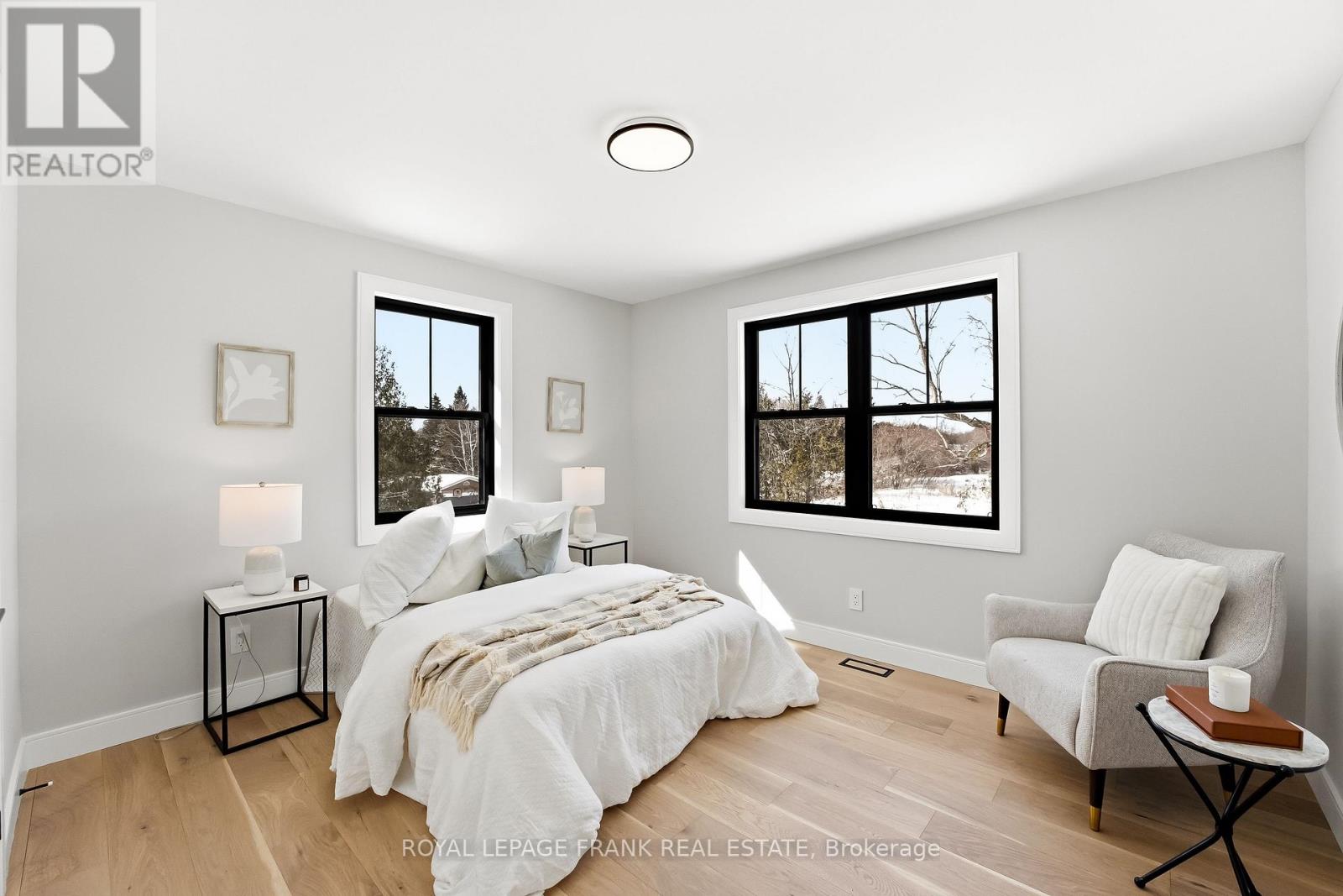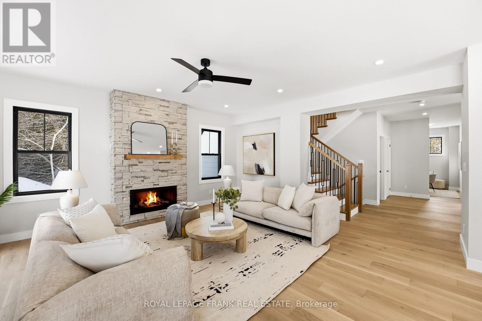 Welcome to this stunning custom-built 2-storey home, perfectly situated just minutes north of Uxbridge and directly across from Wagner's Lake. Set on a private 0.5-acre corner lot surrounded by mature trees, this home offers the ideal blend of luxury, functionality, and peaceful country living. With 2,660 sq ft above grade, the home features hardwood flooring throughout, striking black windows, and 9-foot ceilings on the main level and basement. The bright, open-concept main floor is designed for modern living, highlighted by a custom kitchen with quartz countertops, a large island with KitchenAid cooktop, LG appliances, and undercabinet lighting. The living space is anchored by a cozy propane fireplace and walkout to the backyard-perfect for entertaining. The main floor also offers a dedicated office, a spacious4th bedroom, a full 3-piece bathroom, and convenient access to the large double garage through a functional mudroom. Upstairs, you'll find three generous bedrooms, including a beautiful primary suite complete with a walk-in closet, additional closet space, and a private 4-pieceensuite. A convenient second-floor laundry room with sink adds everyday ease, while built-in closet organizers throughout maximize storage. The unfinished basement features a separate entrance, large above-grade windows, 9-foot ceilings, and a rough-in for a full bathroom-offering excellent potential for an in-law suite or additional living space. Additional features include a water softener, UV water system, and 200-amp service. The exterior is finished with durable LP Smart Side engineered siding, composite decking on the covered front porch, timber gables, and stylish exterior lighting with pot lights. The large driveway and double garage provide ample parking space. A rare opportunity to enjoy modern finishes, thoughtful design, and a tranquil setting just steps from Wagner's Lake while also benefitting from ease of access to Uxbridge just a few short minutes away! (42217835)