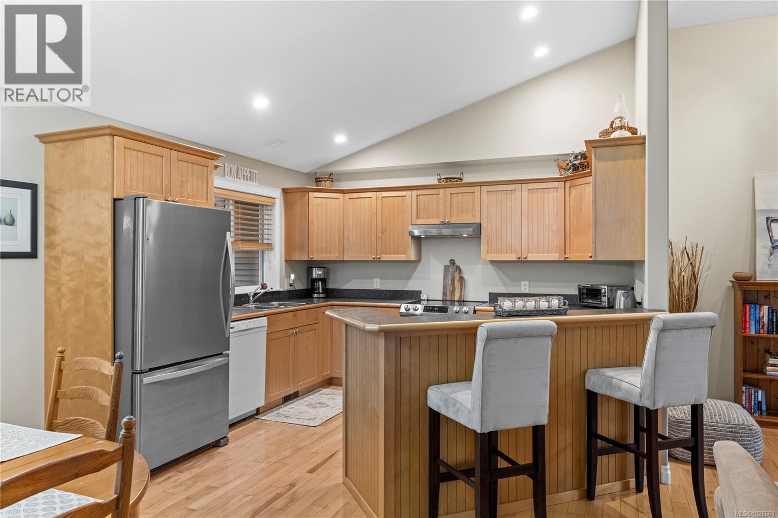 Welcome to this beautifully maintained rancher in desirable Lakeside Estates, complete with access to a private dock on Brannen Lake. Featuring vaulted ceilings and an open concept design, the home offers a bright and inviting main living space with hardwood floors and a cozy gas fireplace. The kitchen includes three appliances and an eating bar, perfect for everyday living and entertaining. With three bedrooms, the spacious primary suite boasts dual closets and a four piece ensuite with separate tub and shower. A four piece main bathroom, built-in vacuum, double garage and crawlspace add to the appeal. Many recent updates include a new roof, new fencing, kitchen pot lights, garage door and appliances. Enjoy the fully fenced yard and covered patio with BBQ hookup. Fantastic location with quick access to North Nanaimo amenities. For more details see the feature sheet and floor plan. All data and measurements are approximate and must be verified if fundamental. (30425202)