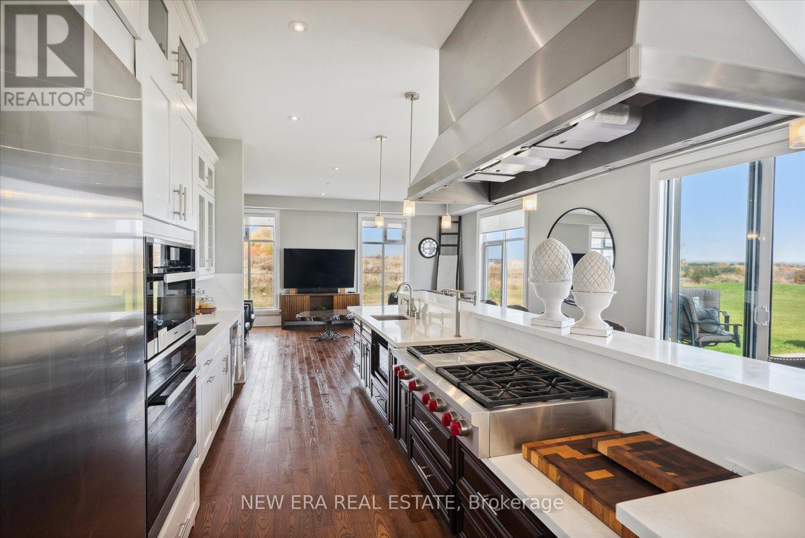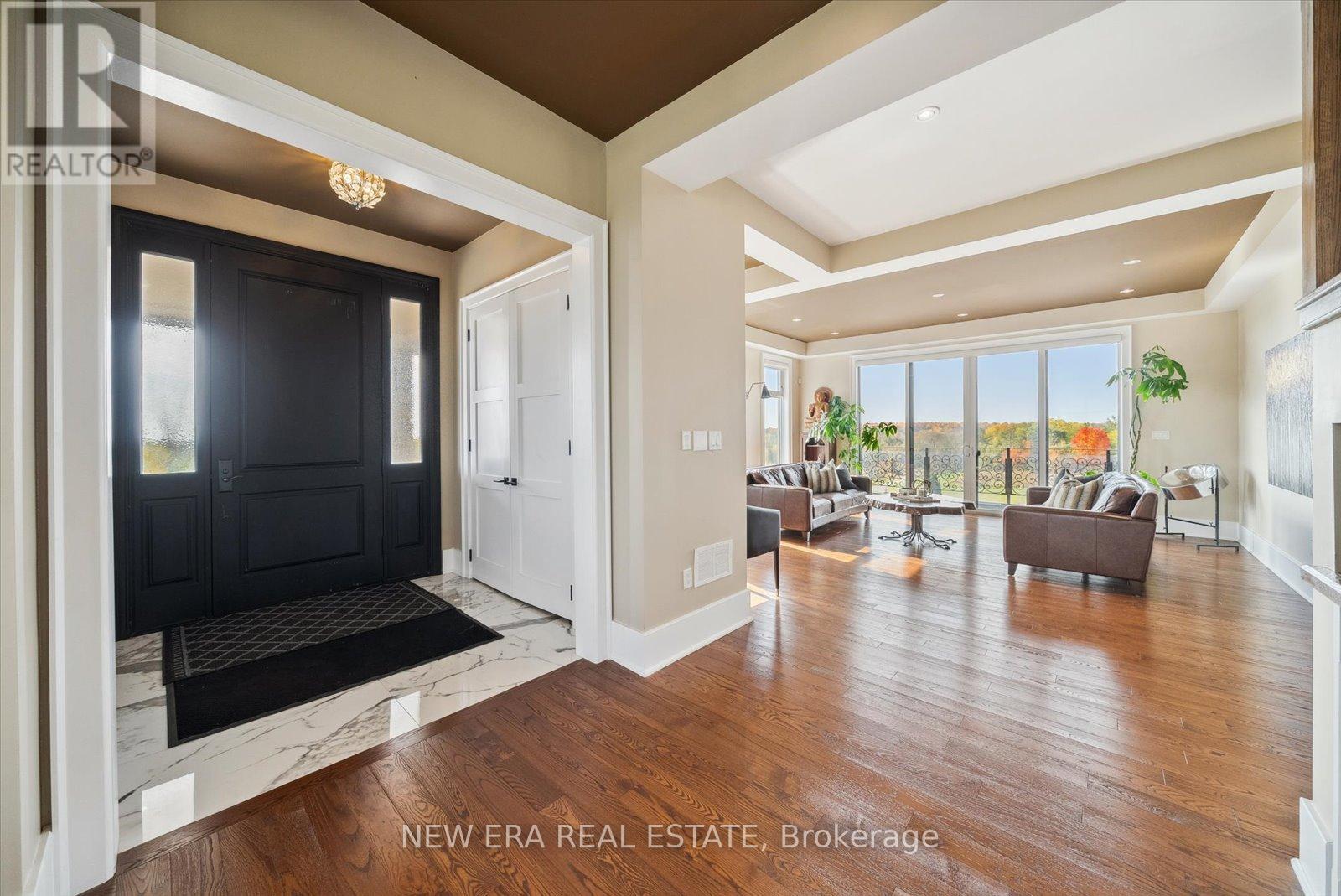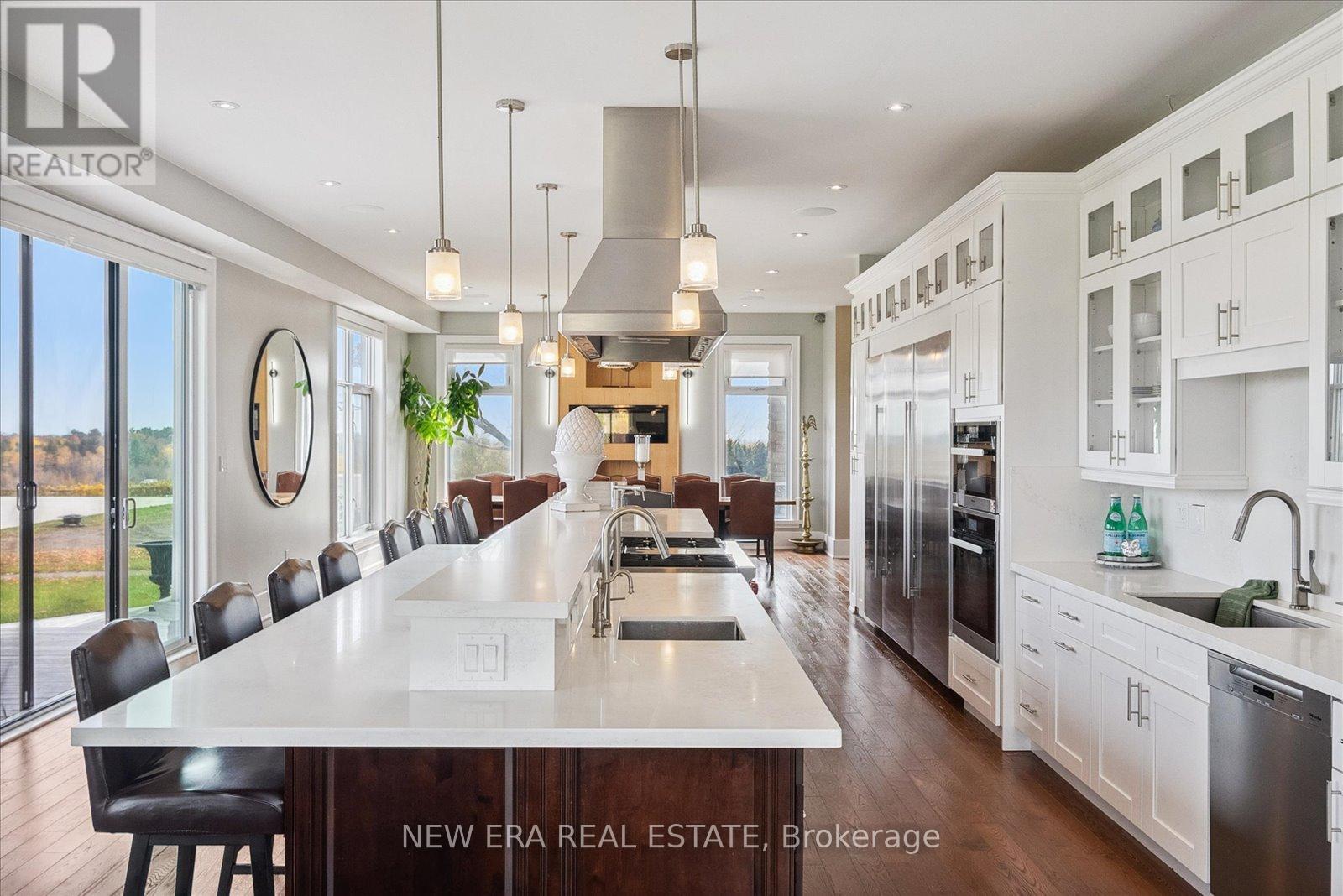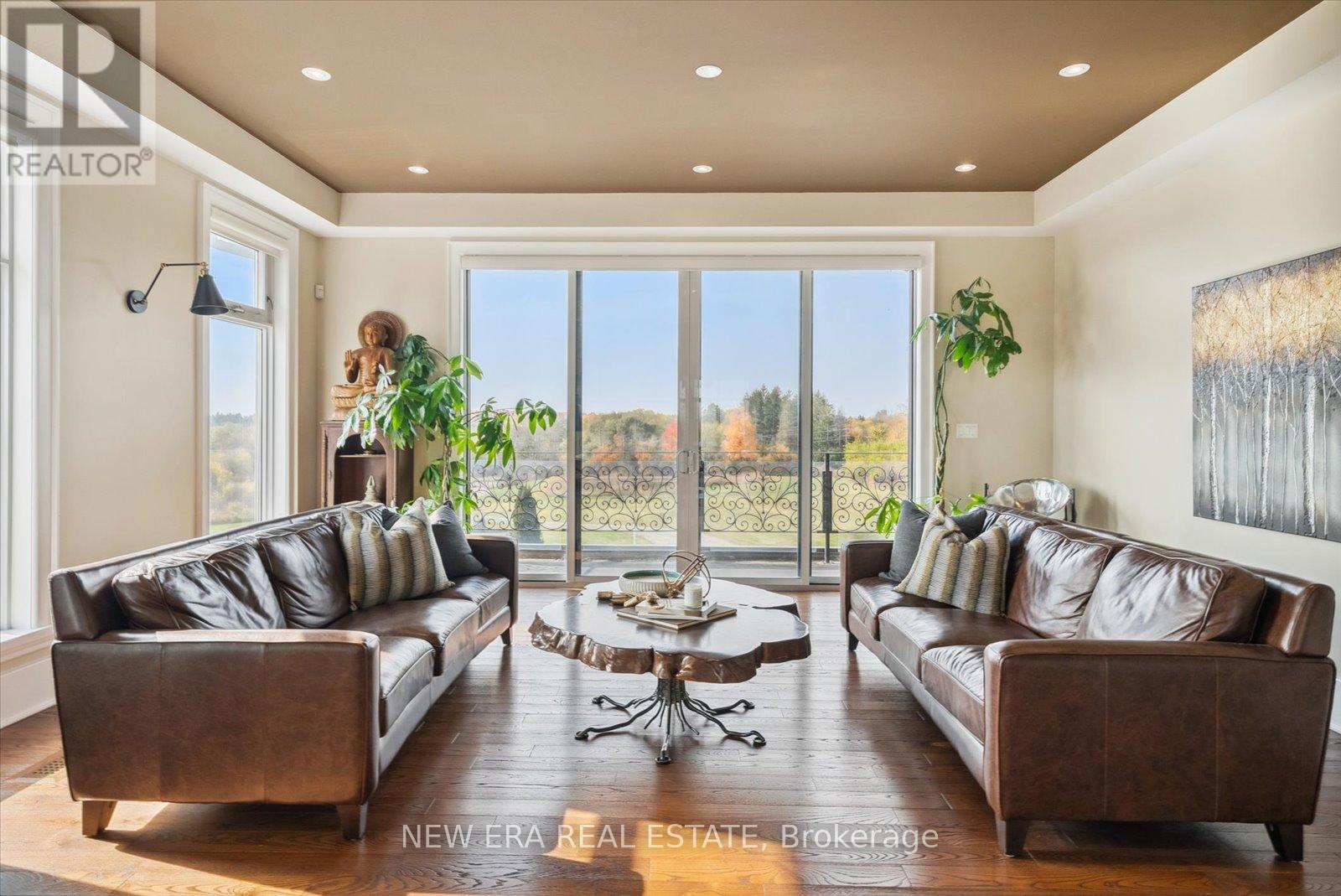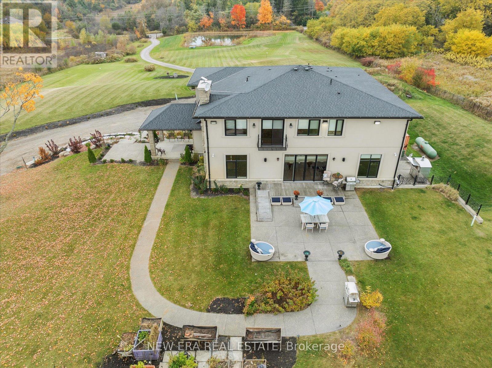 Power of Sale (mortgage foreclosure) opportunity with financing available. The vendor is willing to provide a first mortgage loan of up to $2,000,000 at a competitive interest rate, offering a rare and flexible financing opportunity for qualified buyers. Built only 10 years ago, this custom 7 bedroom, 8 bathroom estate is privately set behind gates on a serene premium 6+ acre lot. Designed for tranquility, security, and privacy, the fully fenced property features a scenic natural water feature and expansive sports court, creating a resort-style atmosphere.The heart of the home is an impressive open-concept kitchen anchored by a stunning 25-foot quartz centre island with abundant seating, complete with a Wolf gas stove, dual Sub-Zero refrigerators, two Miele built-in ovens, under-cabinet lighting, and premium finishes throughout. The kitchen flows seamlessly into the family and dining areas with walkout access to the backyard patio overlooking the scenic grounds.A separate formal living room opens onto a balcony spanning the front of the home. The main floor also offers a private in-law suite with coffee bar, two bedrooms, 3-piece bath, and a dedicated office. Upstairs features five generously sized bedrooms, each with its own ensuite, plus a convenient second-floor laundry room.The primary suite includes a walk-in closet with custom shelving and a spa-inspired 5-piece ensuite with steam shower, fireplace, and Juliette balcony. The fully finished basement features radiant heated floors. Additional highlights include geothermal heating, gated and fenced grounds, a 5-car garage, and custom motorized blinds with individual remotes. A rare opportunity to own a private estate with flexible vendor financing in place. (42218006)